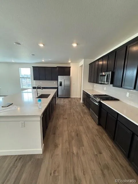 Step inside and you’ll be welcomed by a bright, open-concept main floor featuring a spacious great room with luxury vinyl plank flooring and a chef’s kitchen designed to impress. Complete with stainless steel appliances, a gas stove, and a massive quartz island, this kitchen is perfect for cooking, entertaining, and everyday life.