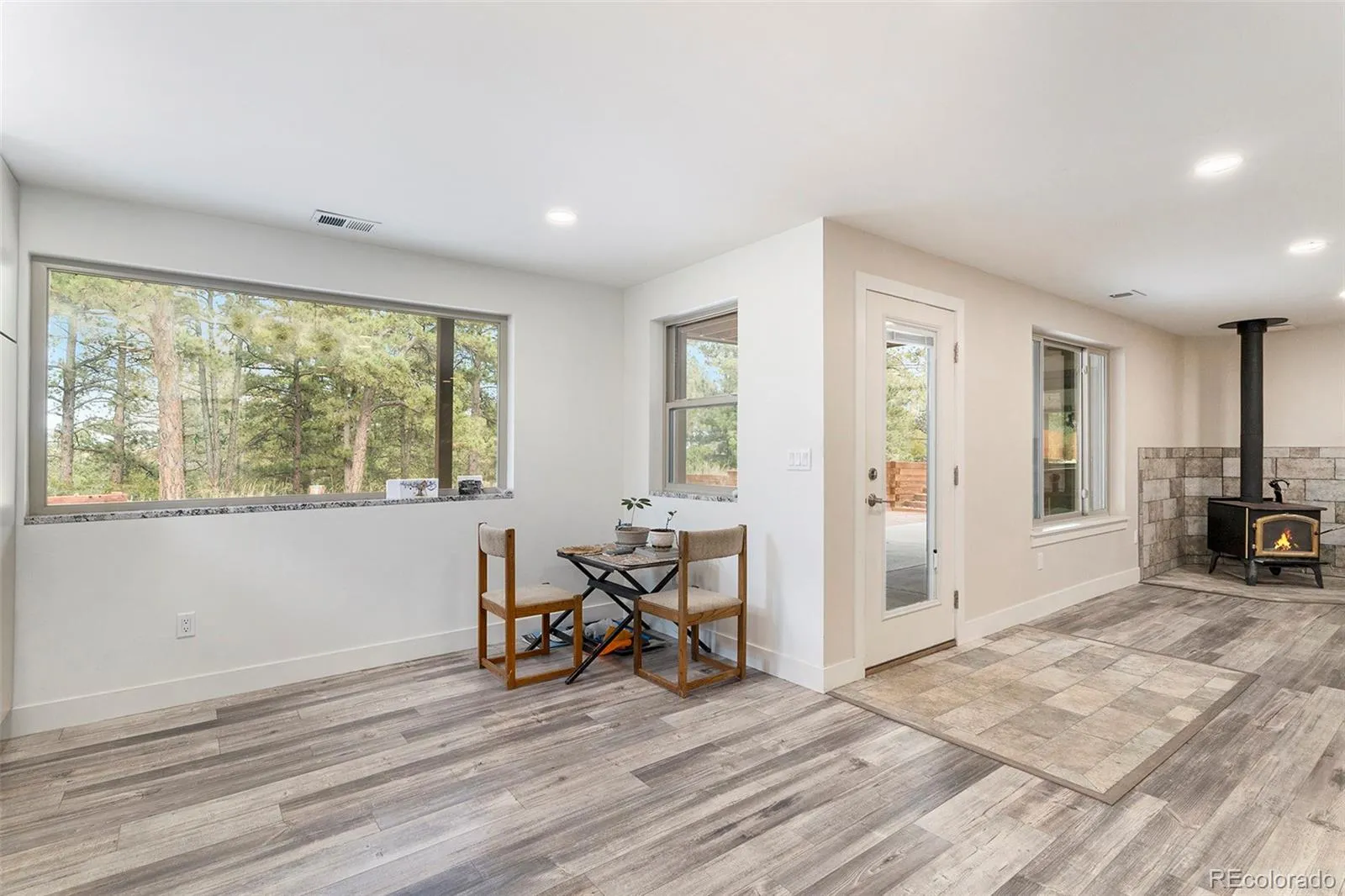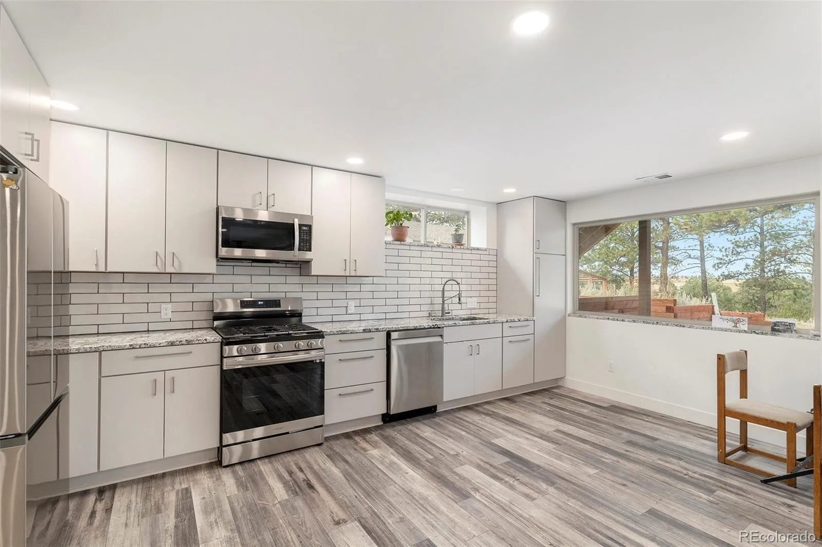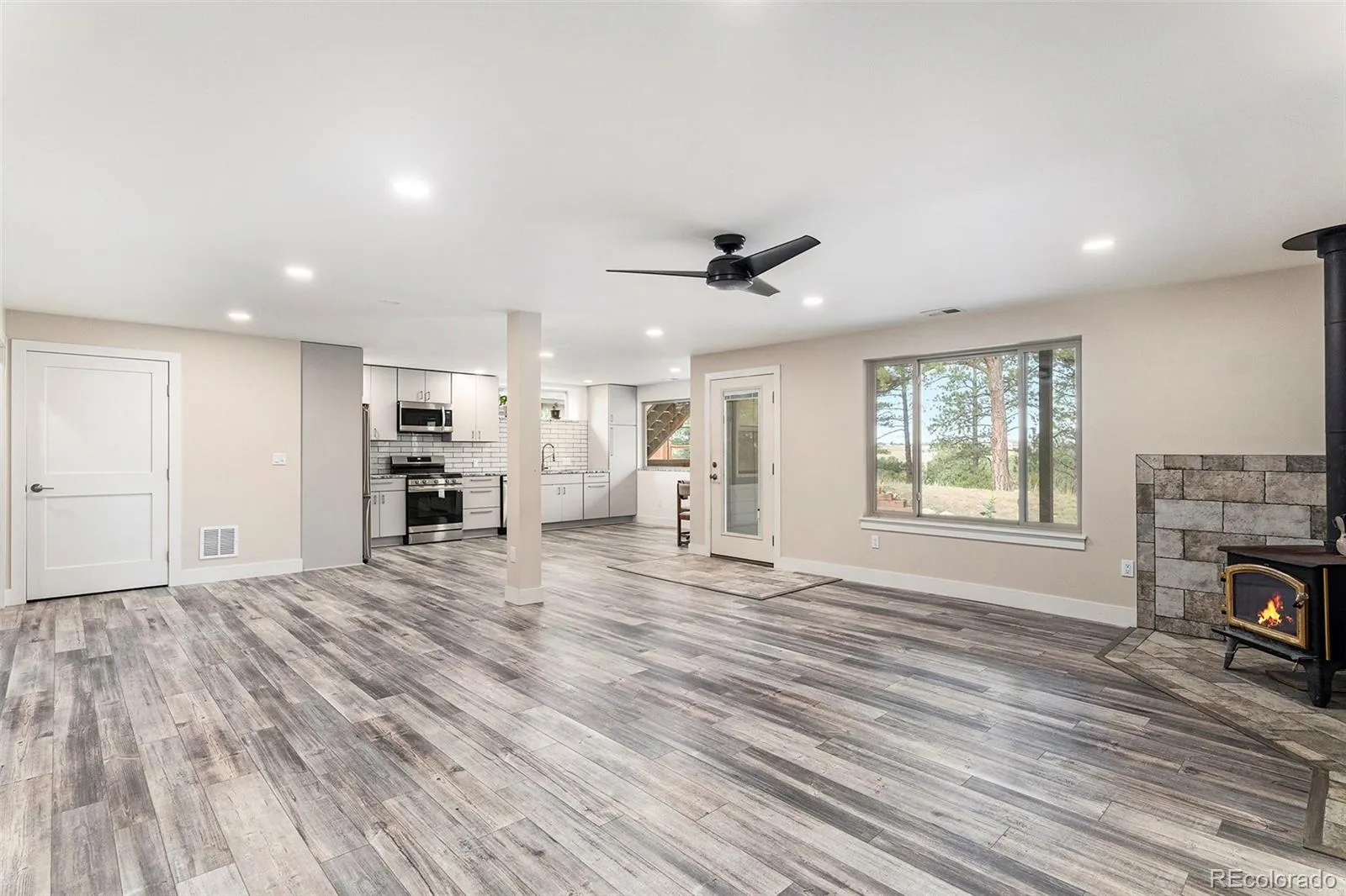 Beautiful, well built home on a diverse Colorado landscape of meadows and trees. This home is less than 10 years old, for sale by the original owner. Easy access to Town of Elizabeth amenities with country tranquility on an 8 acre lot. A beautiful, functional ranch style home incorporates multi-generational opportunities with a walkout basement. On the main level, engineered wood floors compliment the open concept lifestyle with 2 carpeted bedrooms and 2 tiled full bathrooms. The entertainment space includes a kitchen, pantry, dining room and family room. Maytag stainless steel matching appliances in the kitchen are ready for the inner chef to prepare the perfect meal. A primary suite is complete with walk in closet, access to the deck and a bathroom that includes a double vanity, curbless shower as well as a water closet with a 2nd shower & jetted tub. For a crisp morning, the bathroom has heated floors to warm your toes. Accessing the home from the attached oversized 2 car garage or from the outdoors to the mud room-laundry room provides the perfect space to kick off your coat and shoes after work or play. Added benefits in the garage include the workshop counters, cabinets and incredible finished space in the attic. The walkout basement has more superb surprises with another kitchen & large entertaining space, a door to the covered patio including stainless steel Samsung appliances, another laundry room & a safe/wine room. The generous bedroom with walk in closet has access to the covered patio as well as windows for nice natural light. A full bathroom including heated floors is also in the basement. For projects or additional space, the 16×22 workshop has a 9’ wide, 7’ tall overhead door, a standard door, heat and a fenced yard for the pup. Not enough yet? Test your green thumb in the 12×18 fenced garden area or just go enjoy the community bridle paths. New impact resistant roof completed on the house in May of 2025. Move-in ready!