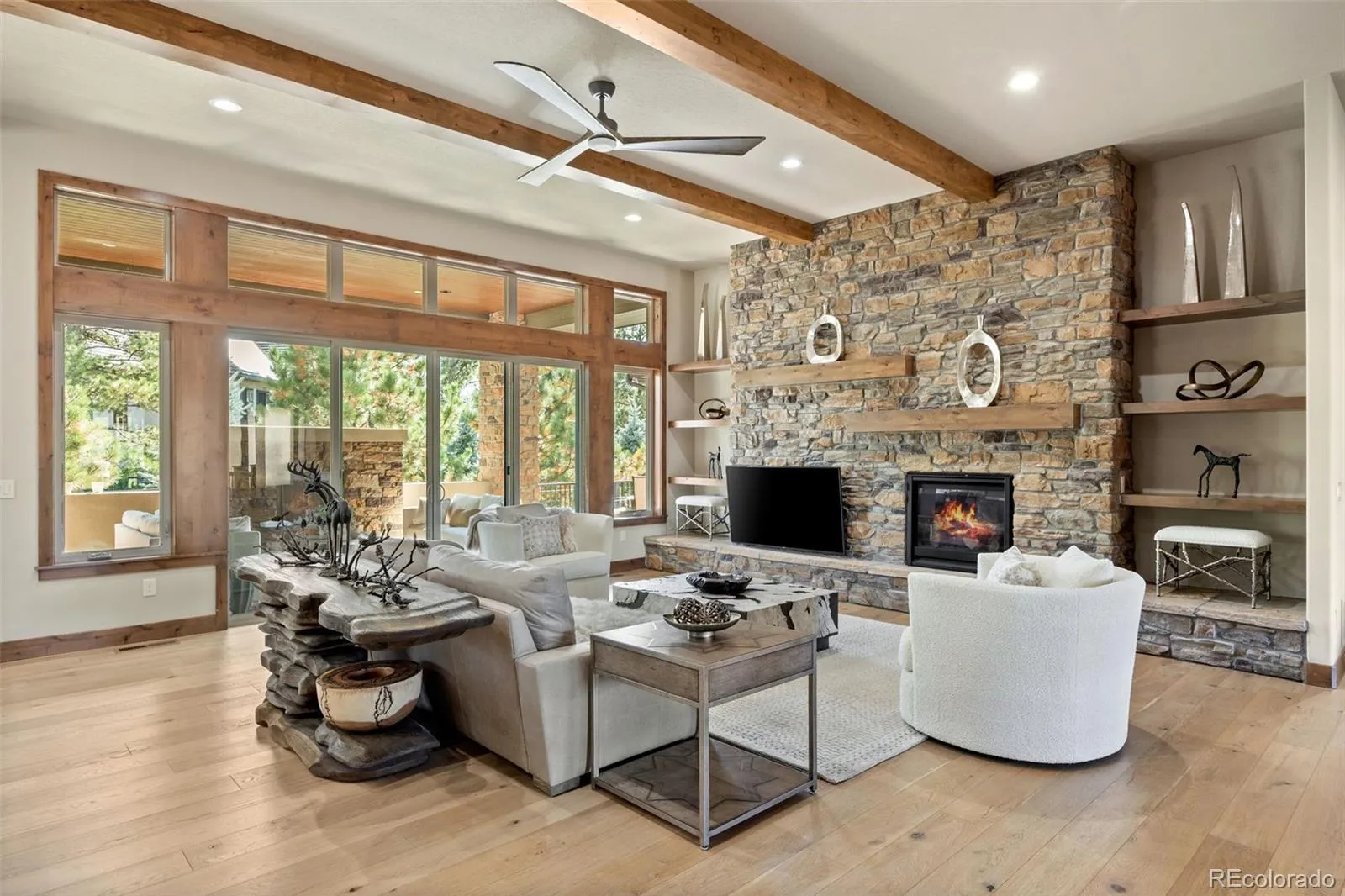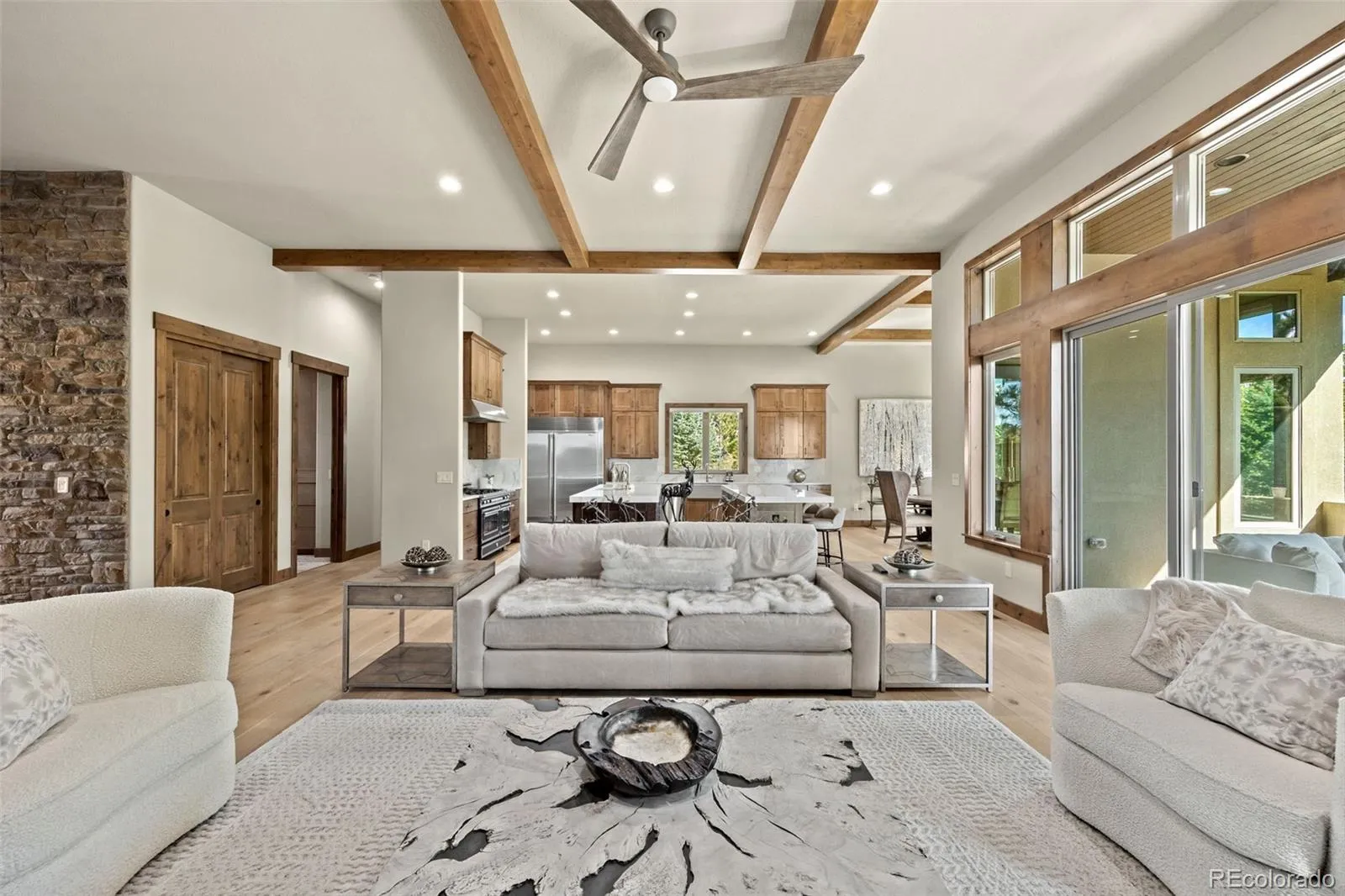 As you step inside, soaring 12-foot ceilings with exposed beams, walls of glass, and wide-plank white oak flooring immediately reveal a space where every element is connected. Main-level living is elevated by custom JM Designs cabinetry—from the exquisite kitchen and laundry to the spa-inspired primary bath—while Taj Mahal quartzite flows throughout, unifying the interiors with timeless elegance. Anchored by a dramatic great room and stone fireplace, the main level also features a secondary ensuite bedroom, an executive office with custom built-ins, and an exceptional primary suite, where a freestanding soaking tub and oversized glass shower create a retreat of pure sophistication.