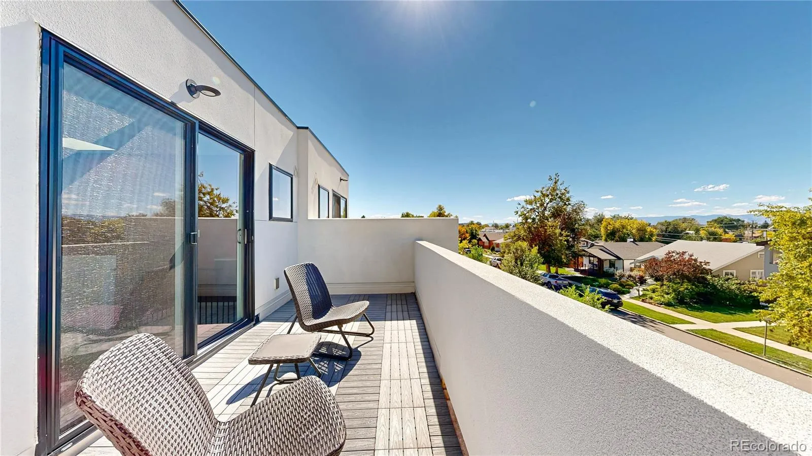 AMAZING PRICE! The perfect, like-new contemporary townhome with striking mountain views and sunsets from the private rooftop patio and retreat room with a wet bar and a secluded bedroom with murphy bed ideal for guests or use as office on the private 3rd floor! The open concept main floor plan includes a gourmet kitchen open to dining and living area with quartz composite counters, 5 burner gas stove/convection oven, pantry with pullout drawers and an over-sized island with breakfast bar and waterfall edge. Full height sliding glass door opens to wonderfully spacious private and secluded outdoor patio and backyard with built-in gas fireplace to keep you cozy on those cool nights. Patio and backyard also includes a hot tub, raised garden bed plus a playhouse and sand box for the kids and a storage shed. Second floor spacious primary suite with sitting area is a retreat from the outside world with spacious 5-piece bath complete with soaking tub and oversized frameless glass shower! There are two more bedrooms with full height glass windows overlooking front yard and served by a full bath and a convenient laundry closet in the hall. This home is conveniently located 1/2 block from Rosedale and City of Kunming parks and 2 1/2 blocks from Harvard Gulch Park with soccer fields, volleyball, neighborhood pool, 9-hole golf course, playground and walking/running paths and it is also only blocks away to multiple restaurants and shops on Old South Pearl St in Platt Park. First floor also includes a sunny office/studio in the front with full height glass that overlooks the fenced front yard. Recently painted and custom 2-way blinds (2022), carpeted (2024). Built-in wiring for high-speed internet and audio/visual. Sprinkler system in raised garden bed, front and side.