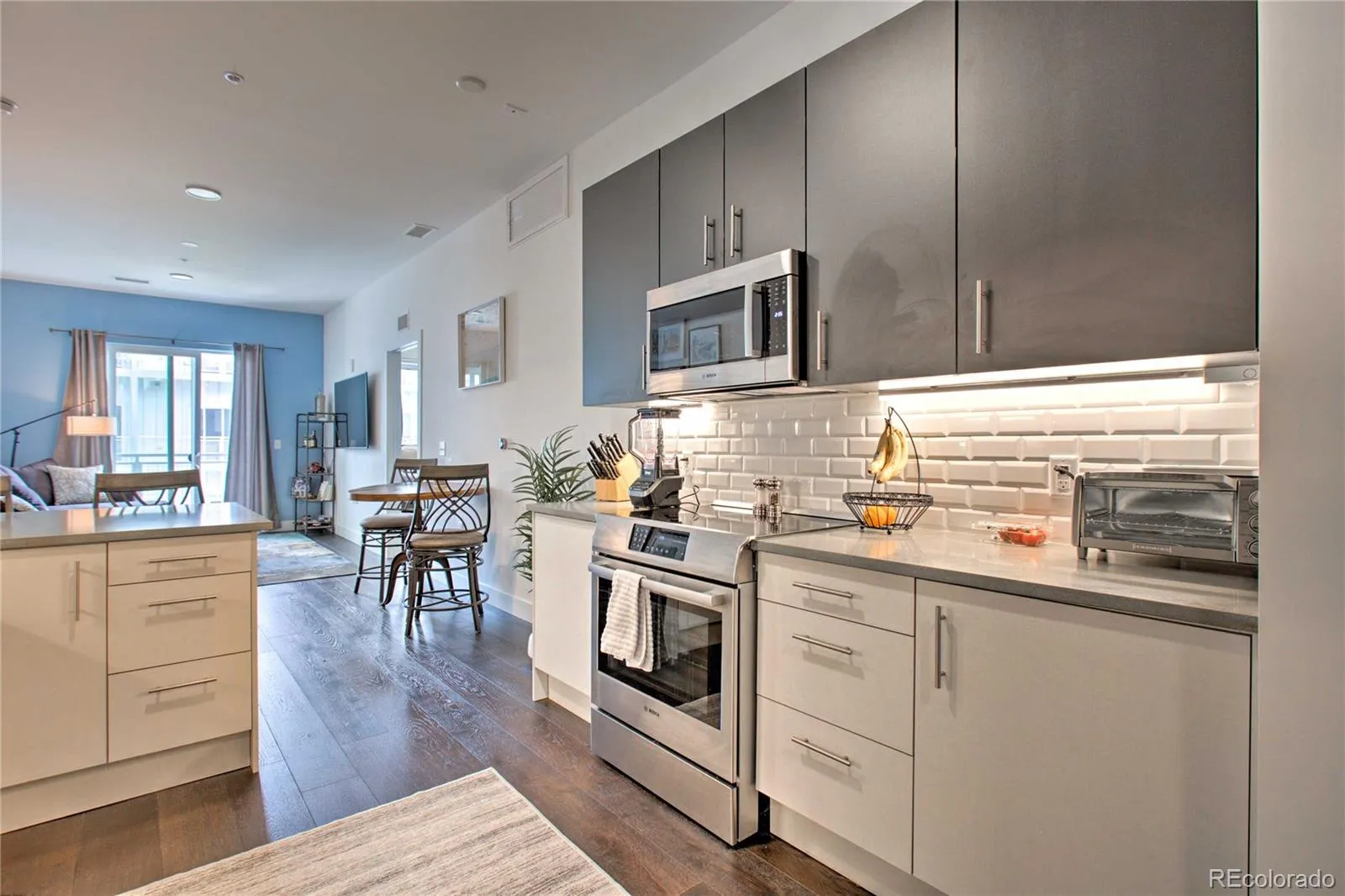 AirBnB-Friendly Modern Condo in the Heart of RiNo! Welcome to SPark — your urban oasis in one of Denver’s most dynamic neighborhoods. This bright and modern 1-bedroom condo offers low-maintenance living with unbeatable walkability to the city’s best bars, restaurants, and cultural hotspots. Located in the vibrant RiNo Art District, you’ll enjoy top-rated dining, eclectic local businesses, and a thriving creative scene just outside your door. This unit features an open floor plan filled with natural light, a rare second non-conforming bedroom/office, in-unit laundry, and a private balcony overlooking the SPark community park — a peaceful retreat set back from the main streets. Additional highlights include secure garage parking and a private storage unit perfect for bikes, skis, or outdoor gear. SPark was thoughtfully designed as a sustainable, amenity-rich community, and places you just steps from Uchi, Death & Co, Denver Central Market, and countless other Denver favorites. Whether you’re looking for a primary residence, second home, or a short-term rental investment, this condo checks every box. Turnkey home available fully furnished.