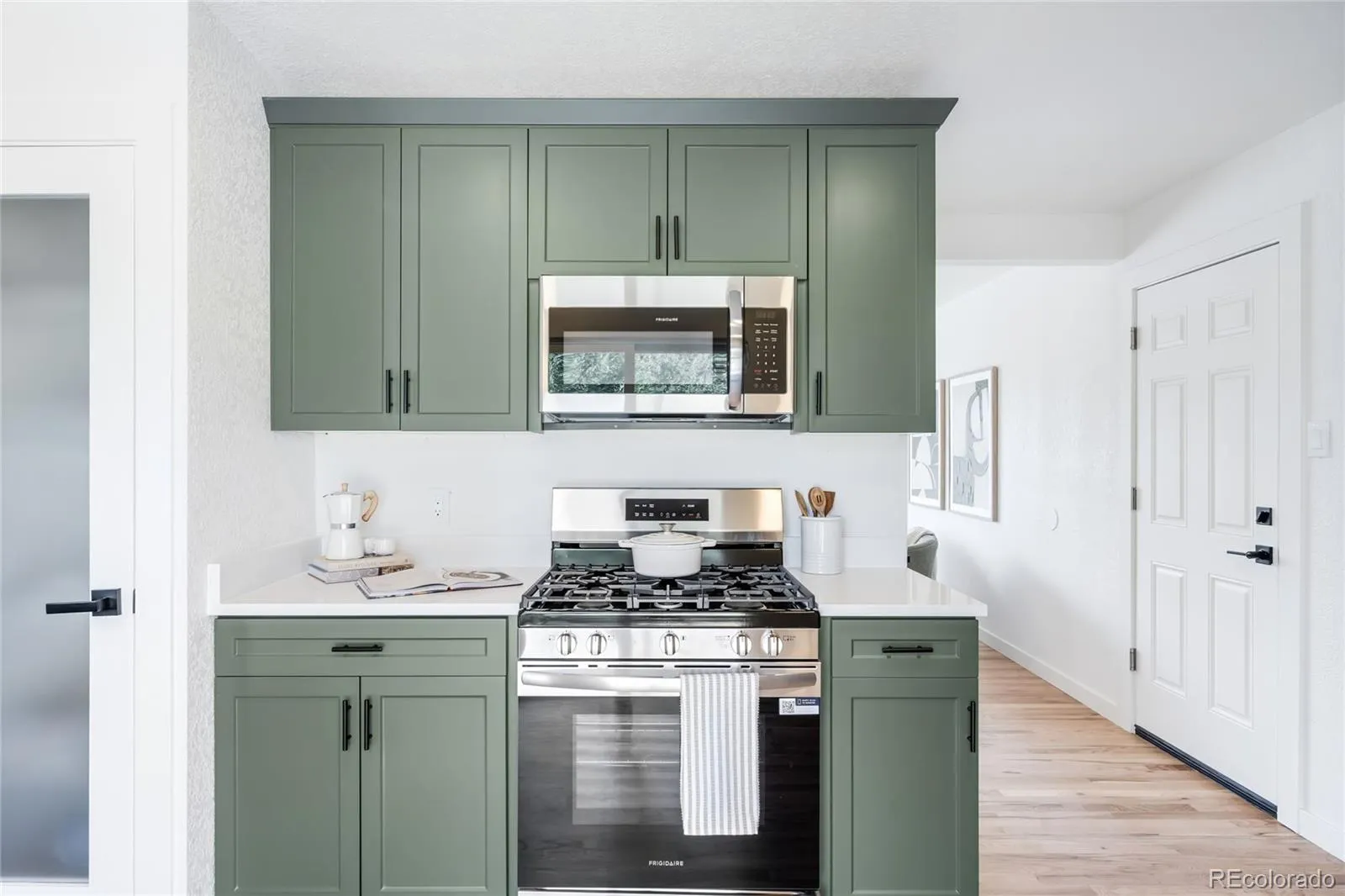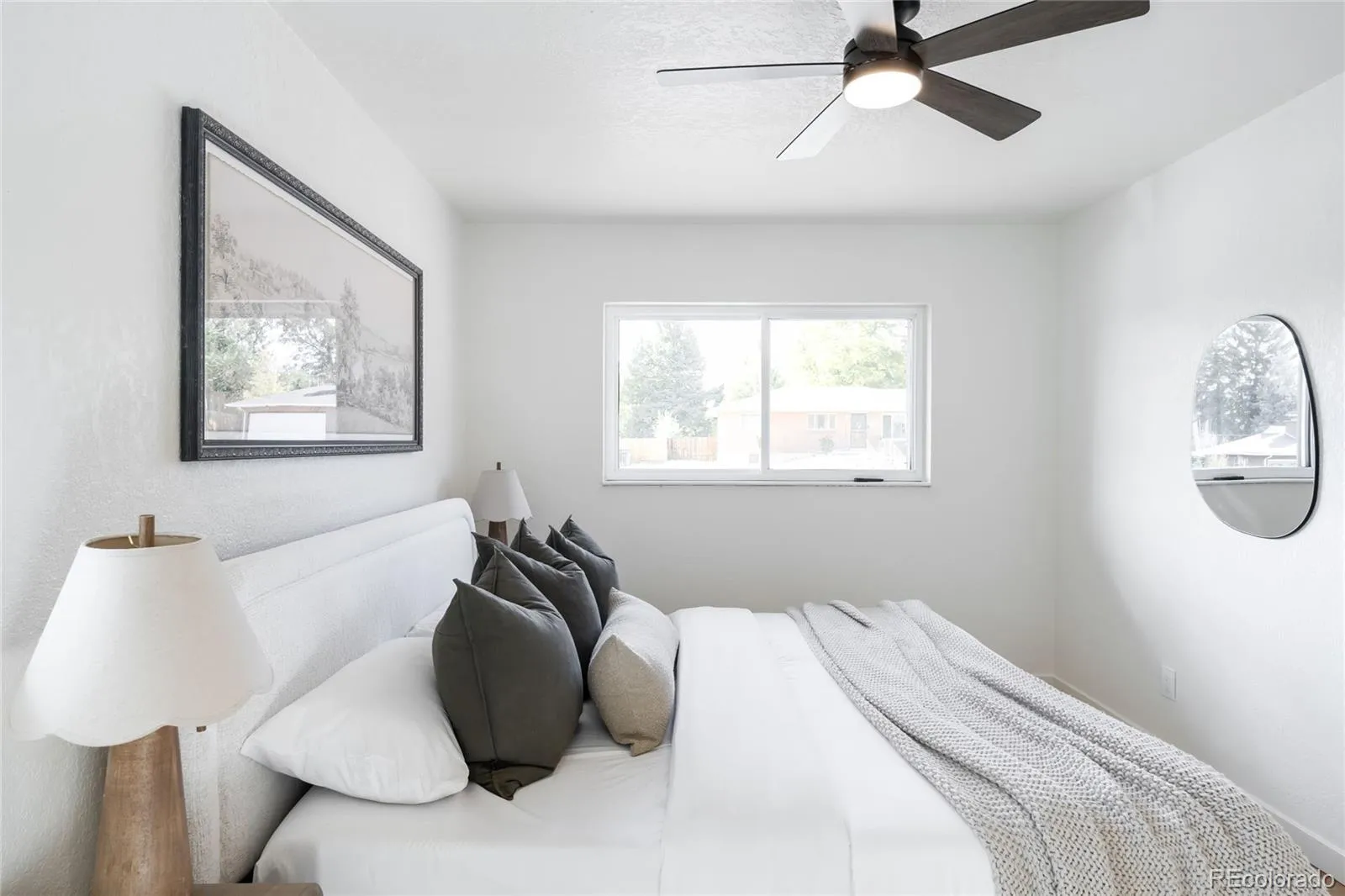 Beautifully reimagined from top to bottom, this Harvey Park residence offers the perfect fusion of timeless comfort and modern efficiency. Bathed in natural light through large west-facing windows with mountain views, the interior showcases a thoughtful full renovation — from all major systems, including new A/C, furnace and water heater, to a refreshed kitchen and baths. The main level features a spacious living room with a wide picture window, a sun-filled dining area and a sleek kitchen with stainless steel appliances and a peninsula with seating. The primary suite impresses with a double vanity and walk-in shower, while the finished basement adds a versatile rec room, large laundry area and ample storage space. Set on a generous lot with fresh sod, a front yard with xeriscaping, a new driveway with concrete and stone and a detached two-car garage, this home offers effortless Colorado living. Residents enjoy direct access to bike lanes and transit, all within a central neighborhood. Exterior photos coming soon. Brand new, detached two car garage with EV charger, driveway from front to back, and fresh sod for buyer to enjoy.