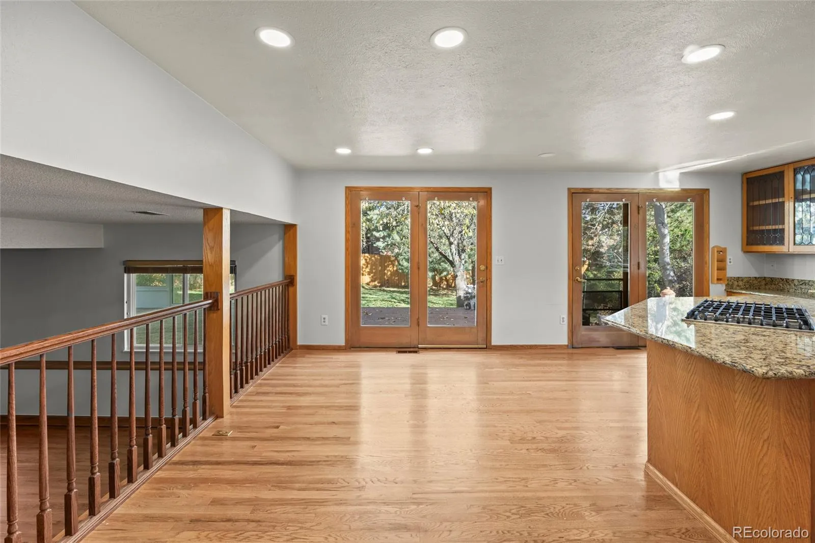 Inside, the home boasts a large open living room adjacent to a dining room, and a functional kitchen with a granite island, expansive countertops, abundant cabinetry, and a cozy breakfast nook. Two atrium doors invite you to step outside to the deck and fully fenced backyard.
