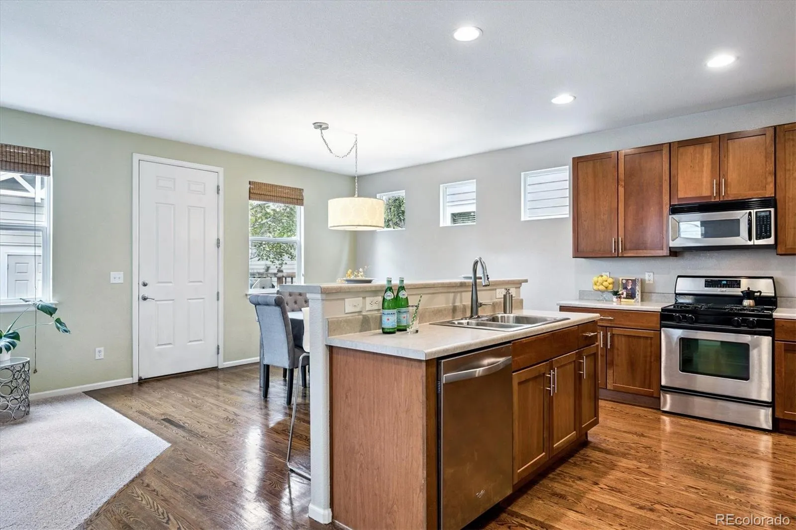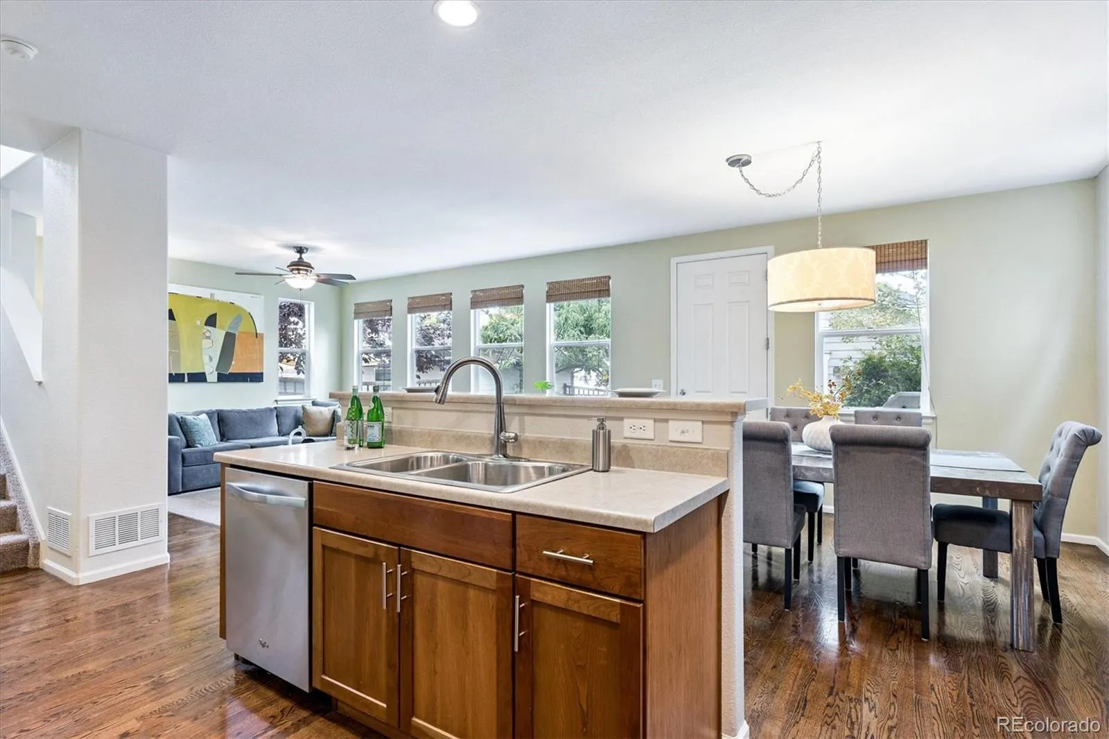 Tucked into the heart of Central Park’s mature and tree-lined streets, this classic two-story feels like home the moment you arrive. Just a block from Puddle Jumper Pool, a quick bike ride to Stanley Marketplace, and surrounded by neighborhood schools, the location is as dreamy as it gets. Step inside to find some fresh paint, brand new carpet (main and upper), gorgeous hardwoods, and a flexible floor plan that knows how to have fun! Whether it’s the sun-splashed great room that flows into the kitchen that boasts extra cabinetry with pull out drawer, a large dining space, a breakfast bar, AND a pantry you could hide in.. Or, the formal living room that could easily double as a home office with functional built in shelving.. OR the convenient powder bath, perfect for guests.. you will surely be pleased! Upstairs, the primary suite serves up a large walk-in closet and a 5 piece ensuite bath with a large tub to soak your stresses away! While two additional bedrooms, full bath, and a handy loft offer plenty of room to spread out. The finished basement? It’s basically game night and movie marathon headquarters, complete with a fun and flexible family room with in-wall speakers, a wet bar & bev fridge, bedroom #4, a roomy full bath, and ample storage options. Outside, the sweet backyard provides a private retreat where you can sip, grill, or simply soak in the quiet charm of this established neighborhood. And for your ease of mind… Seller is offering a 1 year home warranty (up to $600 in value!)What more could you ask for?