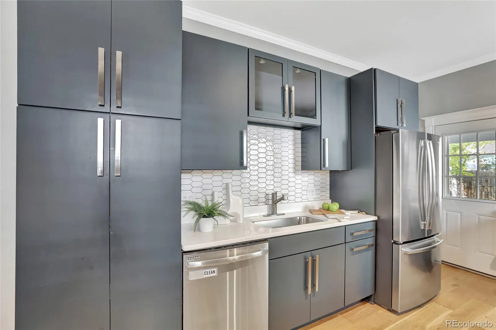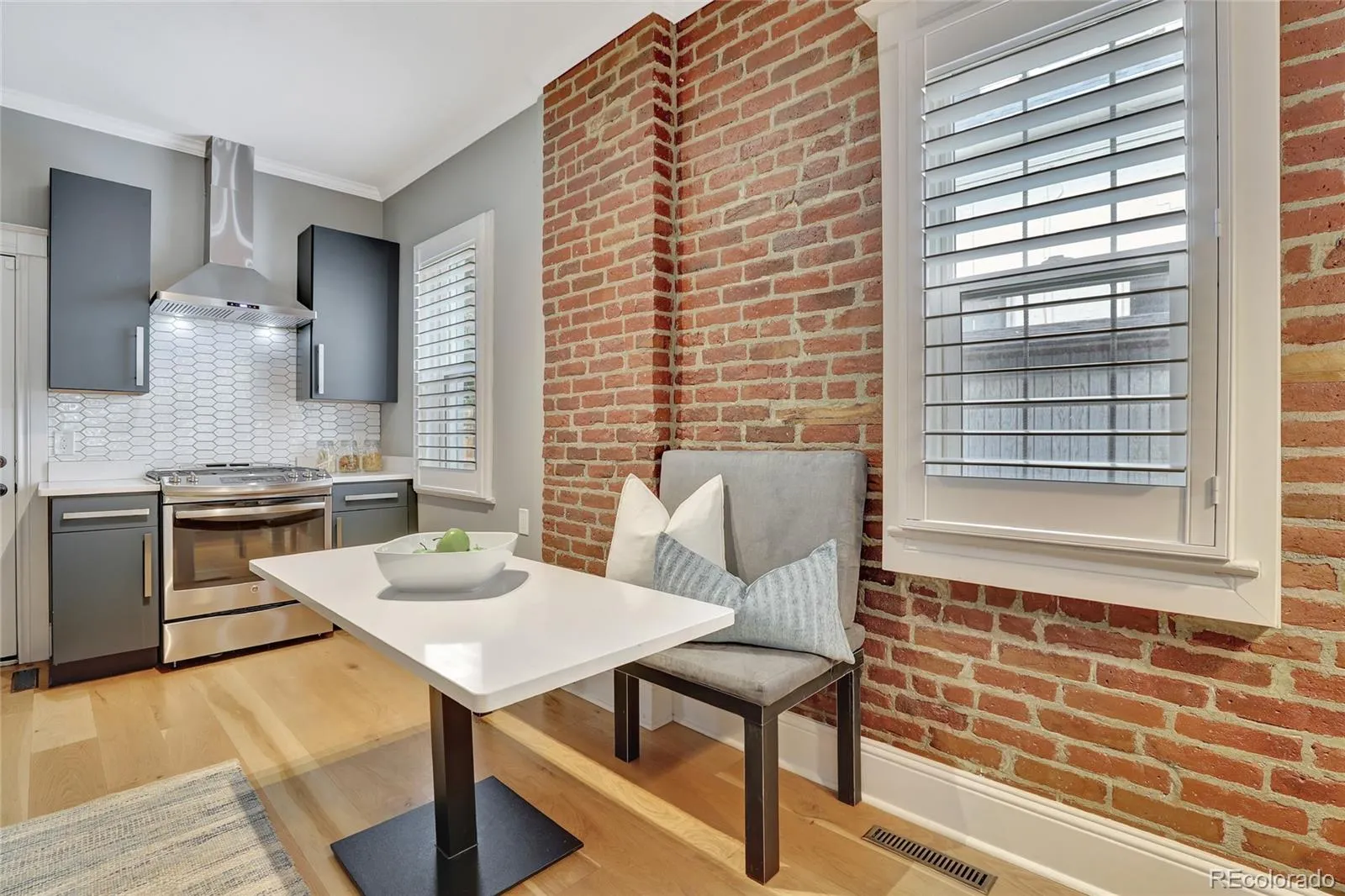Welcome to 1717 E 16th Avenue, a beautifully updated end-unit row home in the heart of City Park West. This home blends historic charm with modern style, featuring locally milled oak floors, 2 inch custom shutters, exposed brick, and an open layout. The gourmet kitchen is a showstopper — sleek cabinetry, marble surfaces, and a custom-built table/bench set make this both a beautiful and functional culinary hub. Retreat to the primary bedroom with ensuite bath, complete with stunning marble and an abundance of natural light! An additional bedroom and half bath round out the main level for your guests’ convenience. The private, fenced in backyard is perfect for entertaining and has a custom built outdoor television and a dog door. The spacious basement has been remodeled into a gear locker featuring ski racks, helmet hooks, and a customizable peg board, offering plenty of additional storage room. Roof refinished in 2024. Simple HOA maintains structure, manages water, and provides exterior insurance. Just blocks from City Park, 17th Ave dining, and the 16th Ave bike route — this is urban living at its best.