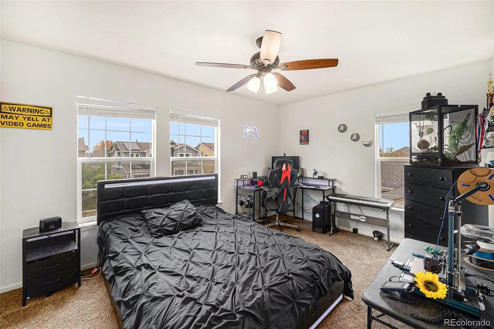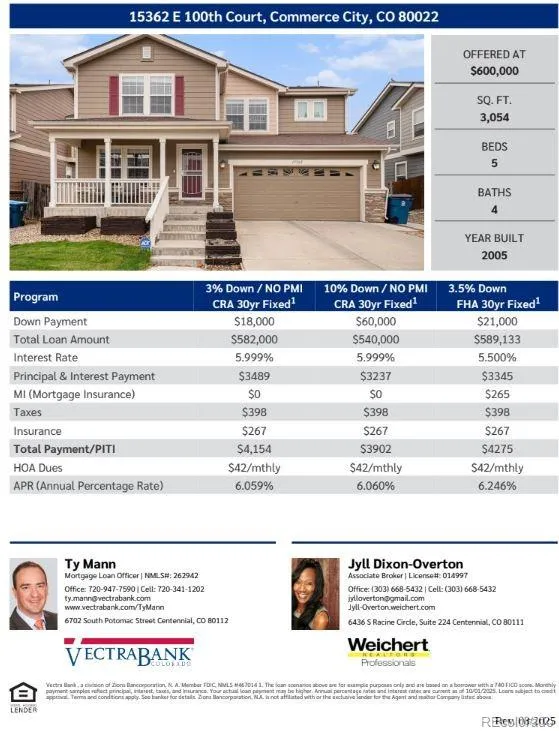 Welcome to this spacious 5-bed, 4-bath home in the rapidly growing community of Commerce City! With over 3,000 sq. ft. of comfort and style, this move-in-ready gem offers fresh new carpet and paint inside and out. The beautifully updated kitchen is the heart of the home, featuring a massive, functional island with durable concrete counters and custom cabinetry — perfect for cooking, entertaining, and everyday life. The main level offers a bright family room and a versatile formal dining or flex space along with a convenient powder bath. Upstairs, you’ll find generously sized bedrooms, including a massive primary suite with sweeping views and a spa-like five-piece bath. The fully finished basement extends your living space with a large family room, a conforming bedroom, and a newly updated full bath — ideal for guests or multi-generational living. Enjoy Colorado’s outdoor lifestyle in the spacious, fenced backyard with a covered patio and outdoor kitchen setup, perfect for gatherings year-round. This home checks every box — comfort, style, space, and location!
