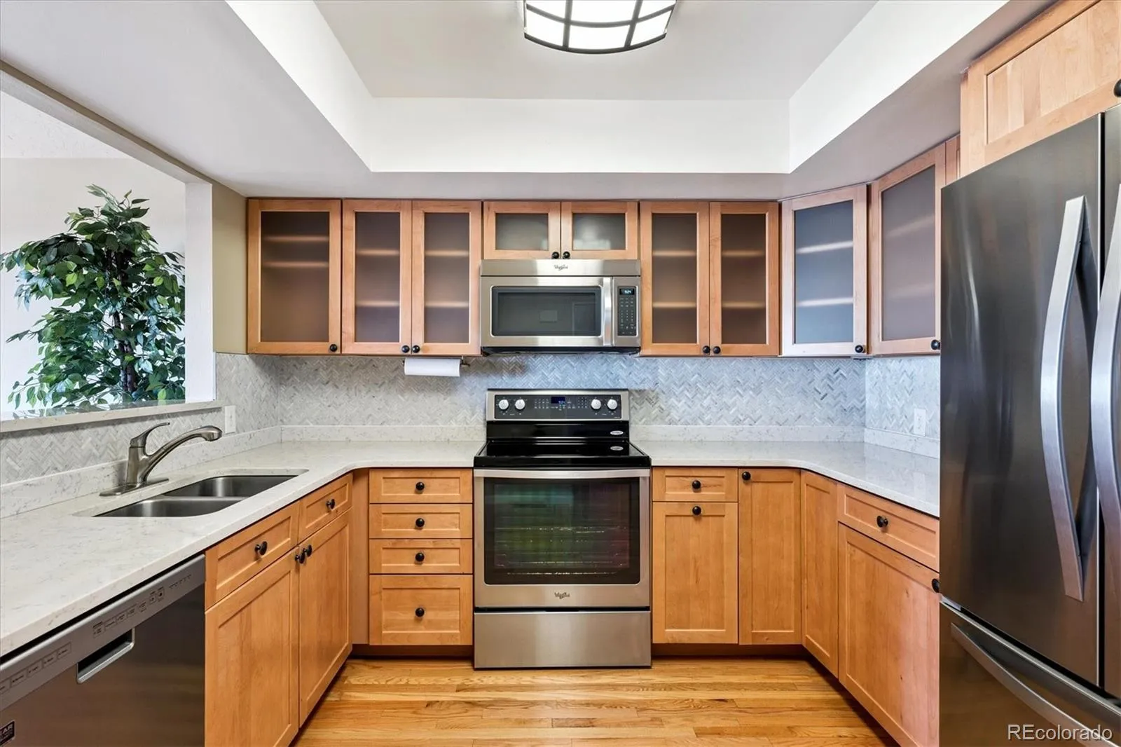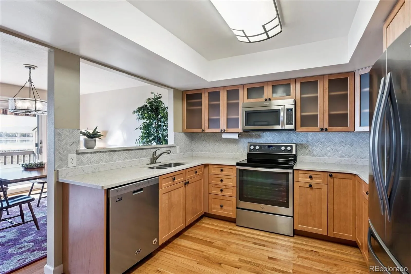 Enjoy a rare experience in Denver-lakeside living at its best! This beautifully updated townhome features stunning mountain and lake views from almost every room. The open-concept main level offers hardwood floors throughout, vaulted ceilings and a large deck off of the living and dining rooms. The kitchen has been remodeled and offers plenty of space for cooking and entertaining. The main-floor primary suite is tucked away from the great room for privacy but convenience. The walkout basement expands your living space with a large family room, guest bedroom, full bath, as well as laundry and plenty of storage space. Relax on the deck while taking in sunset mountain views. Located close to parks, trails, shopping, and dining, this home offers a perfect balance of comfort, style, and location.