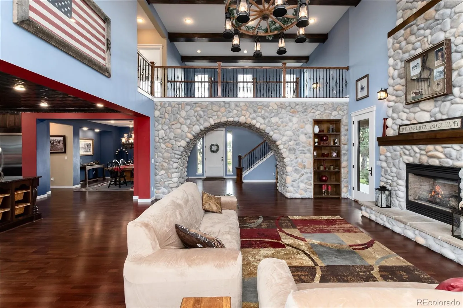 Over 125 years of love and laughter are woven into this landmark 4000 SF 6 bdrm/3 ½ bath custom home and school house on 80 acres. Built to accommodate a family of 9, this legacy ranch includes multiple barns, historic grain silo, personal picnic area and pond, irrigation cistern and endless acres to explore. More than 400 trees, planted by WPA when property was first homesteaded, now create a natural forest buffer—offering privacy, shade, and a peaceful setting for picnics and fireside gatherings near the secluded pond. The memories made here are preserved in a lovingly curated scrapbook for your perusal. The home’s interior honors its western roots, blending rustic charm with modern comforts. You’ll find a stamped tin ceiling in the kitchen, dark wood cabinetry, a river rock two-story fireplace, and arched passageways—all paying homage to the Old West. The chef’s kitchen can easily cater a crowd including double dishwashers, double sinks, double ovens,extensive prep area and expansive island all with granite counters. Main floor primary suite offers a cozy 2-sided fireplace, sitting area and access to the secluded deck. Each bedroom is uniquely designed with themes reflecting the western lifestyle—dressage, rodeo, and ranching—and includes thoughtful custom touches like horse stall closet doors. Upstairs Jack and Jill bath has 4 sinks and two tub/showers. The other hall bath has three sinks and separate tub/shower area for efficient shared use. The 600 SF school house with its own bath and drinking fountain offers potential as a guest cottage or second dwelling unit. Several concrete block barns originally used for a dairy operation remain with new 2023 roofs, storage rooms, grain loft, tack rooms and several run in sheds for livestock. The large grain silo is a regional landmark and is in excellent condition. The property is completely fenced and cross fenced. There is a new 75-gal water heater, new 2023 roofs (all outbuildings), and fresh exterior paint.