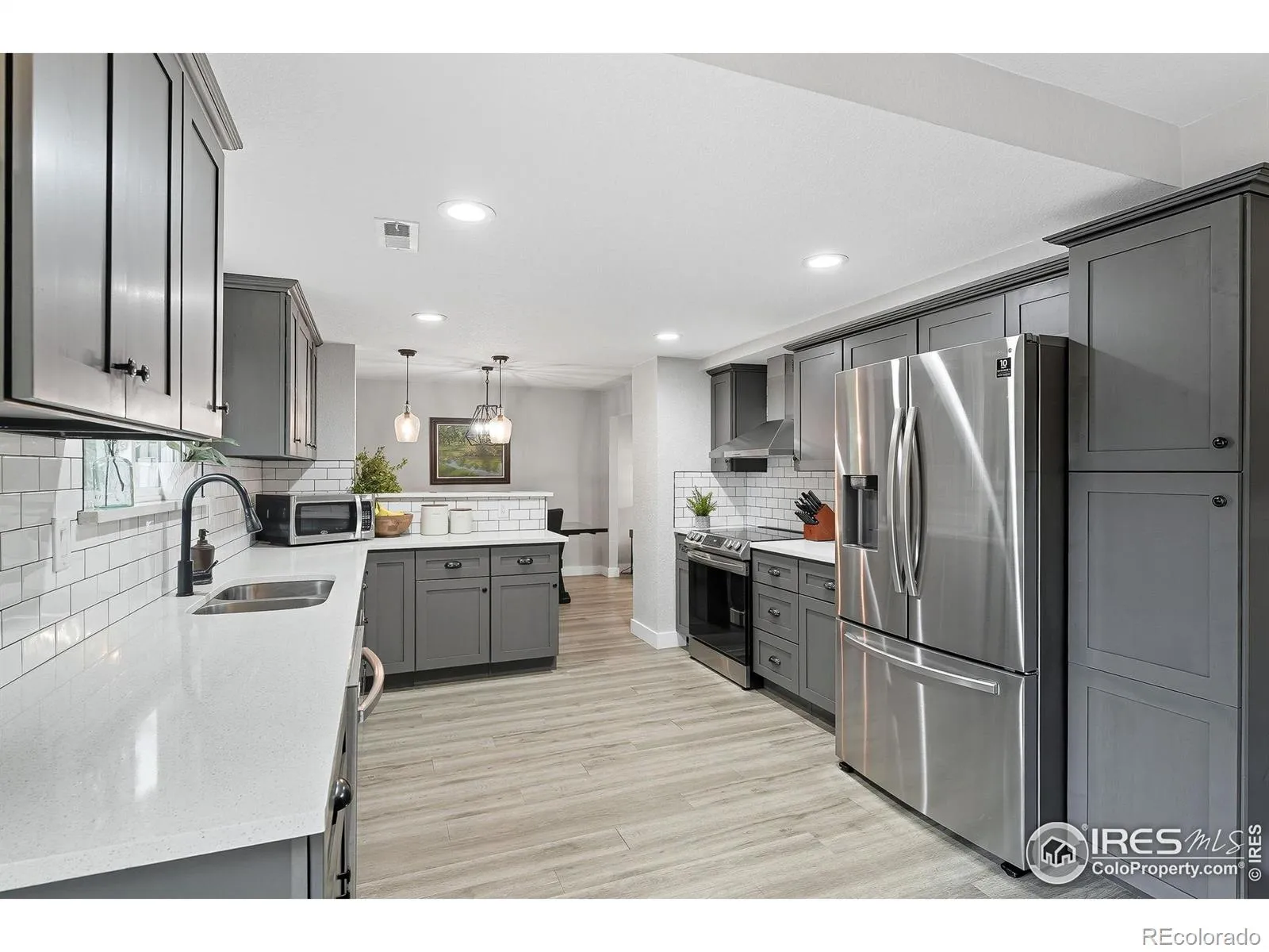 Welcome to this beautifully updated two-story home on a spacious quarter-acre corner lot in Louisville’s sought-after Parkwood neighborhood. Perfectly positioned near Coyote Open Space, the Louisville Recreation Center, and the lively restaurants and shops of historic downtown, this home offers an ideal blend of location, comfort, and style.The main level is bright and inviting, featuring an open layout that connects the living room, dining area, and remodeled kitchen with a cozy breakfast nook. Just beyond, the family room centers around a charming wood-burning fireplace, creating a warm and relaxed atmosphere for everyday living.Upstairs, the primary suite offers a peaceful retreat with a walk-in closet and an updated 3/4 en suite bath. Two additional bedrooms and another full bath complete the upper level. The finished lower level adds versatility with a large open area perfect for a home gym, playroom, or creative studio, along with a fourth bedroom, full bath, laundry space, and extra storage.Recent upgrades include a new furnace, central AC, solar panels, a new fireplace, and a newly added backyard patio-providing comfort and efficiency inside and out. With its generous lot, thoughtful improvements, and prime Louisville location, this Parkwood home combines everyday functionality with timeless appeal.