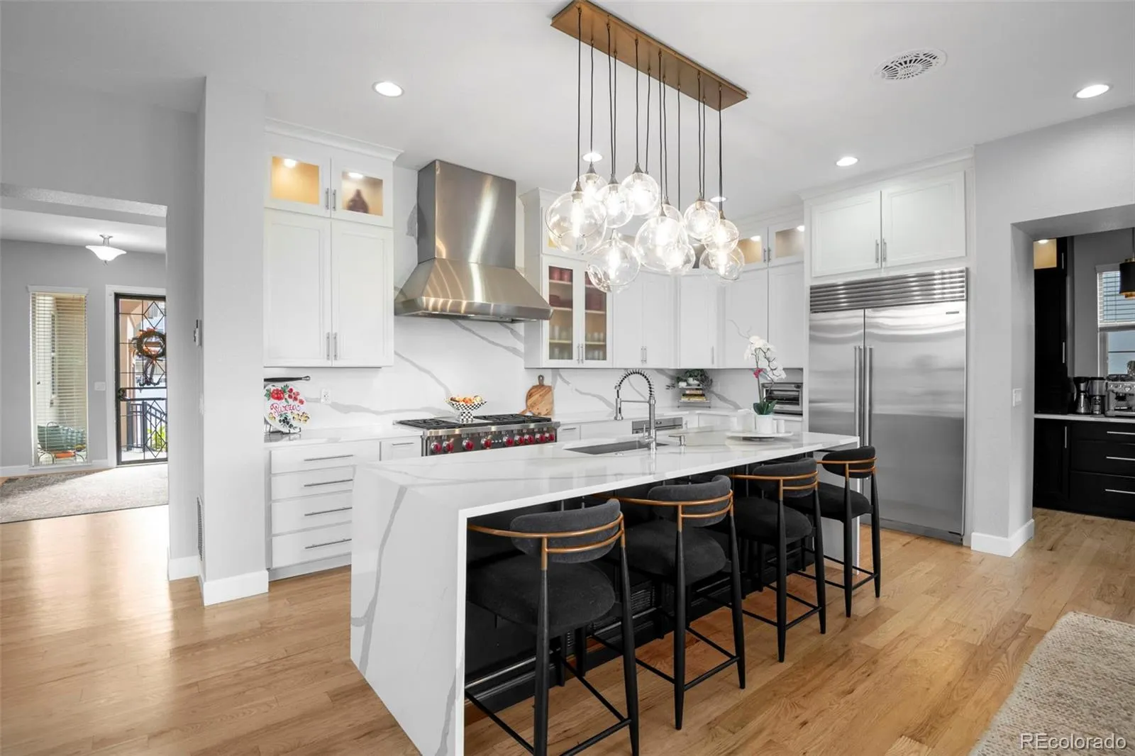 Welcome to your dream home, perfectly situated for a blend of convenience and tranquility. This contemporary residence features beautiful white oak floors, custom railings, and elegant lighting. The gourmet kitchen is a chef’s paradise with top-tier Wolf appliances, including a gas range, Cove dishwasher, and built-in Subzero refrigerator. Gorgeous ceiling height cabinets, quartz countertops/backsplash a spacious island, coffee bar, and wine bar, make it perfect for gatherings and entertaining. The generous walk-in pantry is a bonus! The sunlit main level great room flows into an inviting outdoor area, offering privacy and nature trails right outside your back door. Two flexible spaces, a loft upstairs, and an office on the main level add additonal space for work or play. The upper level features a luxurious primary suite with a cozy fireplace, a spa-like bathroom with two showers and a garden tub, and two oversized bedrooms, each with ensuite bathrooms and walk-in closets. Experience modern elegance and outdoor leisure in this prime home.