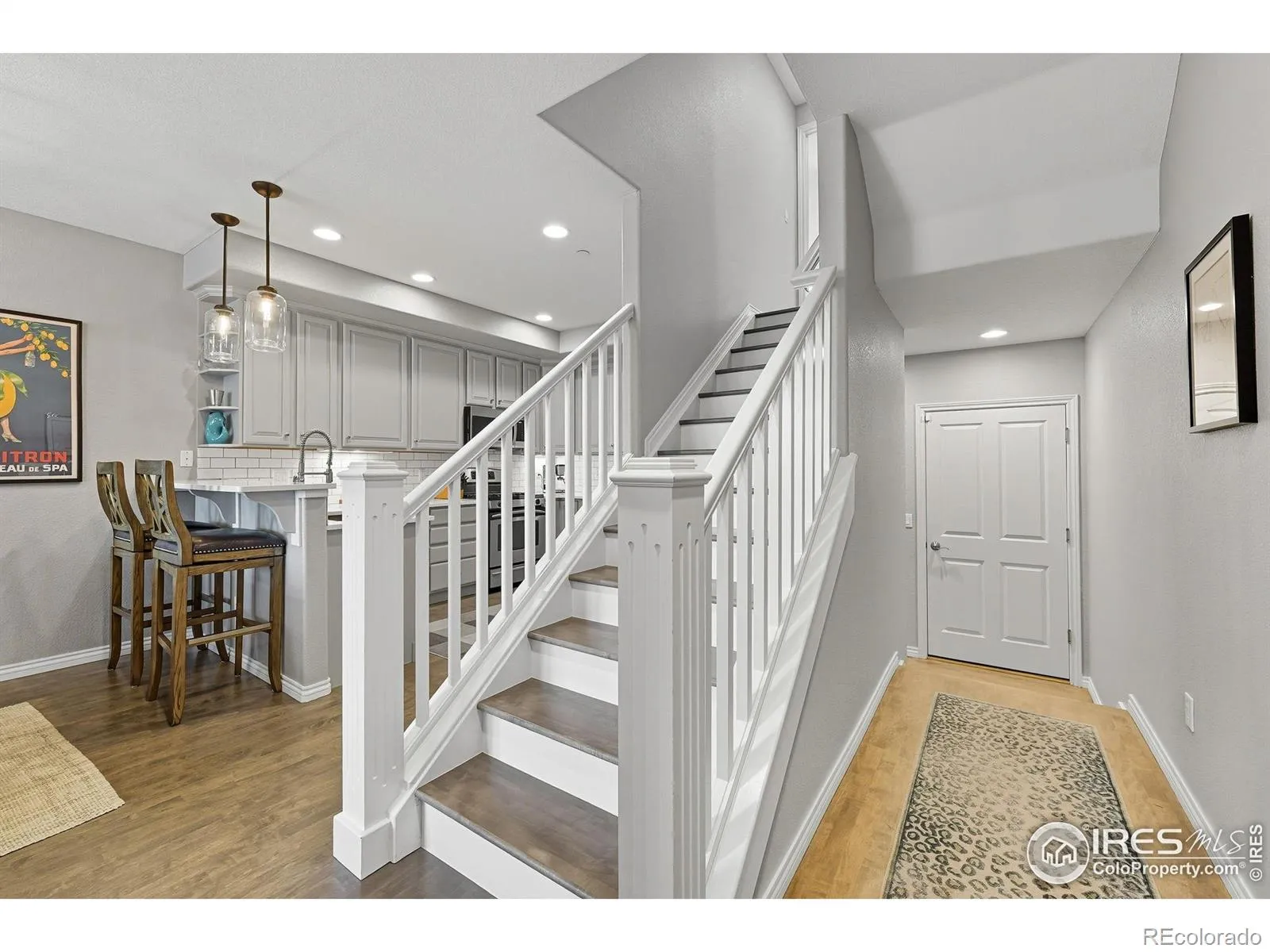 Live the North Boulder lifestyle in this light-filled Dakota Ridge townhome, perfectly positioned across from the park w/ stunning Foothills views. Thoughtfully designed across four levels, this spacious 3 bed, 5 bath home blends modern comfort w/ effortless indoor-outdoor living. Enjoy coffee on your front porch, cocktail hour on 1 of 4 private balconies, and weekend adventures w/ hiking and biking trails right outside your front door. Step inside to an open main level where the living, dining, and kitchen flow seamlessly together-the heart of the home. A cozy gas fireplace anchors the living room, while the freshly painted interior, updated designer lighting, quartz countertops, and newly refinished cabinetry bring a modern, sophisticated touch. The kitchen shines w/ newer appliances (23-24) and a clean, contemporary design. Additional updates include new hardwood flooring, carpet, hardware, A/C (24), and water heater (22). Upstairs, the second level features a spacious secondary bedroom w/ an en-suite full bath and west-facing balcony-the perfect guest or flex retreat. Just a few steps up, the serene primary suite awaits-a private retreat with a cozy gas fireplace, two walk-in closets, and a luxurious five-piece bath with updated lighting. Step onto your private balcony overlooking the park and soak in peaceful views from sunrise to sunset. The top level offers a third bedroom with skylights, a full bath, and a private balcony-ideal as a guest suite, office, or creative studio. The fully finished lower level invites relaxation with a gas fireplace, perfect for movie nights or a cozy playroom, plus a full bath, laundry area, and storage space. A two-car attached garage adds everyday convenience. Experience the best of North Boulder living-where trails, parks, and outdoor adventure meet vibrant local favorites like Wapo’s, Lucky’s, Bellota, Dagabi, and the NoBo Art District. A turnkey, lock-and-leave home that captures the very best of the Dakota Ridge lifestyle.