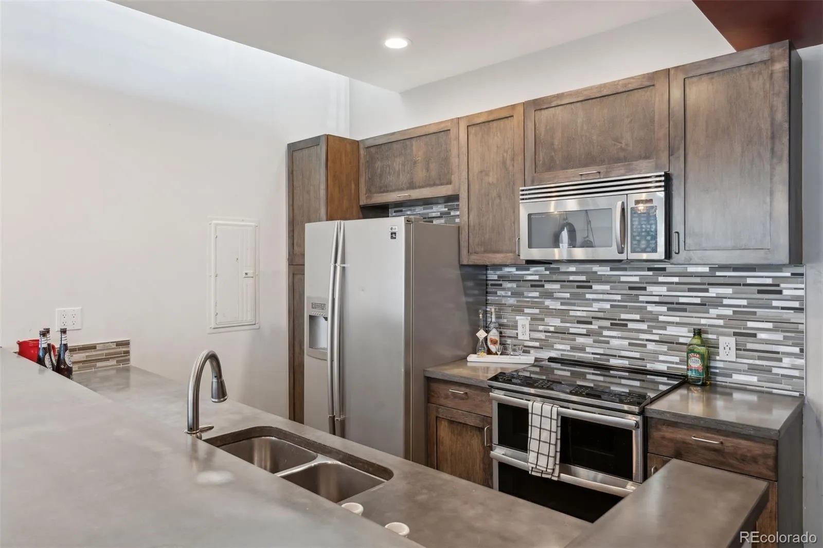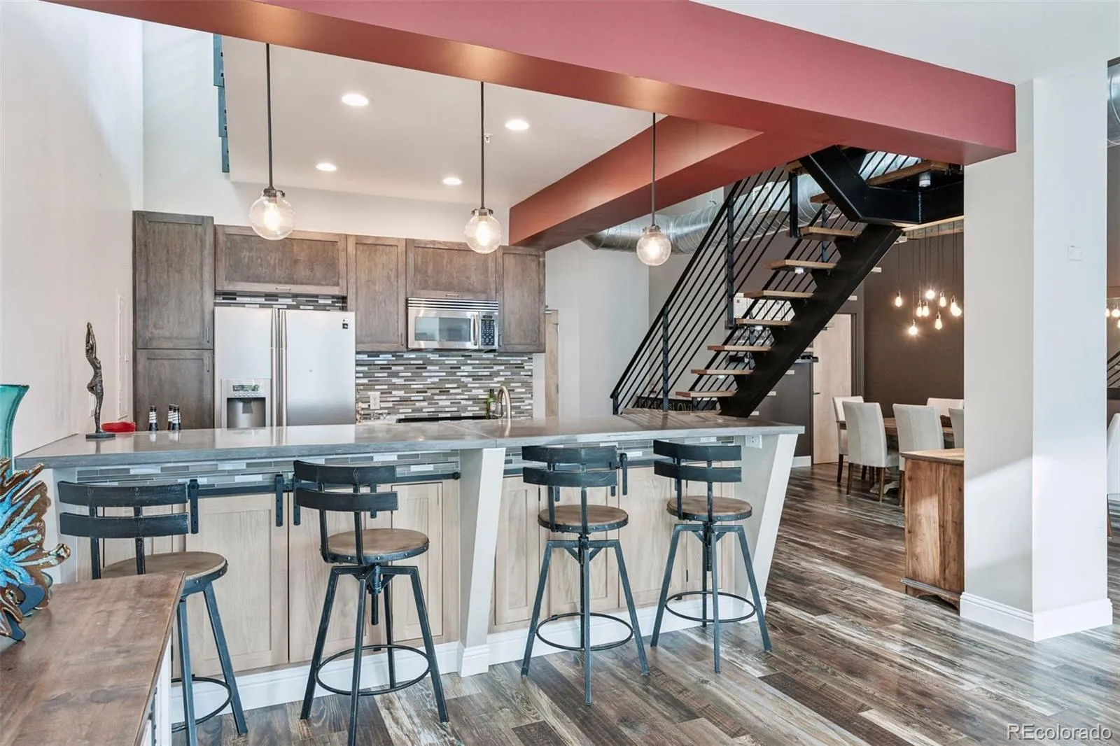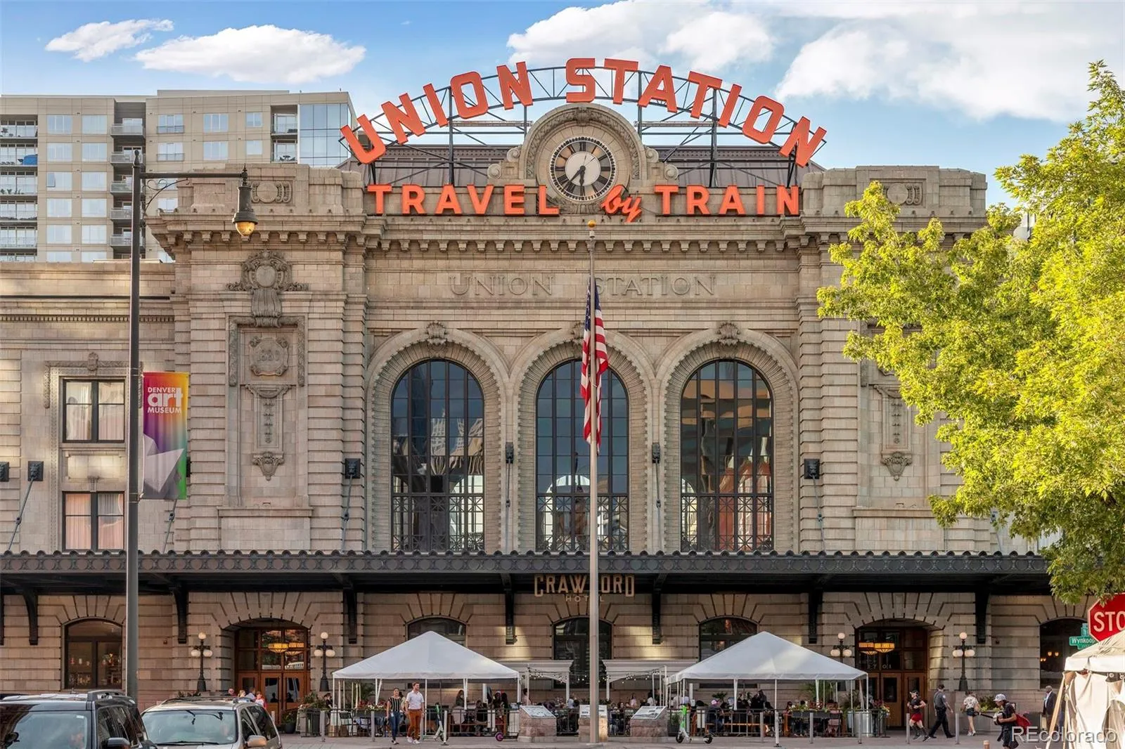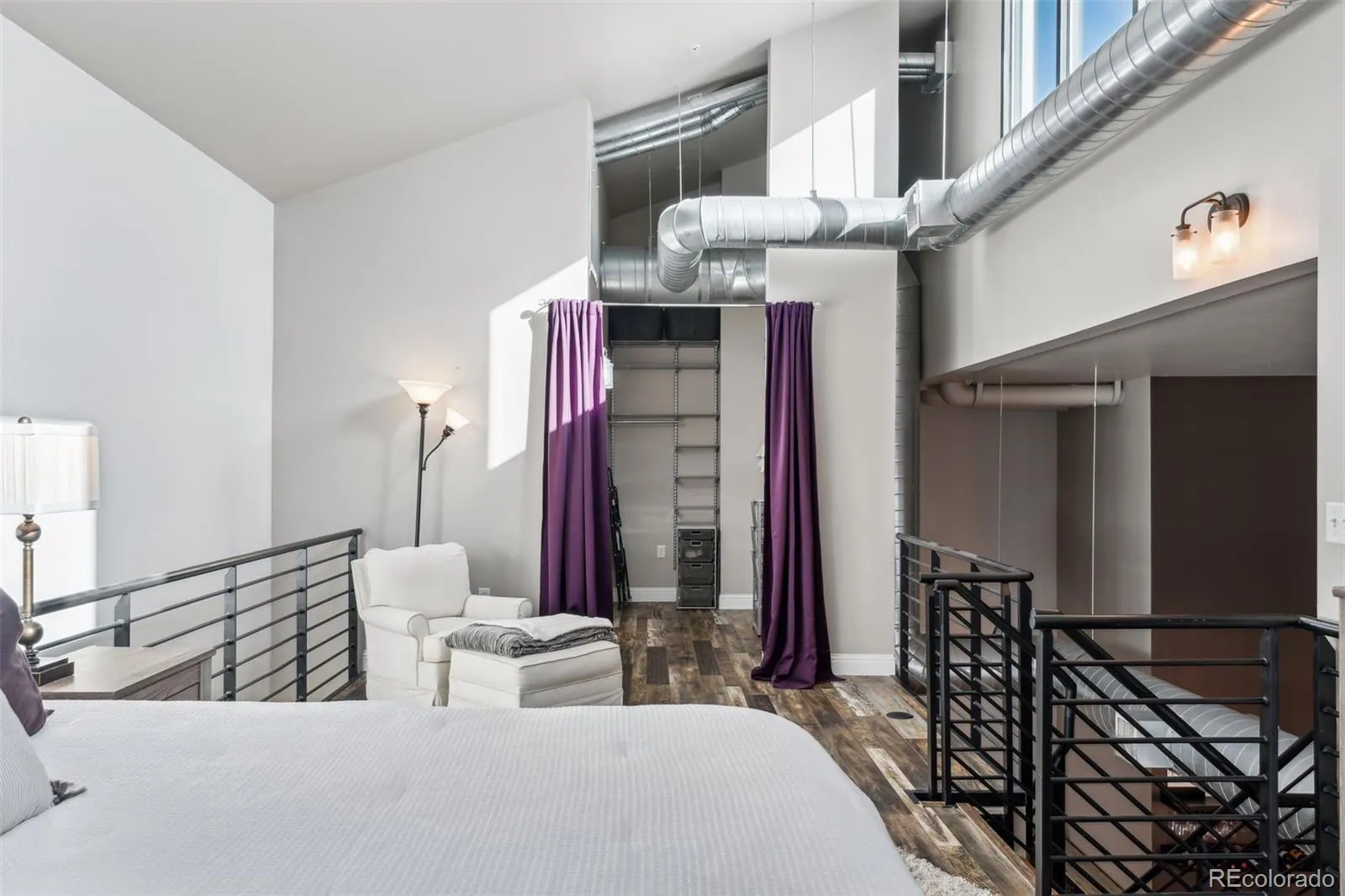 Available Furnished! Move Right In! This award-winning Jack Kerouac Loft building is not to be missed. Built in 2005 by urban preservationist Dana Crawford and architect Jim Johnson, this home offers a rare blend of industrial design, modern luxury, and prime downtown living. Nestled in a peaceful enclave of Denver’s Ballpark/Union Station North neighborhood, this expansive 1,746 square foot penthouse loft showcases breathtaking 22-27 foot ceilings, a full wall of west-facing windows with Hunter Douglas remote blinds, and French doors leading to a private terrace. With two full bathrooms and a flexible open layout, the space can easily be converted into a two-bedroom retreat (see proposed floor plan). The recently renovated chef-inspired kitchen features glossed concrete countertops, an oversized island, custom cabinetry/drawers, and new GE stainless steel double oven making it an entertainer’s dream. The lofted primary suite offers a spa-like en-suite bath with soaking tub, and a walk-in closet with a custom organization system. The main level boasts an open concept living and dining area, an additional full bathroom with jetted tub, washer/dryer, a large office or media space, and a floor-to-ceiling storage closet. Thoughtfully upgraded with luxury vinyl plank flooring, designer lighting, and premium finishes, this loft seamlessly blends style and functionality. Additional highlights include deeded heated garage parking space (2nd parking space available for sale) with extra storage, a secure building with video intercom security, bike storage, and open street parking. The pet-friendly building allows short-term rentals (city regulations apply), making this an excellent choice for homeowners or investors. Located just steps from Coors Field, Union Station, top restaurants, breweries, and the Platte River Trail, with easy access to I-25 and DIA, this rare penthouse offers the ultimate urban lifestyle. A true architectural gem—schedule your private showing today!