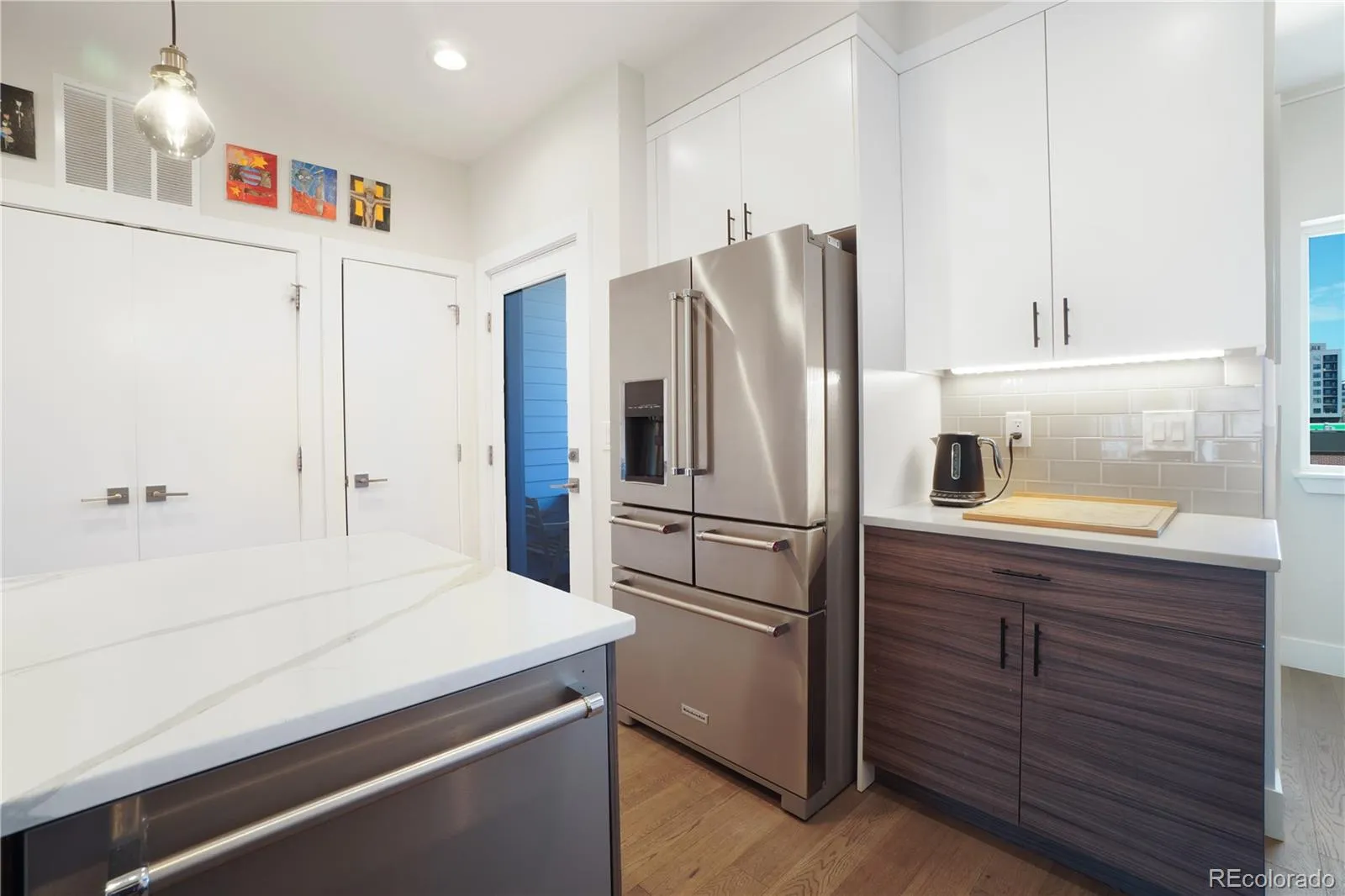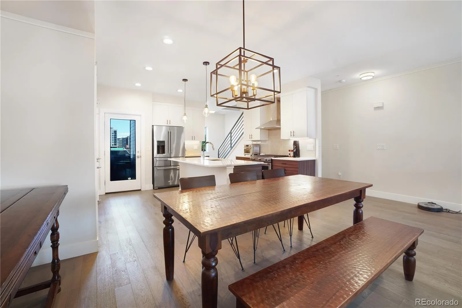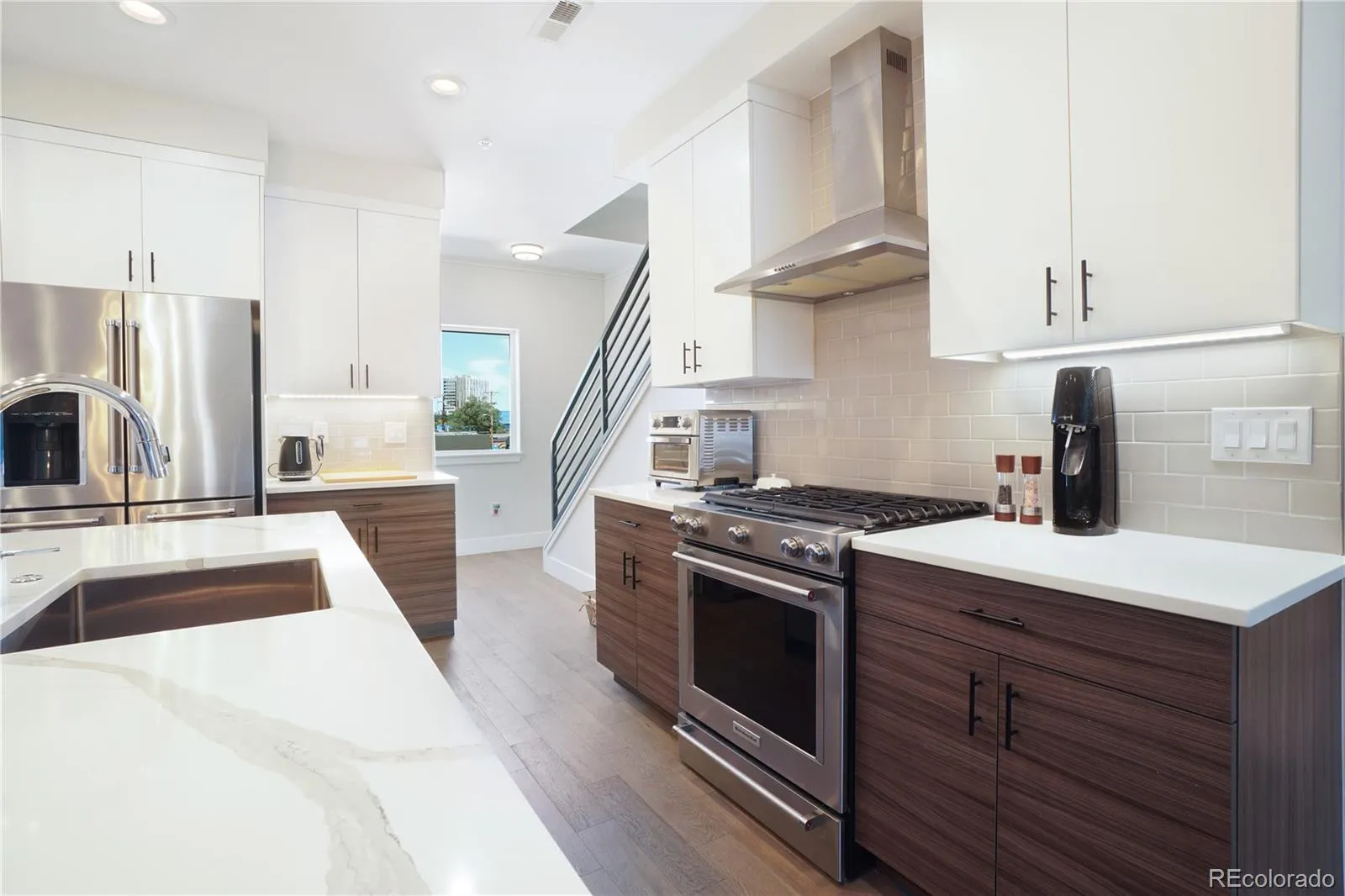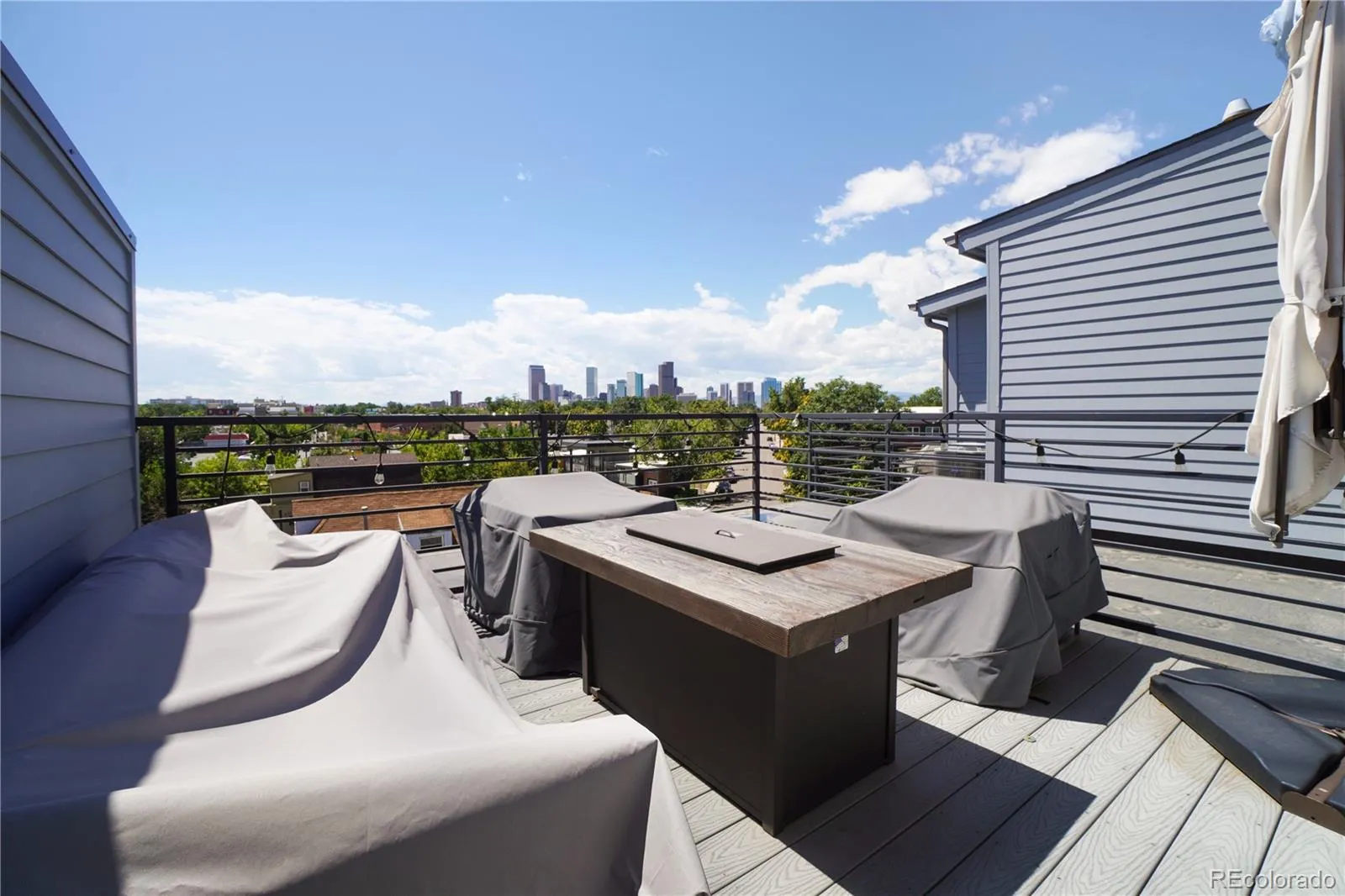 Check out this newer (Built in 2016) 3 bed 3 bath urban contemporary rowhome with attached direct access 2 car oversized garage from secured gated access driveway from alley. This modern rowhome also has NO monthly HOA (only a party wall agreement for shared expenses). Location! Location! Location! This is an amazing opportunity to own a newer, HOA free home in such a convenient, walkable location. Being on the edge of the RiNo Arts district, the list of convivences such as the vast number of bars & restaurants, performance venues like the Mission Ball Room and SO MUCH MORE it would be impossible to list, seriously, google location! Above and beyond the great Urban location this modern floor plan enters from the aforementioned garage or ground level entry at the foyer level with stairs to the second level featuring a spacious open “great room” or “loft style” combined living, dining, kitchen, 1/2 bath and access to a balcony perfect for a BBQ or morning coffee. Stairs, which are tucked away behind the wall off the kitchen, lead to the third level. This third level is highlighted by the large primary bedroom with bright modern luxurious on suite bathroom and very nice Denver city skyline views. The third level also features a large secondary bedroom (with large double door wall closet) and a full bathroom. There is more, so much more! From the third level a final staircase leads you to the final level which features nice 3rd bedroom with included custom murphy bed and built-in shelves. Also on this floor is a storage closet and convenient wet bar area. This wet bar is a MUST HAVE as you enjoy the private roof top deck, again with amazing views of the Denver city skyline and beautiful Rocky Mountains.
