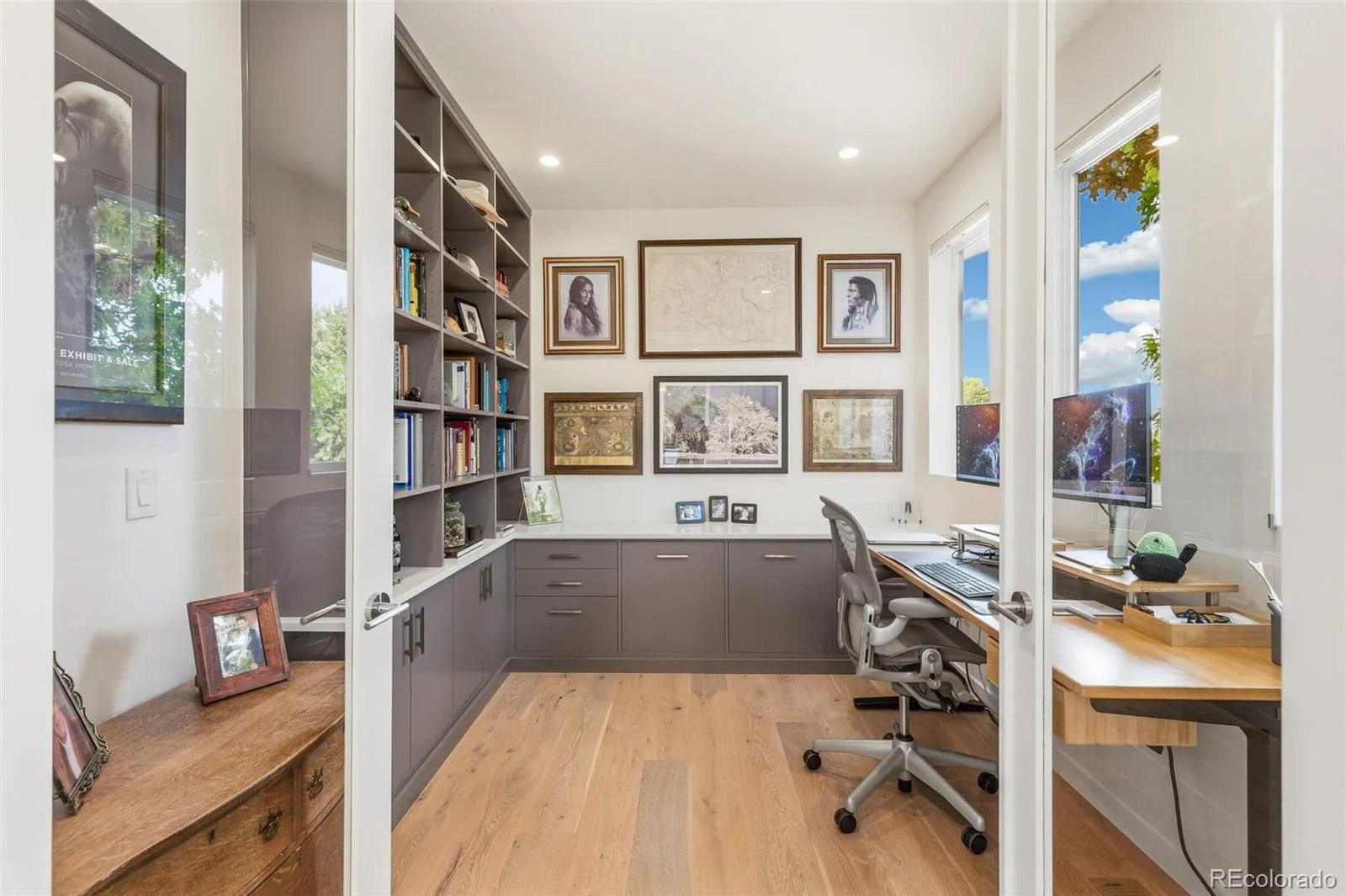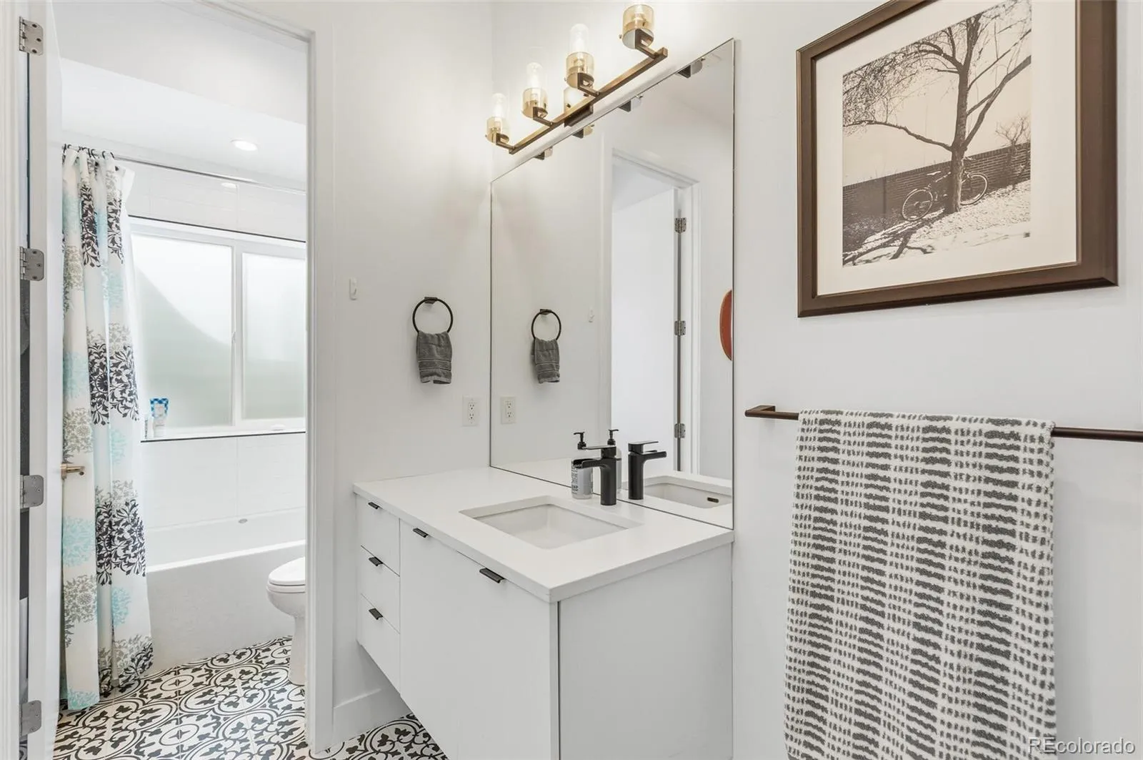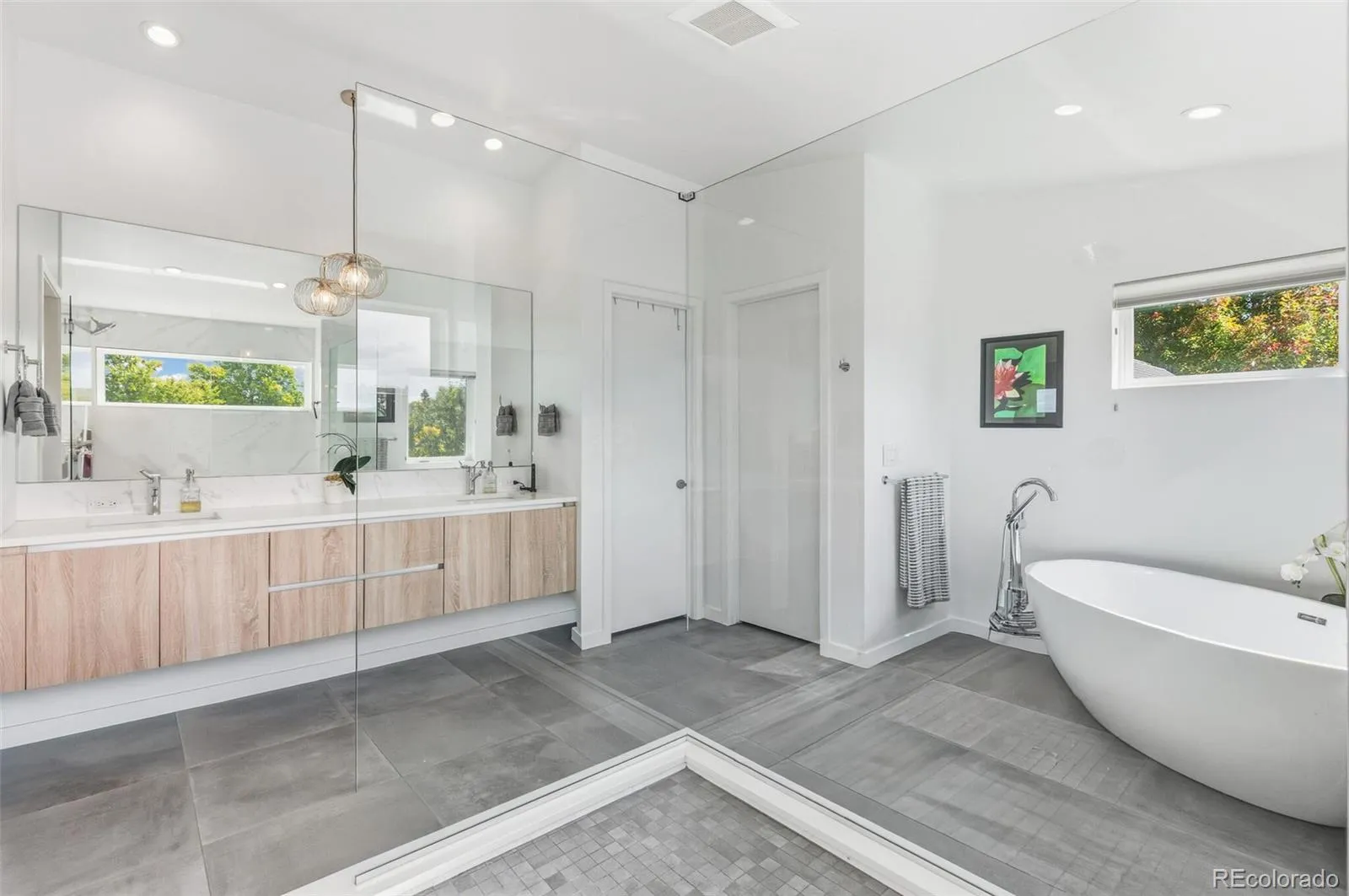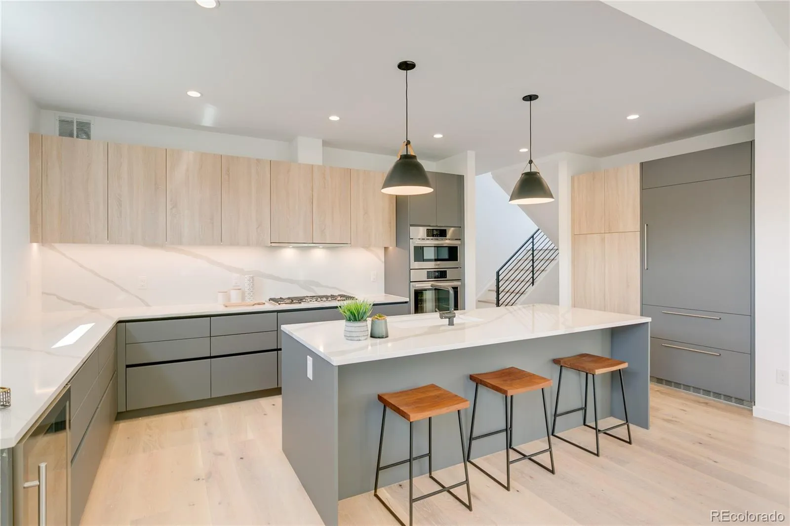 Modern, Sleek & Tasteful – Contemporary Luxury Defined Your Way Awaits on Wheat Ridge’s Street of Dreams! 3258 sq ft 4 bed/5 bath + office. Impeccable design & function in sought-after Bel-Aire. Soulful Modern with Farmhouse Vibes. High-end Euro finishes throughout. Open floor plan showcases designer interiors. Spacious entertainment floor with vaulted ceilings creates a mid-mod flavor. Enjoy floor-to-ceiling windows with light beaming in all day long. Luxurious wide plank white oak floors. Enormous walk-out deck off of great room is graced with a towering red flame maple tree – truly amazing! Impressive kitchen dressed with chef-grade appliances, quartz tops, and an oversized island to seat 5. Main level has 2 en-suite bedrooms, both ample-sized and nicely closeted. Enjoy the pleasure of a private office off the beaten path – work quietly and away from the bedrooms… Step upstairs to the enormous luxe owner’s suite featuring mountain views from a private deck, the suite features a sexy soaking tub, a huge shower – all presenting with glorious views! Mountain views of the full front range. Lower level is not basement life… it boasts a media/gaming room, a well-placed wet bar, and room for everyone to enjoy! Lower level has an unmatched guest suite – complete with a sophisticated Murphy Bed, extraordinary storage with closets galore, and a southern-facing egress window with sunlight gracing the space. Lower level concludes with a huge mud room and laundry room – the mud room presents with space for everyone to hang up and put away everything. Laundry room has superb storage, hanging space, and room to launder! Rare Oversized Attached 2-car garage. 12,988 square foot lot with lots of room for gardens, kids, dogs, games, or that future pool! Easy access anywhere – shopping within minutes of your front door, 3 minutes to Sweet Ridge, 6 minutes to Highlands, and 5 minutes to I-70 for wintertime fun! Beautiful bike and hiking paths are only steps away!