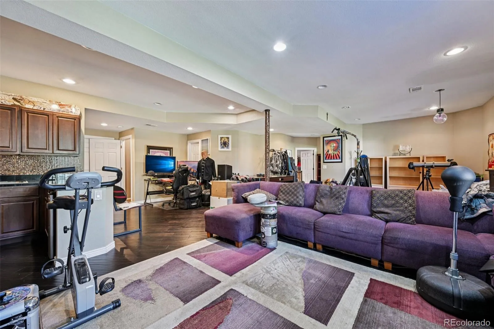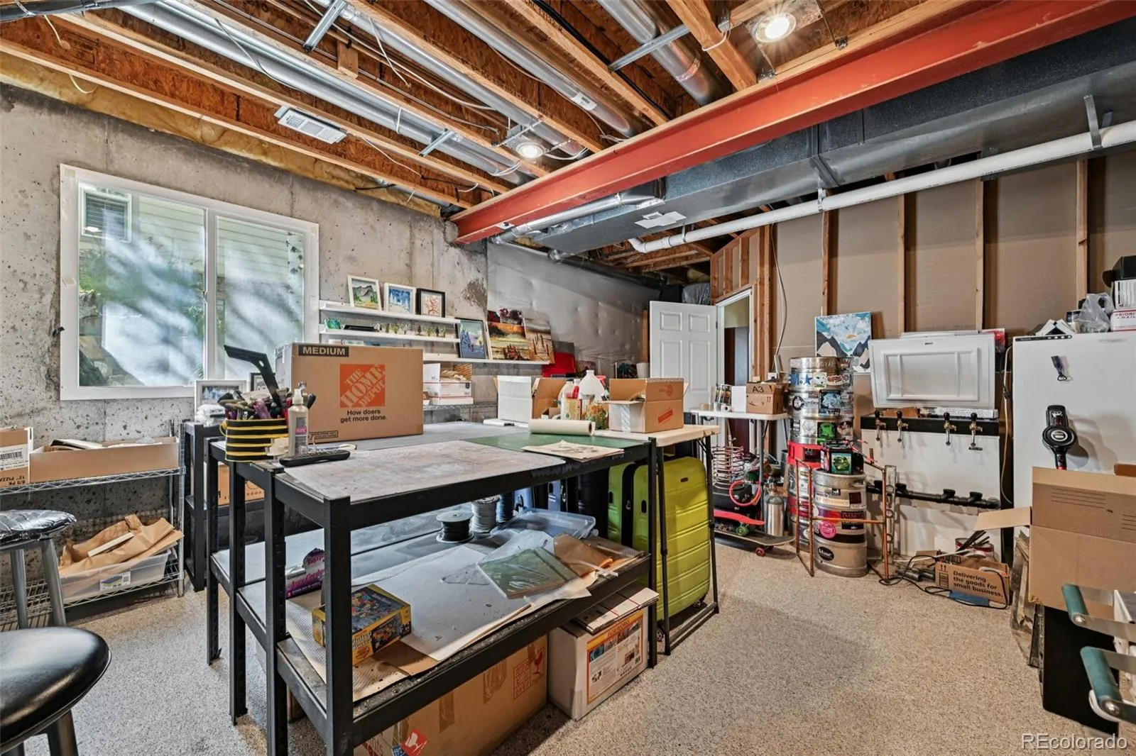 The basement enhances the living space with a full bathroom, wet bar, and a workshop area—perfect for hosting, hobbies, or creating a home gym.