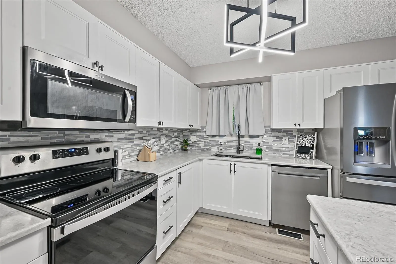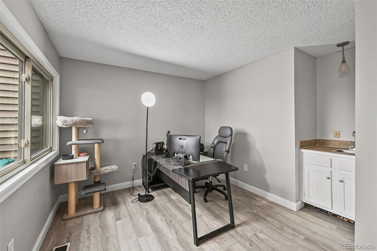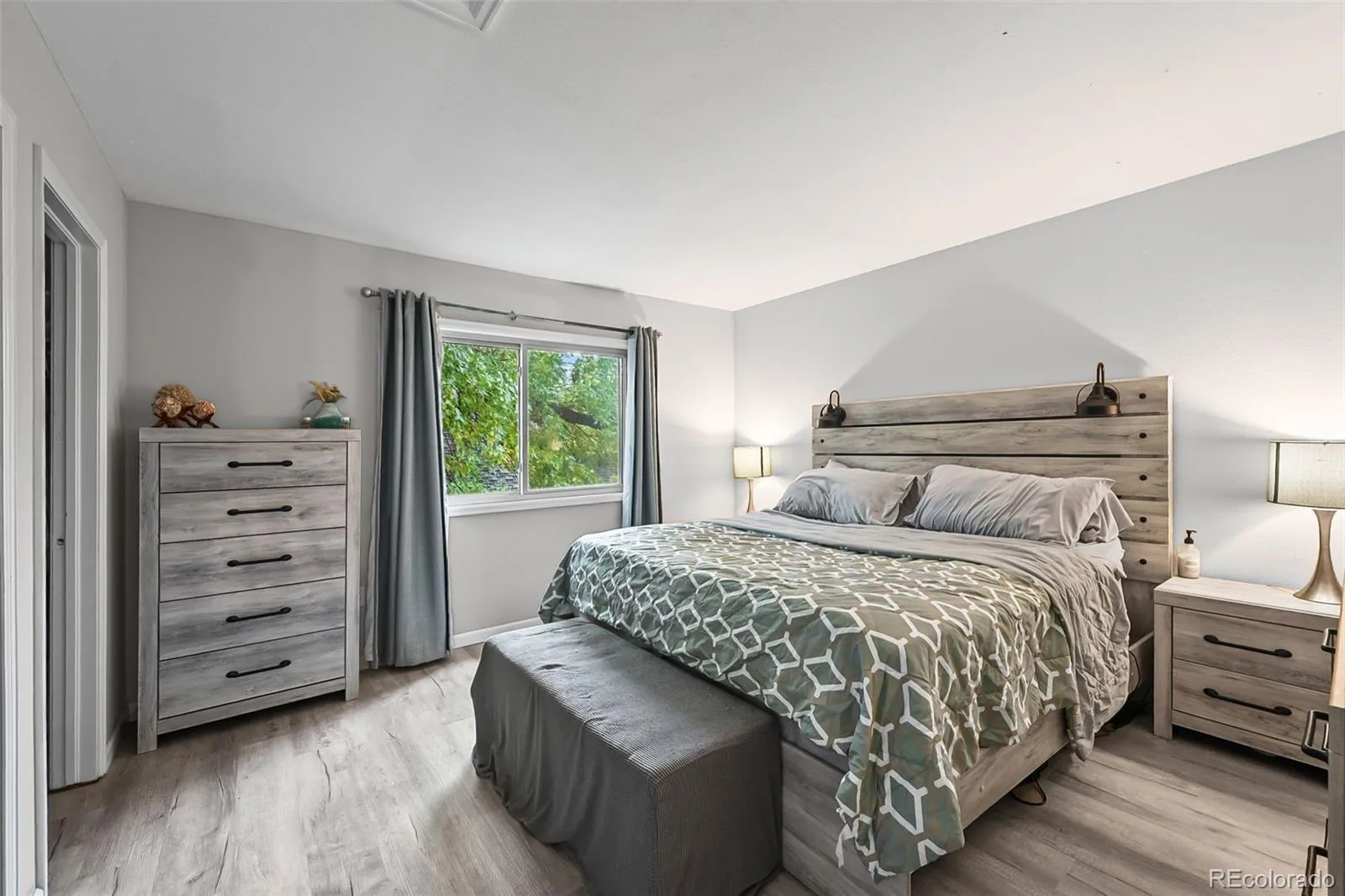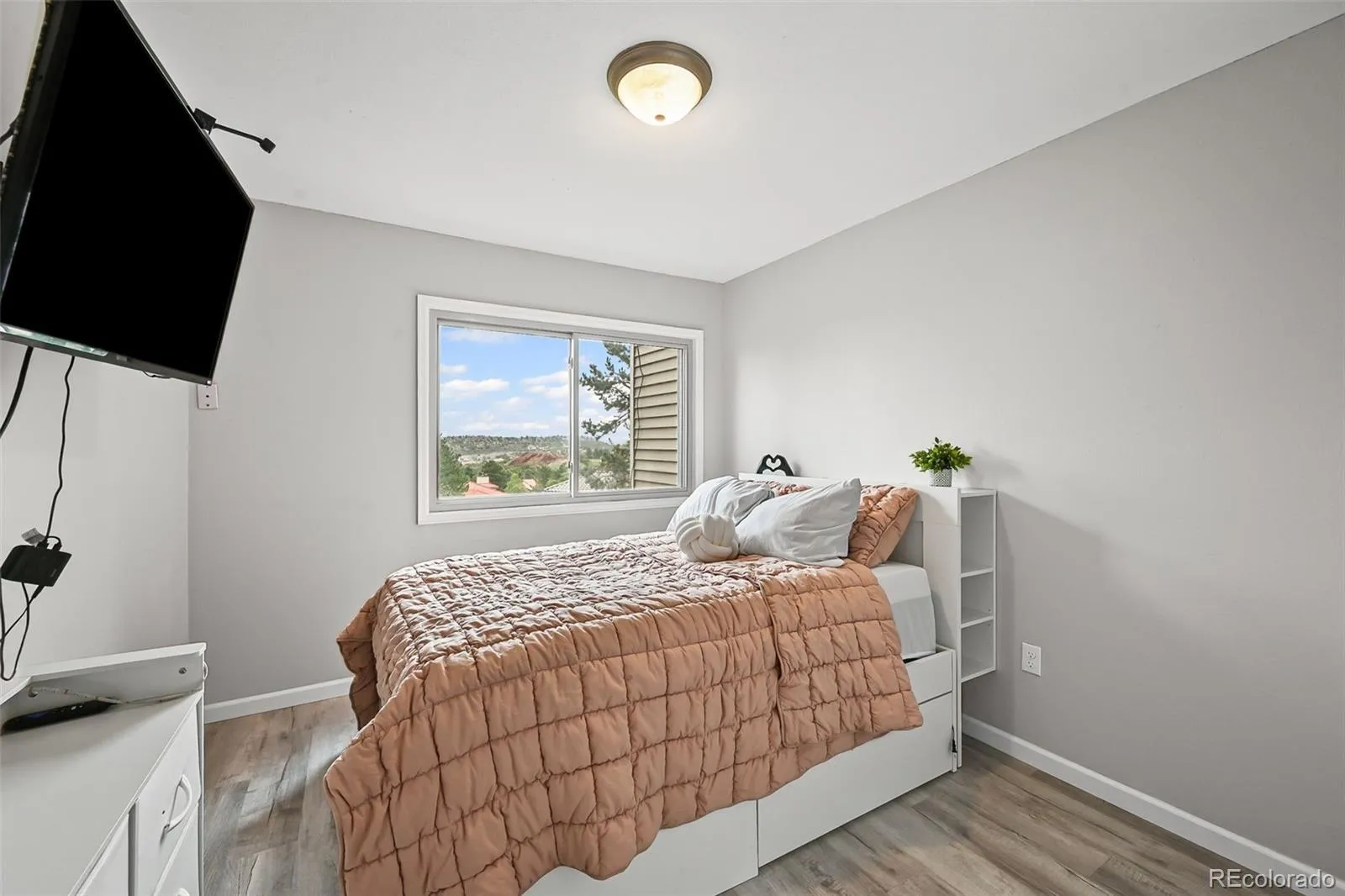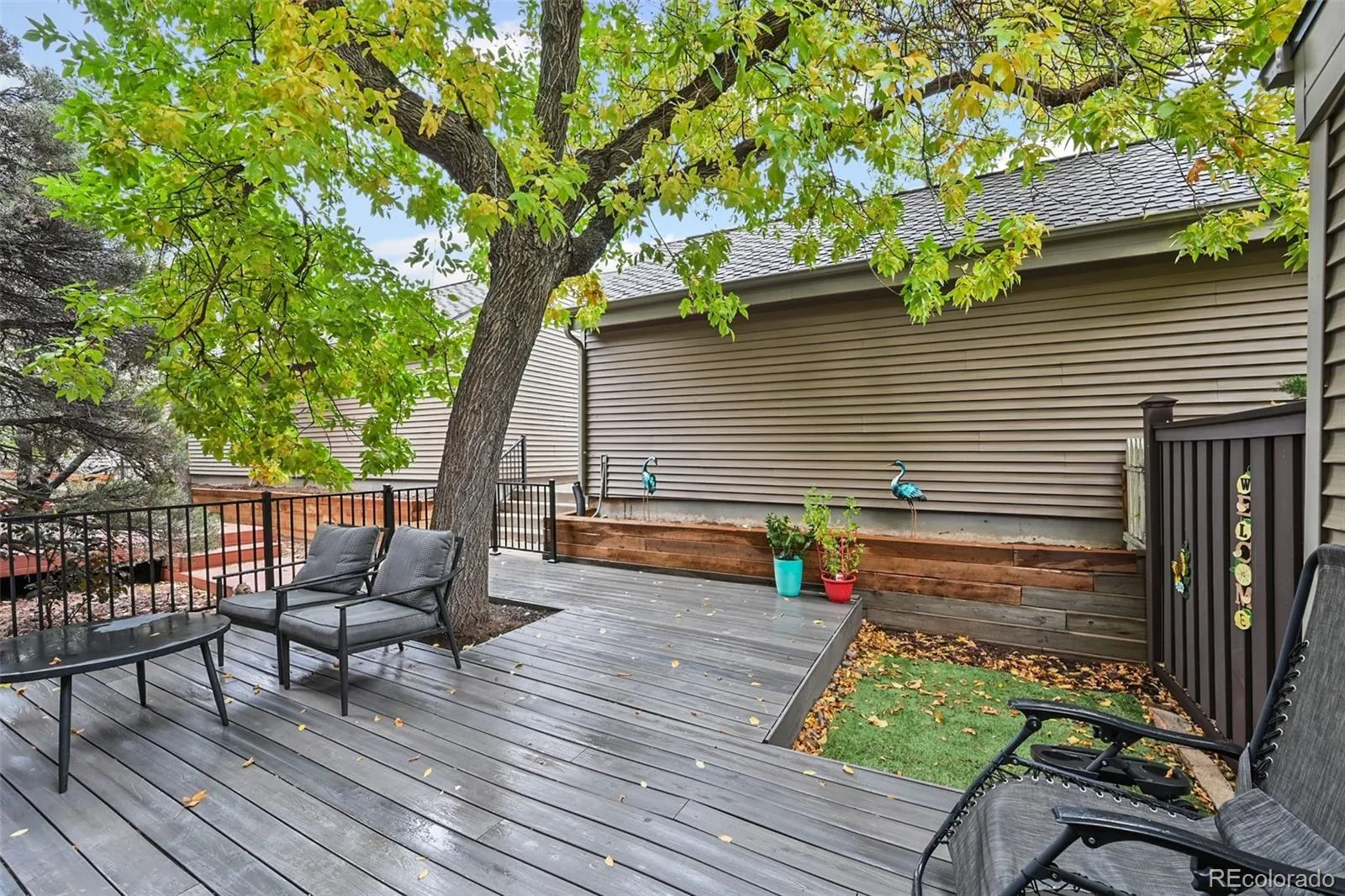 Experience serene living in this beautifully updated condo perfectly situated next to Roxborough Park. Every detail has been refreshed as of November 2024 including a new kitchen, flooring, deck, and fresh paint. Designed for nature lovers, this quiet retreat offers stunning views and a peaceful setting. The vaulted, beamed ceilings in the living room create an airy, open atmosphere centered around a cozy wood-burning fireplace with scenic window views. A versatile main-level office featuring a wet bar can also serve as a formal dining room. The sleek, modern kitchen boasts quartz countertops, abundant cabinetry, a stylish tiled backsplash, and cohesive light fixtures, flowing seamlessly into the dining area and out to a private deck shaded by a mature tree. The deck is perfect for morning coffee or al fresco dining and provides direct access to a detached two-car garage. Upstairs, find two spacious bedrooms including one with a walk-in closet and direct access to a full bathroom. The finished basement adds flexibility, currently serving as a third bedroom or additional living space. This condo combines thoughtful updates, functional spaces, and an unbeatable natural setting making it a perfect retreat for those seeking comfort, style, and tranquility.