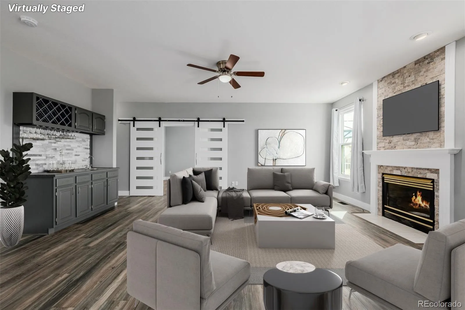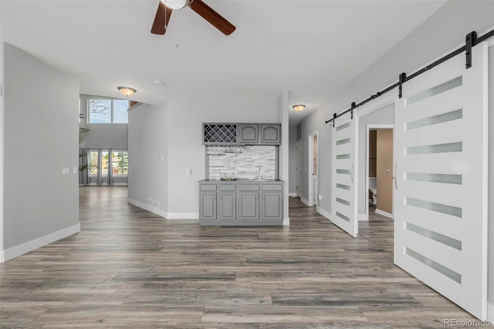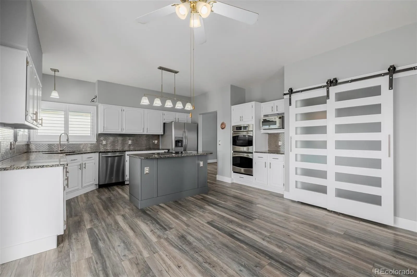 The main level welcomes you with a spacious bedroom with en suite bath, ideal for guests or multi-generational living. The gourmet kitchen is a chef’s dream, featuring granite countertops, stainless steel appliances, a double oven, and abundant cabinetry. It opens seamlessly into a warm, inviting living area with a built-in wet bar, perfect for entertaining. A formal living room and dining room add sophistication and flexibility to the layout.