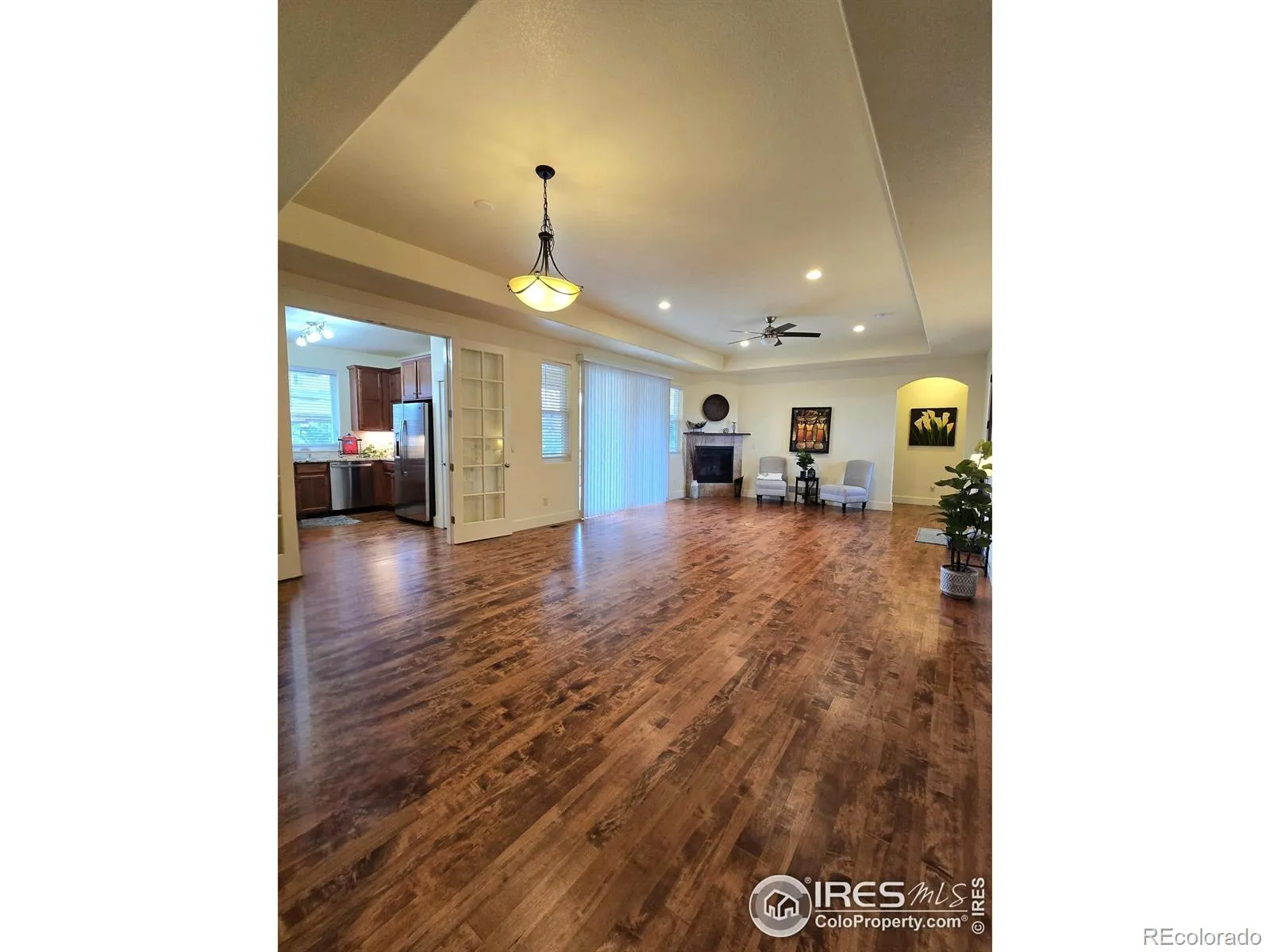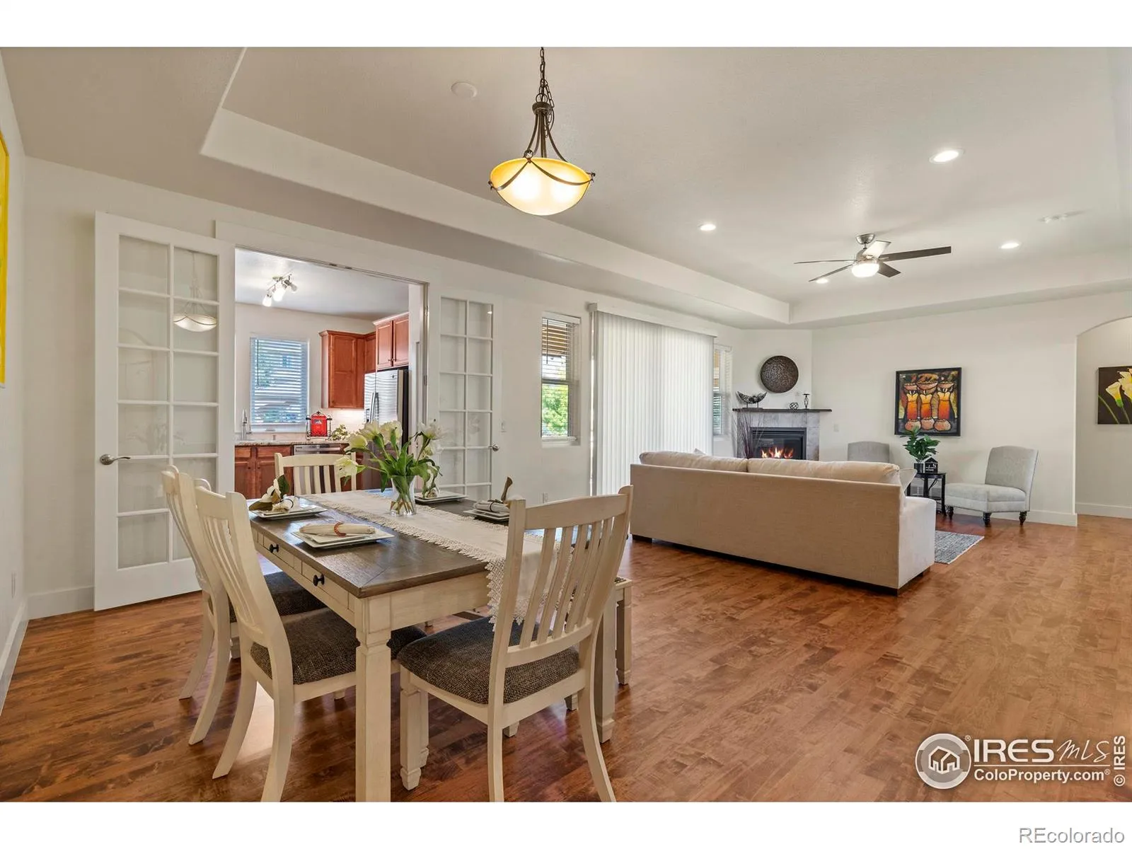Discover refined elegance in this remarkable custom-designed home in the heart of Windsor. Built with exceptional attention to quality and detail, this residence blends timeless luxury with modern innovation, presenting an exclusive haven for buyers seeking comfort, sophistication, and flexibility. Enter through a welcoming, ramped entryway and enjoy expansive living spaces impressively appointed with 10-foot ceilings and rich maple hardwood flooring throughout. The gourmet kitchen features granite countertops, maple cabinetry, and a stylish tile backsplash, flowing seamlessly into a light-filled living and dining area. The primary suite offers an indulgent retreat with a five-piece bath and private 10×14 ft covered patio, where you can enjoy the serene, professionally landscaped backyard. The professionally finished lower level offers outstanding versatility for multi-generational living or longer guest visits. With direct access from the mud room, it has 2 bedrooms, second laundry including washer/dryer, large living/dining area, and a beautiful full kitchen. Multiple covered patios-including a large front porch and a 12×17 ft back patio-are perfect for quiet mornings or larger gatherings, while the beautifully landscaped xeriscape garden with drip irrigation and a 12×12 ft backyard gazebo creates an enchanting outdoor oasis. This thoughtfully designed home includes a tankless water heater, 2-zone HVAC system, HRV air mixing, and whole-house humidifier for year-round comfort. Upgrades such as hardwired ethernet and premium Hunter Douglas & Levolor blinds add convenience and style. The oversized 3-car garage is finished with insulation, epoxy floors, and hot and cold water taps, offering plenty of room and functionality. Fully enclosed Vinyl fenced in large back yard perfect to sit and enjoy the outdoors. Located in a peaceful neighborhood, this exceptional home is close to top-rated restaurants, shopping, and excellent schools. Schedule a private tour today!!
