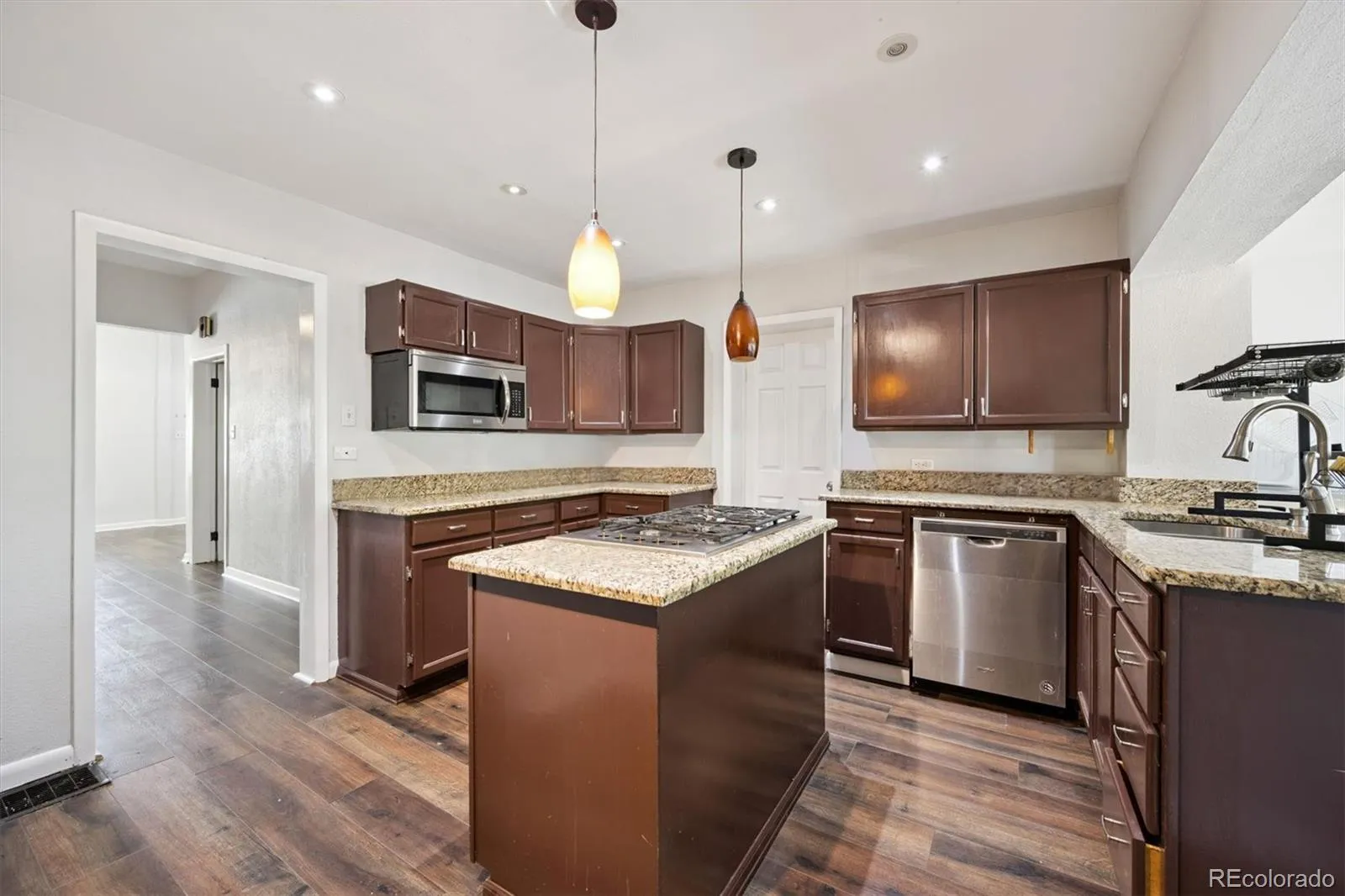 Welcome to this remodeled classic Victorian home located near the Sante Fe Art District. Maintained and remodeled over the years, this home features professional landscaping and mature trees. Inside, you’ll love the tall ceilings and open layout, featuring an old-world fire place in the living room. The kitchen offers granite counters and stainless steel appliances. There is also a bedroom on the main level: great for guests or a home office. Upstairs you’ll find 3 additional bedrooms, the primary lives large with spacious size and vaulted ceilings, plus a walk-in closet. All new carpet throughout. Out back enjoy a private backyard with a detached garage, and an additional space for off-street parking.