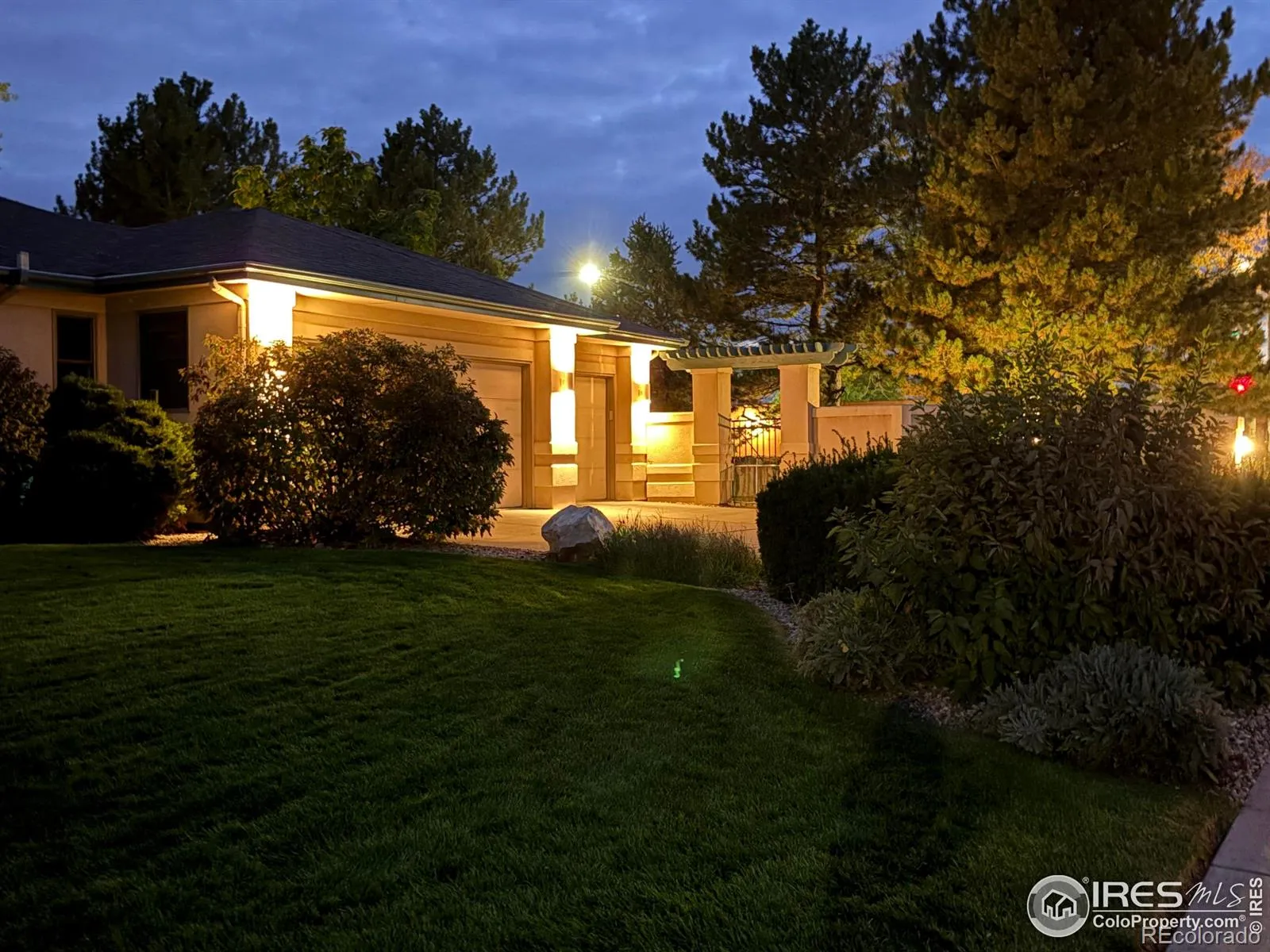 Experience luxury main floor living, with three bedrooms, an office w/ French doors, & laundry on one level. The home distinguishes itself with a modern flare, while at the same time exuding comfort and function. Located in the coveted Fairway West community (near The Olde Course golf course), the .31 acre lot will impress with a backyard that doubles as a wooded escape, ready for a meditation session, beautifully landscaped w/ a bubbling Zen pond, partially covered patio, built-in fire pit, and solid stucco privacy wall spanning the entire perimeter. The stucco exterior will draw you inside to an inviting entrance, living room w/ a large wall of windows & sliding doors leading to your backyard oasis, and a 2-sided fireplace. The other side of the fireplace leads you to the dining room & kitchen which also opens up to the backyard sanctuary with large windows and sliding doors. Winding down, you head to the extended primary bedroom to release your day in a lounge chair facing the oversized corner windows, opening yourself fully to the beauty of the backyard space. Once inside, you will absorb the awesome vibe and know this is your new home.