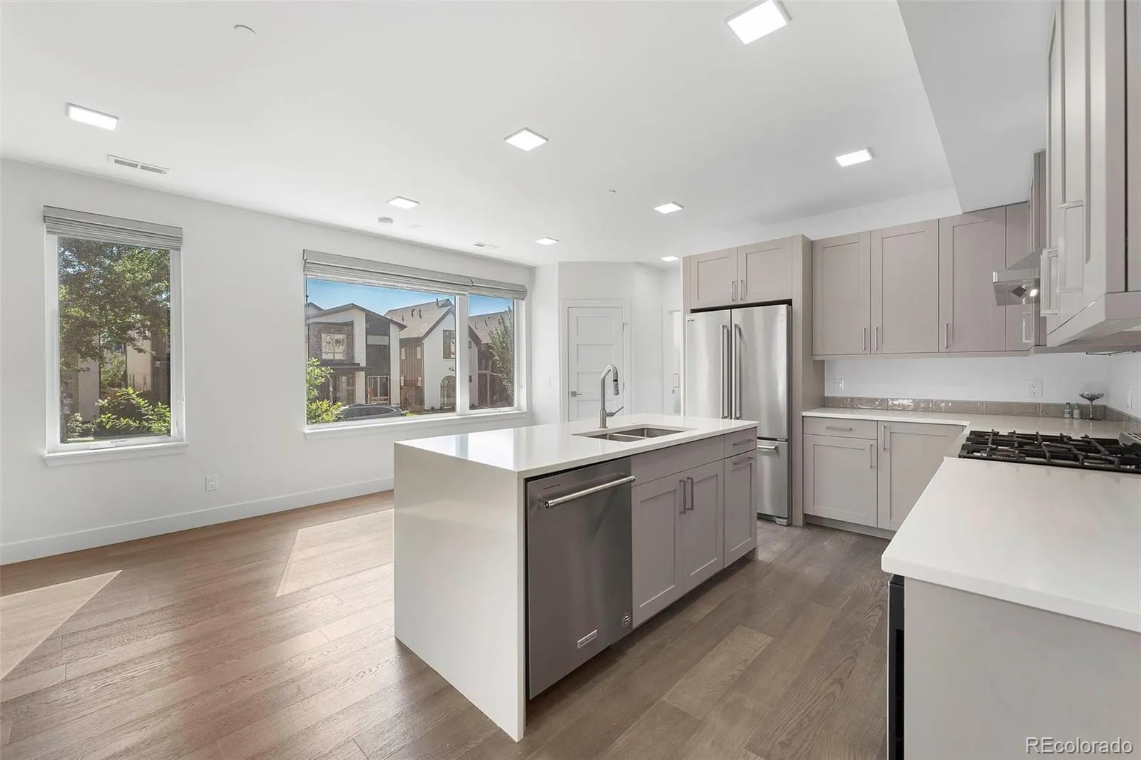 Inside, you’ll find 3 spacious bedrooms, four well-appointed bathrooms, and a flexible garden-level space that adapts to your lifestyle. The attached 2-car garage offers both convenience and security, while the expansive rooftop deck provides breathtaking views of the Denver skyline your own private retreat above the city. With a built-in gas line, it’s perfect for a grill or a cozy fire pit.