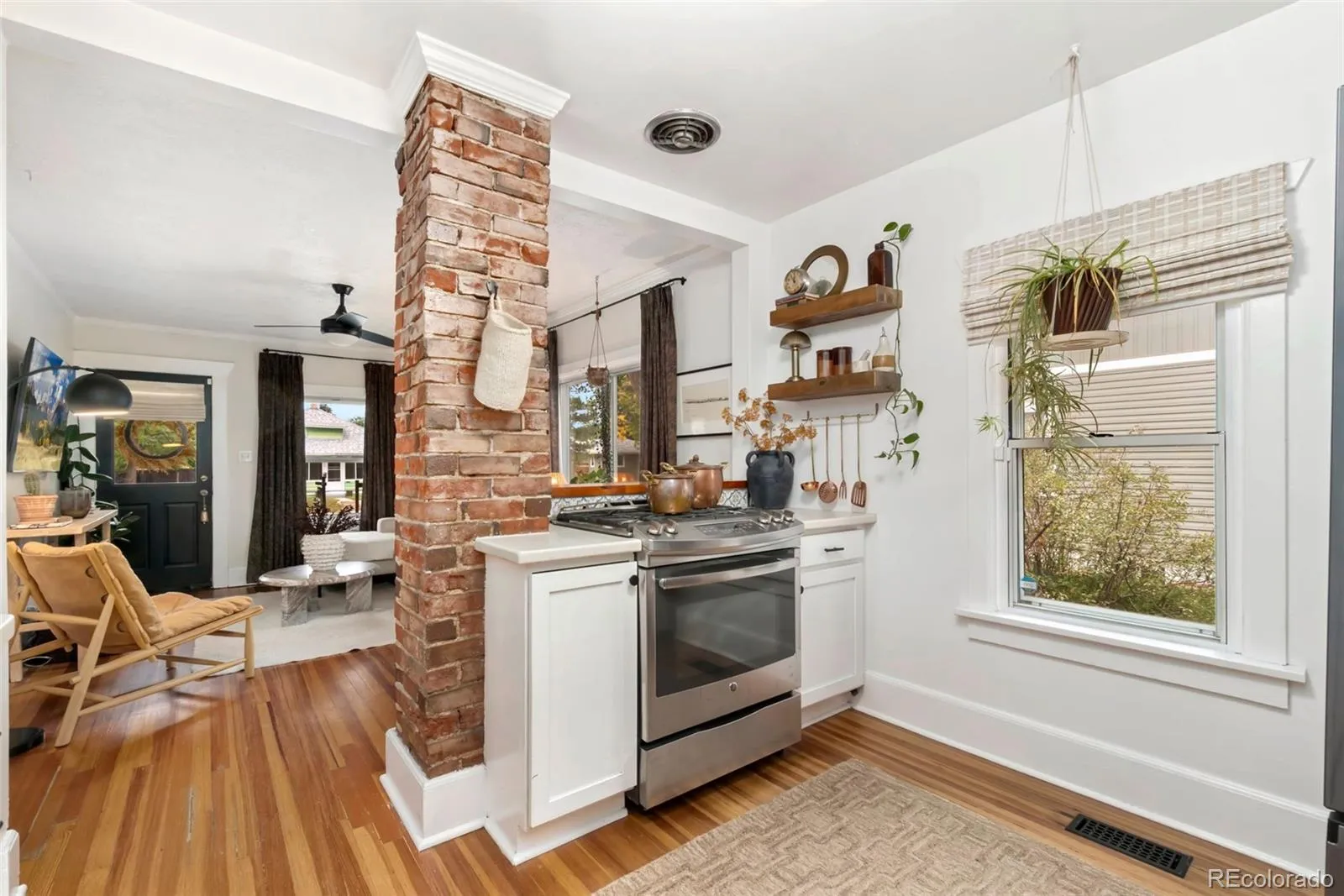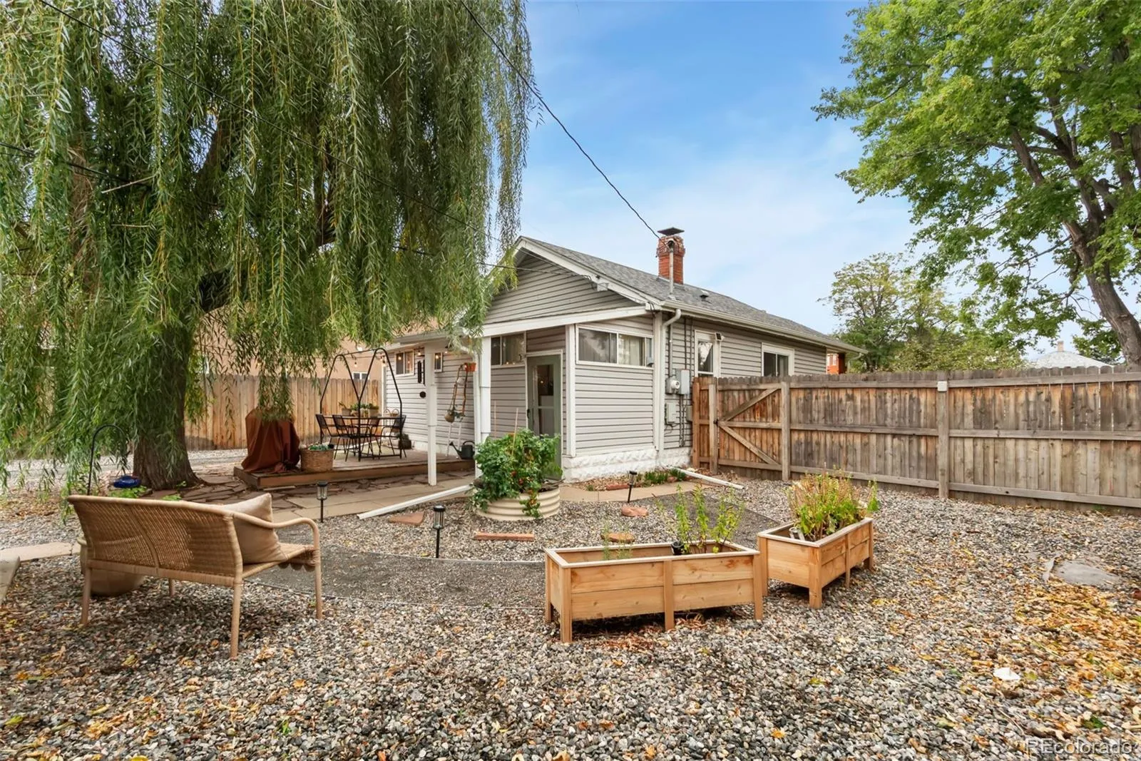 Welcome to this beautifully updated home in one of Denver’s most desirable neighborhoods! Located just blocks away from Regis University and all of the wonderful shopping and dining experiences that the highlands has to offer. Recent updates include a new furnace, air conditioner and hot water heater in 2022. New kitchen appliances and washer dryer in 2023. New roof, siding and gutters in 2017. Original hardwood floors welcome you as you step through the front door, leading to the open kitchen with exposed brick, stainless steel appliances and seating at the kitchen bar. You will love the expanded owners bedroom, with two large closets. The spacious remodeled bathroom features dual floating sinks and gorgeous tile work throughout. Laundry is conveniently located on the main level. The basement has room for loads of storage, or an extra office space if needed. Step outside to the large deck and beautiful flagstone patio underneath a shady willow tree that is absolutely lovely all summer long. The thoughtfully landscaped backyard is abundant with grapes, blackberries and strawberries, and ready for your spring planting to make a lush oasis for summer entertaining. An extra bonus is an amazing sunroom off of the back of the garage. Great extra space for watching some baseball or relaxing with your favorite book. This is the one you’ve been waiting for!