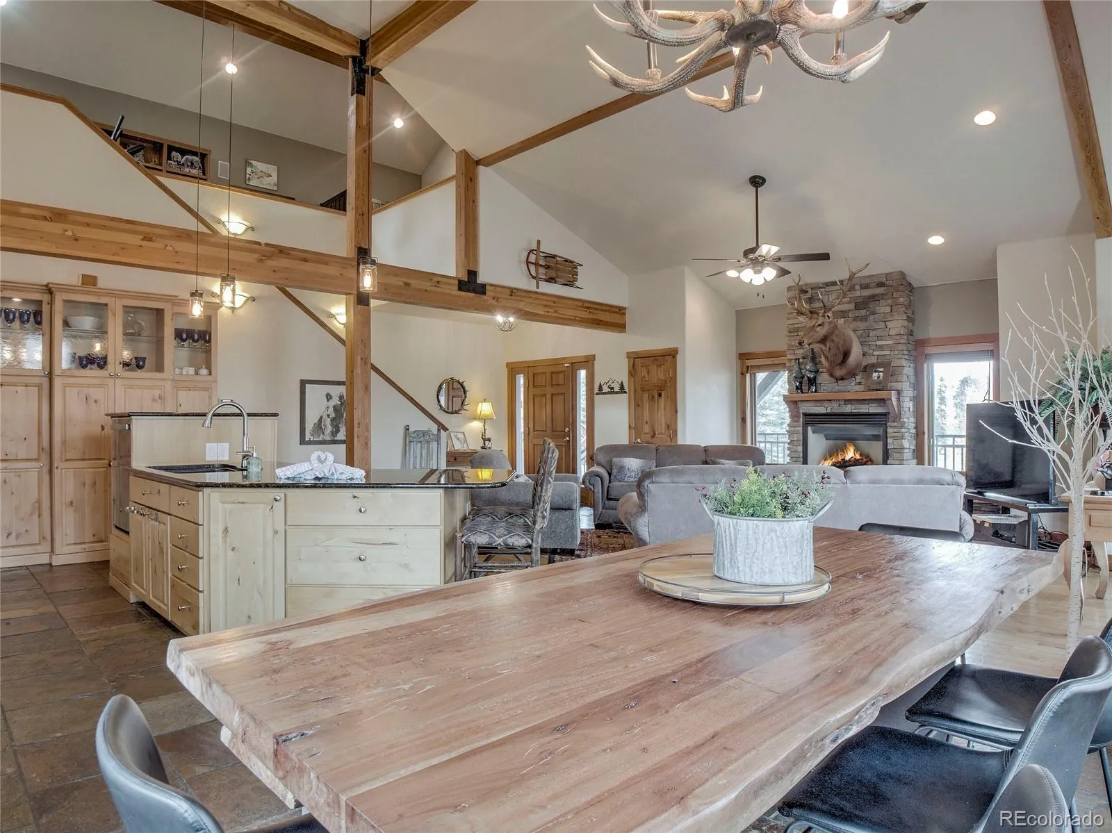 FABULOUS PRICE on this spacious mountain residence that sleeps a crowd! The ideal floor plan features a main-floor primary suite with fireplace, an open great room with vaulted ceilings, and an upper-level loft perfect for an office or extra sleeping space. The expansive lower level offers a pool table, two additional bedrooms, and a non-conforming bunk room—plenty of room for everyone. Enjoy three beautiful rock fireplaces and a kitchen with all-new appliances. Relax in the hot tub on the brand-new Trex deck, overlooking the peaceful water. A proven income producer, this home has generated over $65K in net rental income! Nearly every major component has been recently replaced or upgraded—new roof, hot water system, heating system, hot tub, Trex decking, exterior paint, renovated primary bath, new dishwasher, refrigerator, microwave, washer, and dryer. This home feels and operates like new—perfect for personal enjoyment or continued rental success. See attachment for full list of upgrades.