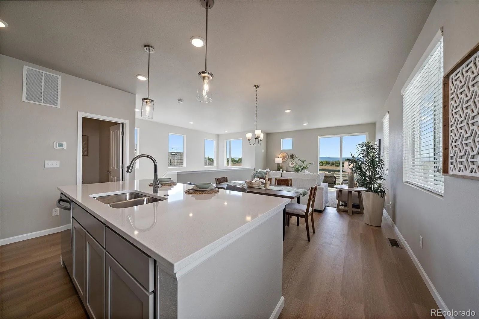 Welcome to your dream home! This 2024 built home comes with stunning mountain views and a bright open floorplan. Step inside to discover spacious living areas filled with natural light, perfect for entertaining or relaxing. This 3-bed, 3-bath home has everything you’re looking for and is move-in ready. Enjoy Colorado sunsets from the living room, kitchen, and large second-floor deck. Includes all kitchen appliances, washer, dryer, and window coverings. Features luxury vinyl plank flooring, carpeted bedrooms, quartz counters in kitchen and bath, and a private primary suite upstairs. An assumable 2.9% loan is also available to qualified buyers.