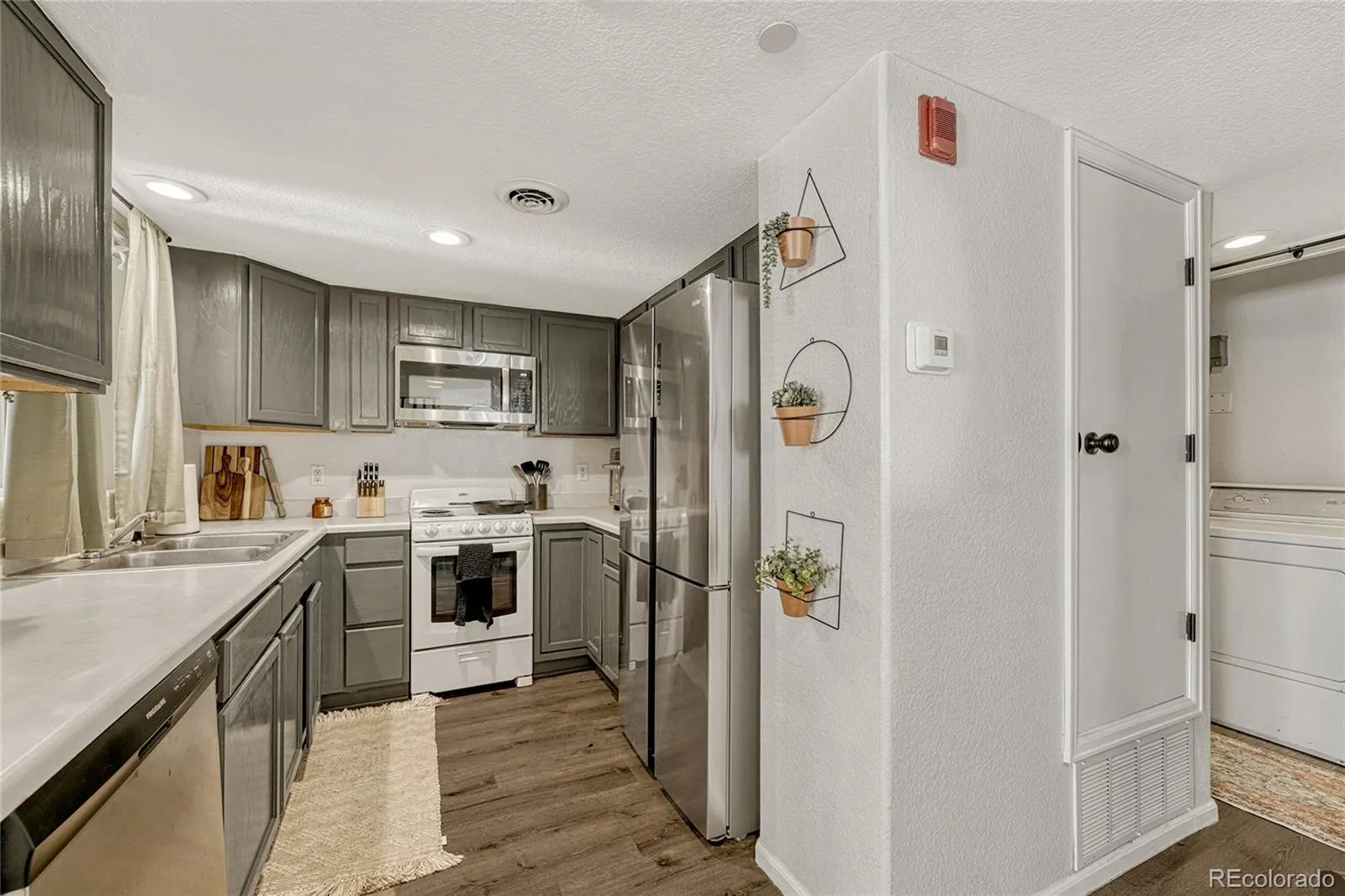 Welcome to your beautifully updated 2-bedroom, 2-bathroom condo in the heart of Aurora, Colorado! This bright and airy home features a comfortable living space bathed in natural light, complemented by beautiful finishes throughout. The inviting living room boasts vaulted ceilings and a cozy fireplace, perfect for Colorado’s cooler evenings. Step outside to enjoy not one, but two private deck areas—ideal for morning coffee or evening relaxation. The main floor also boasts a beautiful kitchen with newly painted cabinetry and plenty of counter space, making meal prep a joy. With a bedroom, full bathroom and entrance on each level, there is privacy for all. For added convenience, a clothes washer and dryer are located in-unit on the main level.