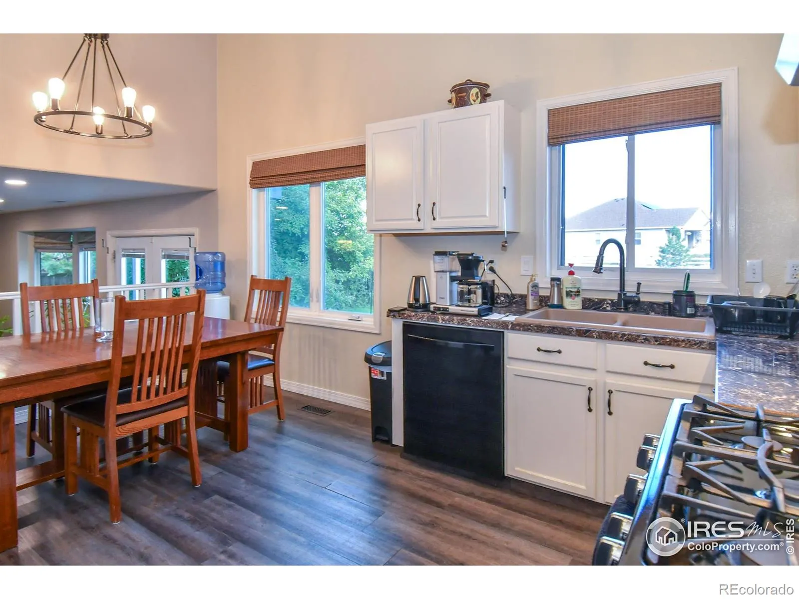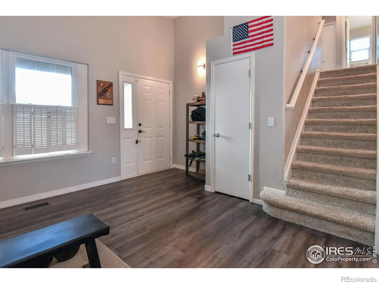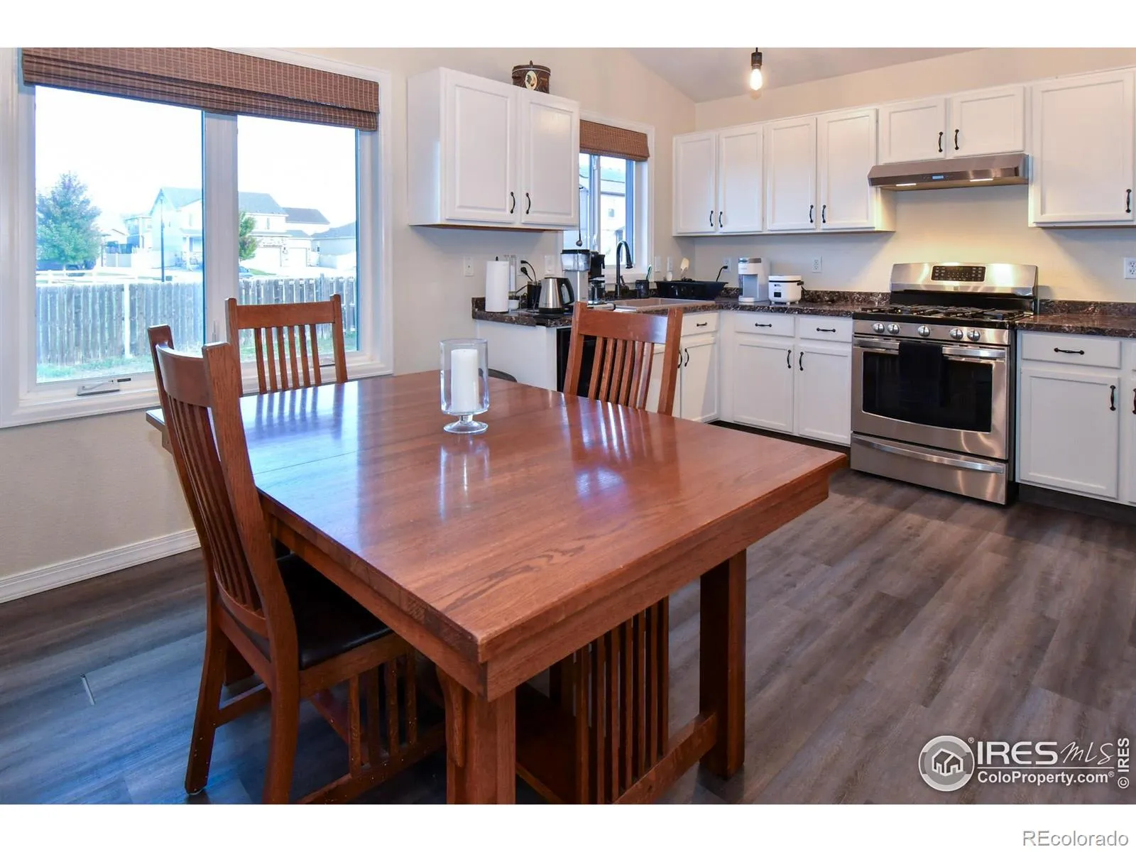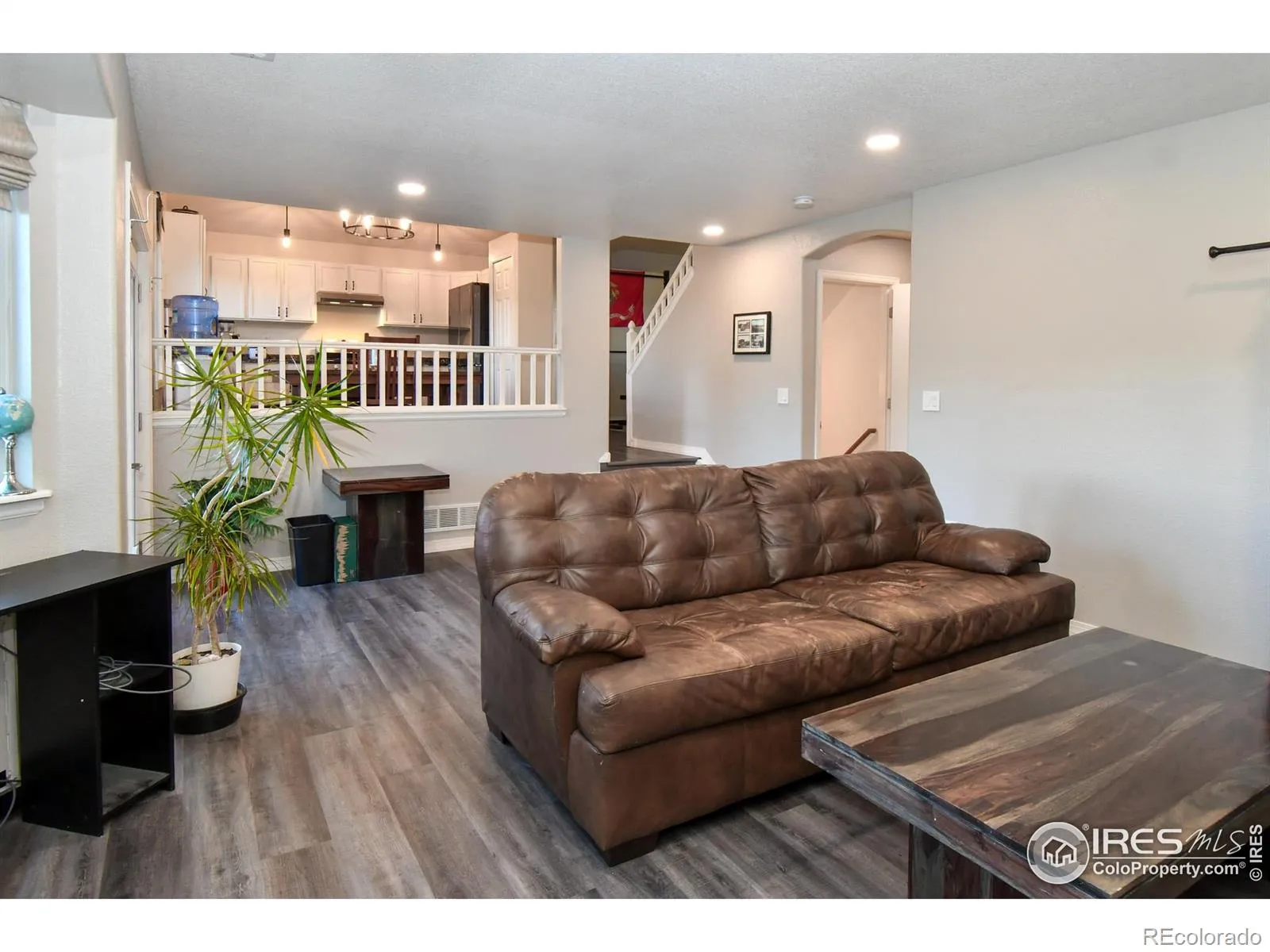 NO HOA! Well maintained home with many upgrades. Luxury vinyl plank flooring on the main level. Custom light fixtures throughout. Tall vaulted ceilings on main level. No HOA! Low Weld County taxes. Greenbelt behind the back fenced yard. Huge beautiful trees give shade and beauty. Large corner lot with large front and back yard. New roof with upgraded shingles installed in 2023. Gas range in kitchen. Unfinished basement. Central AC. 2 car attached garage has metal tool boxes and nice wooden shelves throughout. Brand new grocery store and shopping area recently built close by. Beautiful lawn and flower gardens in the front and back.