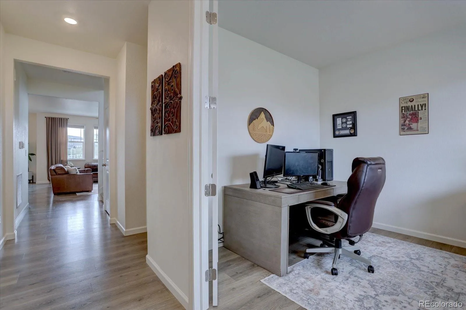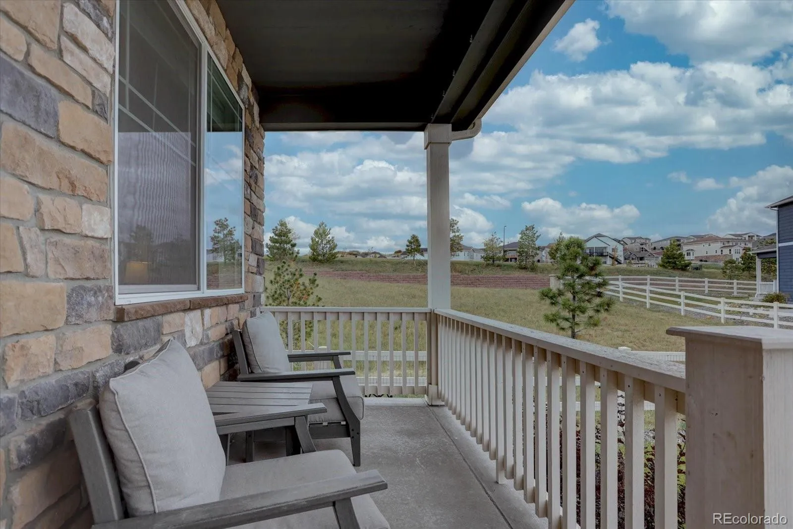 Positioned on a quiet cul-de-sac in Crystal Valley, this home delivers a coveted greenbelt setting, generous natural light, and a floor plan built for modern functionality. The main level thoughtfully unites the living room, dining area, and a sleek kitchen, while a main-floor office supports focused work. Outdoor spaces include a covered front porch and a rear patio oriented to morning light and open views. The upper level offers a multi-use loft, three well-sized secondary bedrooms, and a private primary suite with an en suite bath and walk-in closet. The backyard has been newly finished with a concrete pad and professional landscaping. Enjoy walkable access to the neighborhood rec center with a pool, fitness center, and playground, as well as proximity to local parks, trails, and Castle Rock amenities.