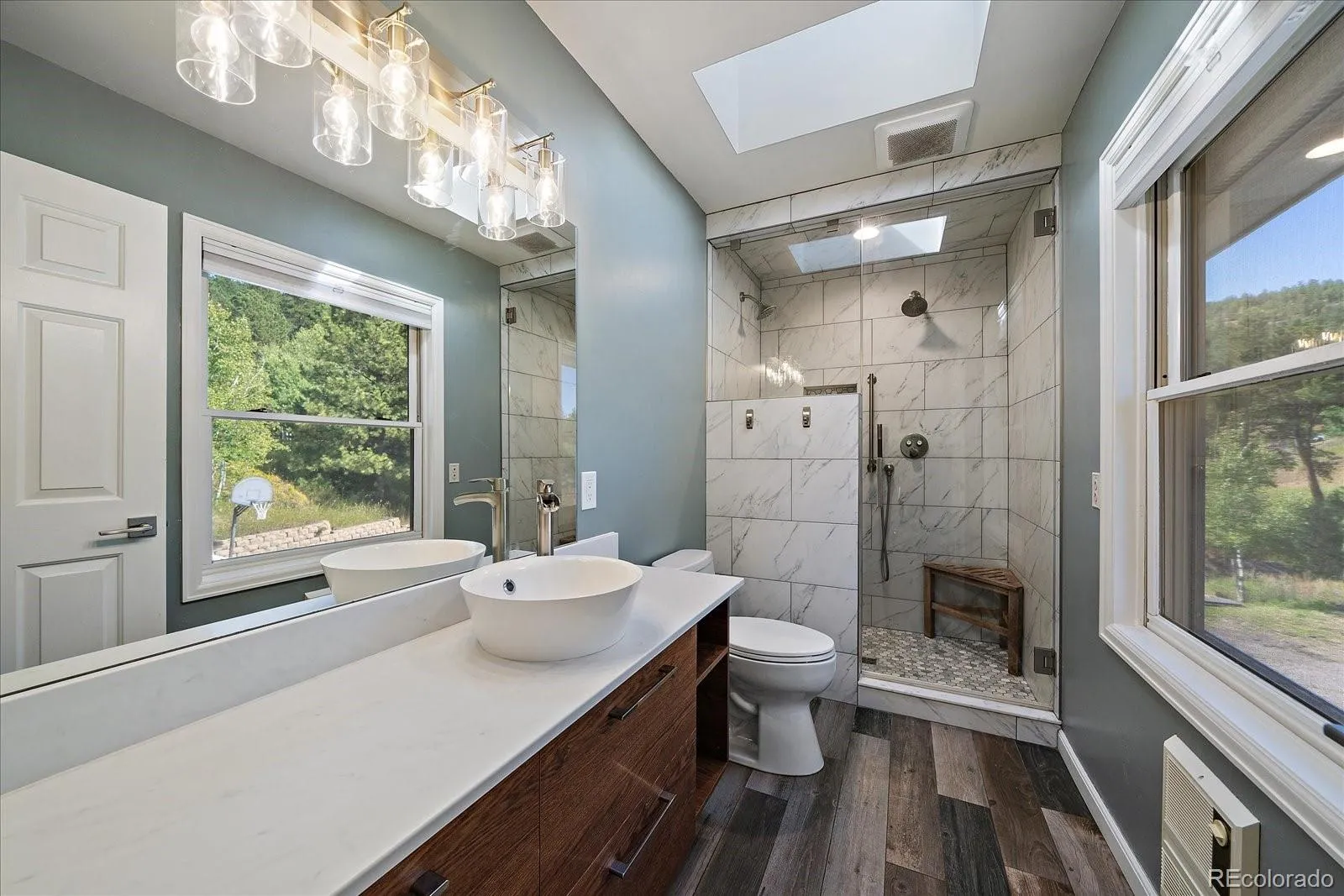 Set on over 15 usable acres with beautiful views across a mountain valley, this updated home offers a rare blend of privacy, convenience, and functional land use. Located just minutes from US Hwy 285 and downtown Conifer, the property consists of two legal parcels and is well-equipped for horses, hobby farming, or simply enjoying Colorado’s mountain lifestyle. Equestrian and agricultural features include a fenced outdoor arena, three-stall loafing shed, chicken coop, tack/feed storage, and smooth wire fencing safe for horses. The remodeled home features a welcoming covered front porch, multi-level rear deck, and a 6-foot-deep Endless Pool—perfect for relaxation or exercise. Southern exposure provides passive solar benefits and extends the grazing season for your pasture. Additional highlights include a large paved parking pad, oversized garage, multiple storage sheds, and a 10,000W generator for added peace of mind. Beaver Ranch Open Space Park is just 500 yards from your driveway, with easy access to local amenities—grocery stores and restaurants are five minutes away, downtown Denver is a 45-minute drive, and DIA is just an hour. Call today for a showing! ** For full Marketing Platform with photos, videos, floorplans and more, go to: https://qrco.de/bgMRDE **
