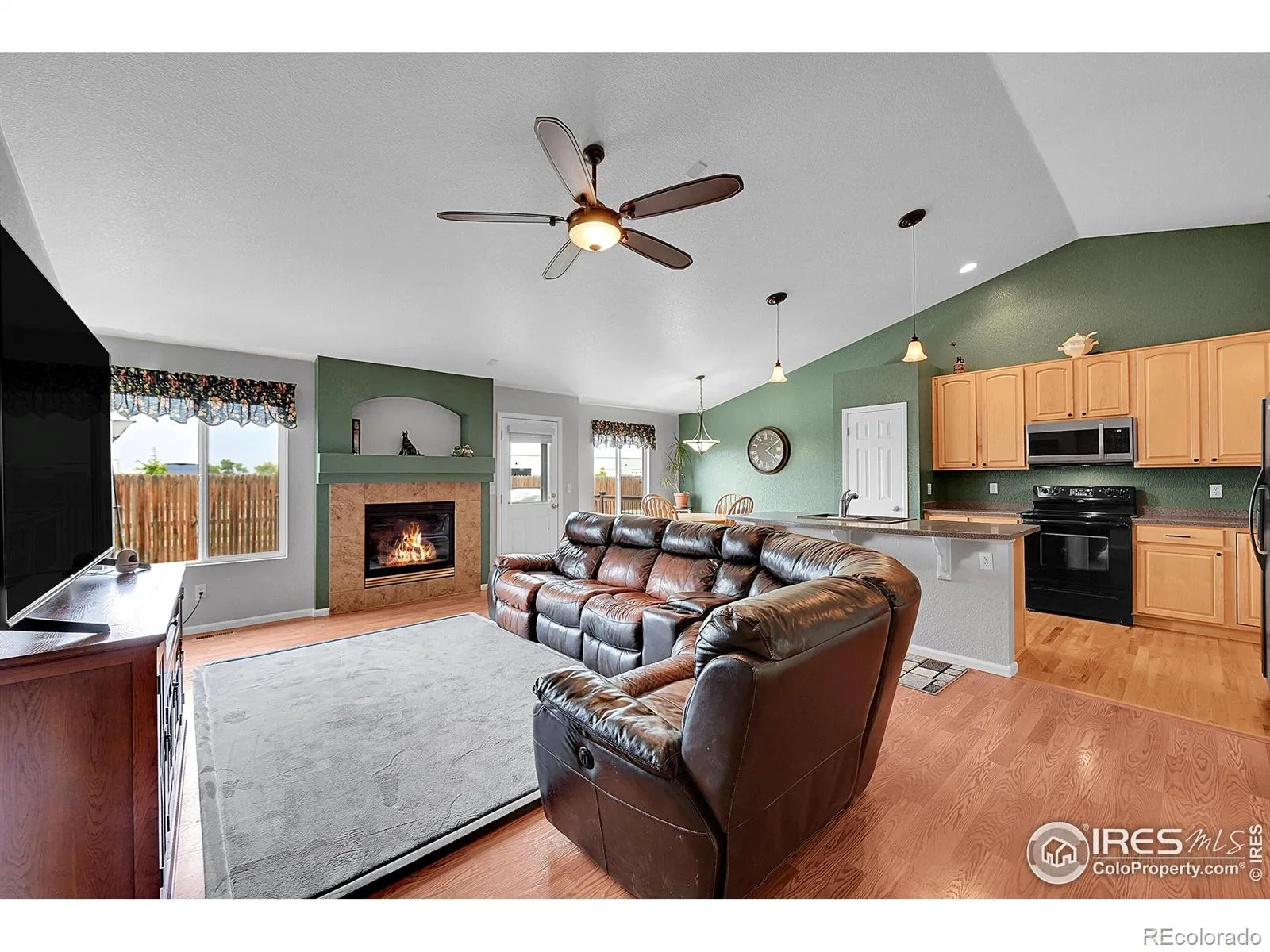 Welcome Home to Serenity and Style! Listed below its recently appraised value, this open and airy ranch offers the perfect blend of comfort, quality, and breathtaking mountain views. So thoughtfully upgraded, this home features beautiful hardwood floors throughout the entry and kitchen, Corian countertops, upgraded cabinetry, and stainless steel appliances including a smooth-top range, microwave, dishwasher, and refrigerator.The great room showcases dramatic vaulted ceilings, a cozy fireplace, and built-in surround sound wiring-ideal for entertaining or relaxing evenings at home. The oversized primary suite is a peaceful retreat with a luxurious full bath and a huge walk-in closet. Enjoy the convenience of main-level living with laundry on the main floor for easy access.Step outside to your gorgeous composite deck with custom railings, where you can unwind and take in panoramic views of Long’s Peak and the surrounding greenbelt. The large unfinished basement offers endless possibilities for expansion, featuring two sump pumps and a rough-in for a future third bathroom. With a newer roof for added peace of mind, this home combines modern upgrades with the tranquility of Colorado living.Come experience the best of ranch-style living-where every detail has been designed for comfort, beauty, and relaxation. Located within walking distance to parks, trails, schools, churches, shopping, restaurants and more and conveniently located approximately 30 minutes from Denver, Boulder and Fort Collins.