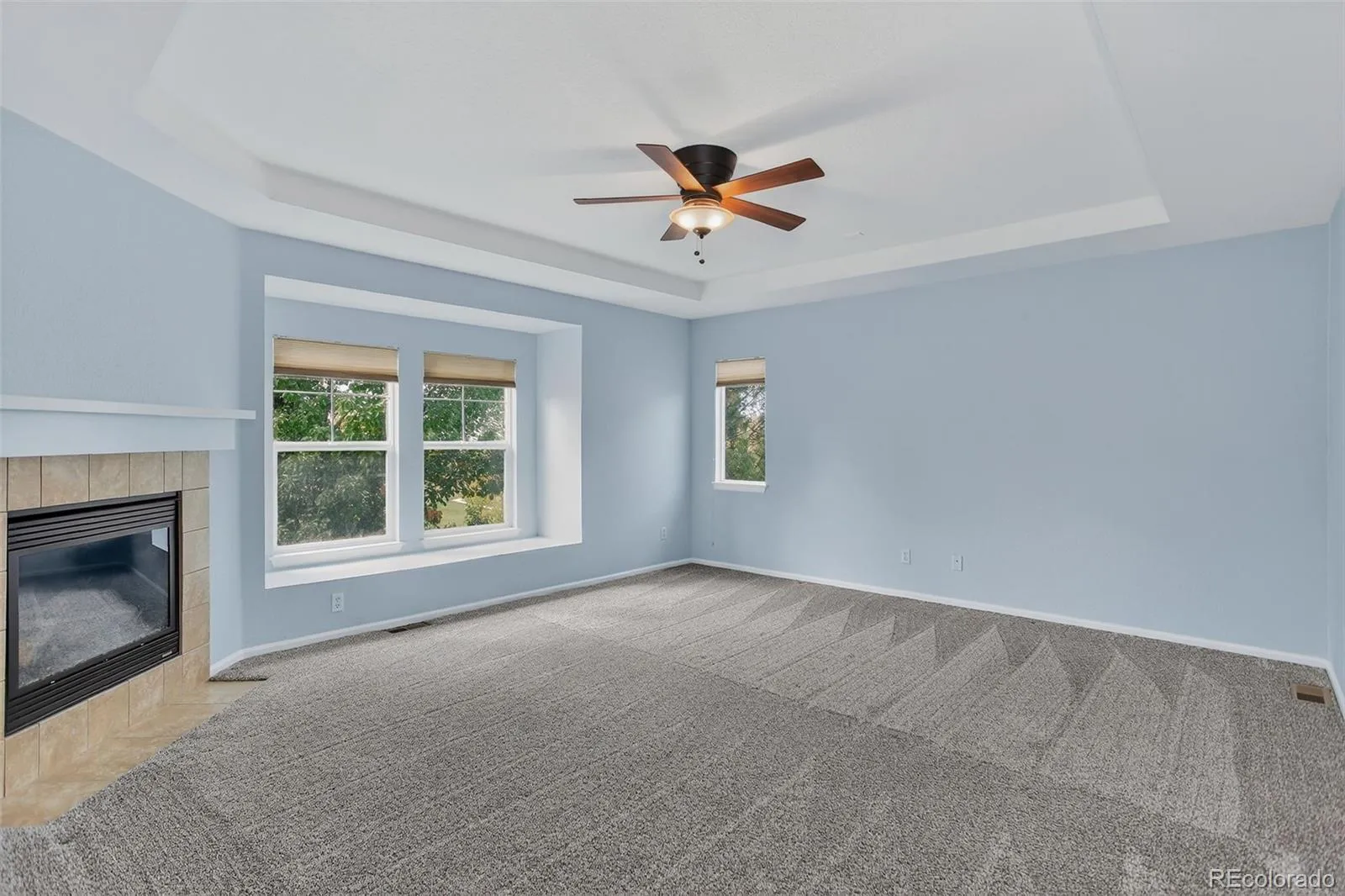 You will love this home! Enjoy the curb appeal of this beautiful home, looking at the house and not the front of a garage! Mature landscaping, privacy and shade, lead you to the peaceful covered front porch. Through the front door be wowed by a beautiful formal dining area that could easily transform into a den or study. Across the foyer enjoy a large flex space perfect for an office or play area. The kitchen and adjoining family area are something to behold. Let the warm, bright, flowing, expanse of this space sink in as you check out the custom granite counters and back splash, stainless appliances, huge kitchen island, the massive amount of cabinet and counter space, and the eat in nook area. The kitchen flows into grand family area with a warm fireplace, huge windows that look into the back patio/yard, and access to the covered ranch style front porch. Retreat to your oasis at home in a gorgeous primary bedroom retreat with another fireplace, coved ceilings, an large ensuite 5 piece bath and his and hers walk in closet. The upstairs bedrooms are large, large, with tons of natural light and room to grow. A second large upstairs bath offers two sinks and a separate shower/toilet area. Wait! there is more, the partially finished basement offers a massive equity builder option, the large garage offers tons of storage space with high ceilings and paved alley access, the large back yard is fully fenced, and is zero maintenance artificial turf. This home is clean! well maintained, ready to go and offers custom paint, lighting, and flooring throughout. All of this with a serene setting, featuring a park across the street, and easy access to a rec center and pool, recreation, schools, restaurants, shopping, entertainment and commerce. Add this property to your showing list!