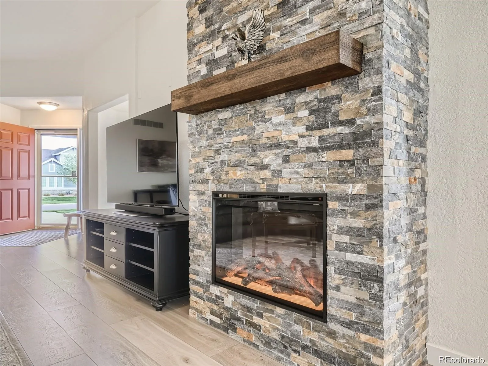 This updated 3-bedroom, 3 bath duplex is located in the highly sought-after Heritage Eagle Bend gated 45+ active adult community. The open floor to ceiling Ledger stone surrounding newer electric fireplace, high density luxury vinyl planking in the entryway, main room, kitchen, dining areas, laundry room and bathrooms, along with 4″ baseboards and newer paint throughout. The kitchen has newer stainless-steel appliances including a newer gas oven/stove or electric if needed. The primary bedroom includes a private bath with two sinks and walk-in closet There is also a second bedroom/office, full bath and laundry room. The main level provides an extended rear deck of maintenance free Trex material and includes a gas line for all your grilling needs (grill included). Upgraded HVAC thermostat. The lower level features a newly added third bedroom, full bath, great room storage and a walkout to a lower deck. Residents can enjoy a low maintenance lifestyle with community-maintained landscaping, lawn service and exterior building paint and roof upkeep. The Beautiful 30,000 square foot clubhouse provides many meeting rooms, the Eagles Nest restaurant/bar, welcome desk, workout facility, member clubs, billiards and indoor pool with sauna as well as a hot tub. The outdoor actives include bocce, outdoor pool, pickleball, tennis and golf. The central location provides easy access to E-470 to Denver International Airport, mountains, and I-25 to points north and south.