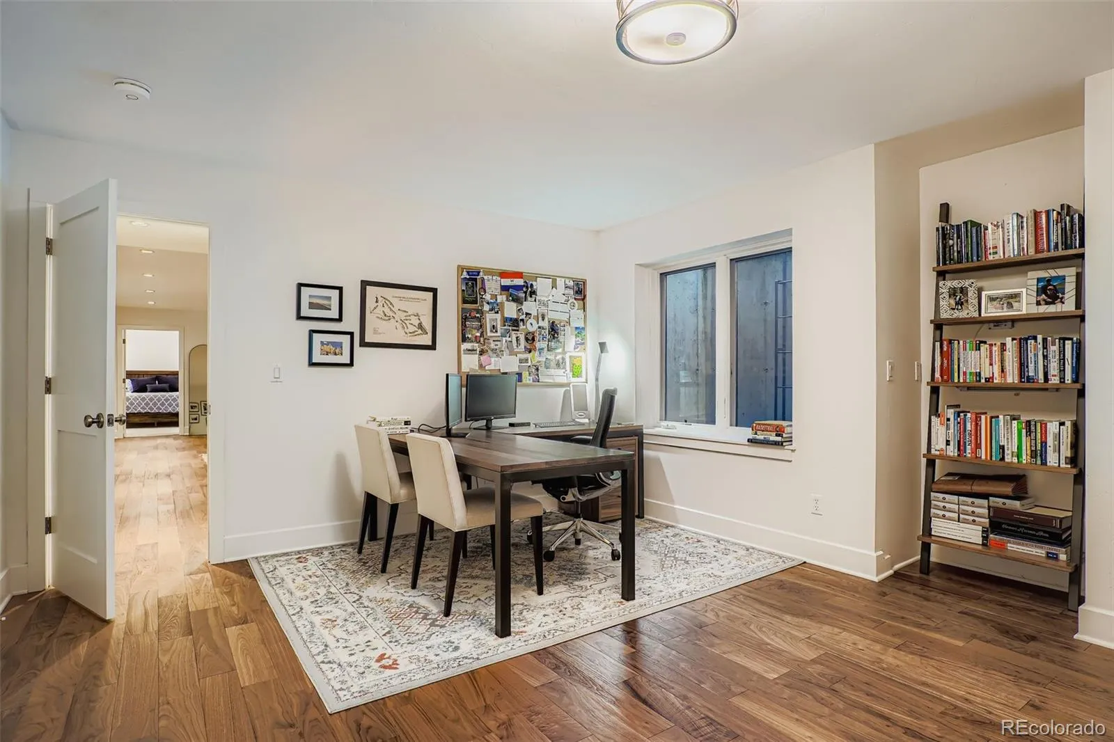 Rare modern ranch home built in 2009 in Wash Park West. This turn-key lock & leave home is a great alternative to Cherry Creek North! The home features an open floor plan with soaring wooden ceilings creating a bright airy living space, perfect for entertaining! The living room is anchored by a stately cast stone fireplace and is surrounded by windows. The kitchen offers room for a formal dining table and casual seating at the large island. It includes Caesarstone counters, Viking oven & Microwave, and a new Kitchen Aid dishwasher (2024). The kitchen opens to your cozy patio with a new tapped gas line for your outdoor grill. Drip irrigation allows easy care for planters and pots. The master suite is spacious with a walk-in closet fitted with ELFA organizers and racks. The master bedroom is surrounded by windows yet offers blackout shades for the most delicate sleeper! The elegant master bath is finished with contemporary tile and wood finishes, a 1/2 guest bath completes the main level. Hardwoods are on the main and carpet has been laid in the master (but the hardwoods remain underneath). The entire home has been fitted with motorized blinds that adjust for semi-transparency to full darkness for privacy. The lower level offers a huge family room with walnut floors, legal egress in family room with recessed lighting, one additional bedroom has legal egress with an adjacent full bath. A second non conforming bedroom is a great guest room, in-home gym or home office. The home features solar panels and a Tesla charging battery as well. All within blocks to over 10+ fun restaurants and easy access to Washington Park, South Broadway, and Cherry Creek North!
