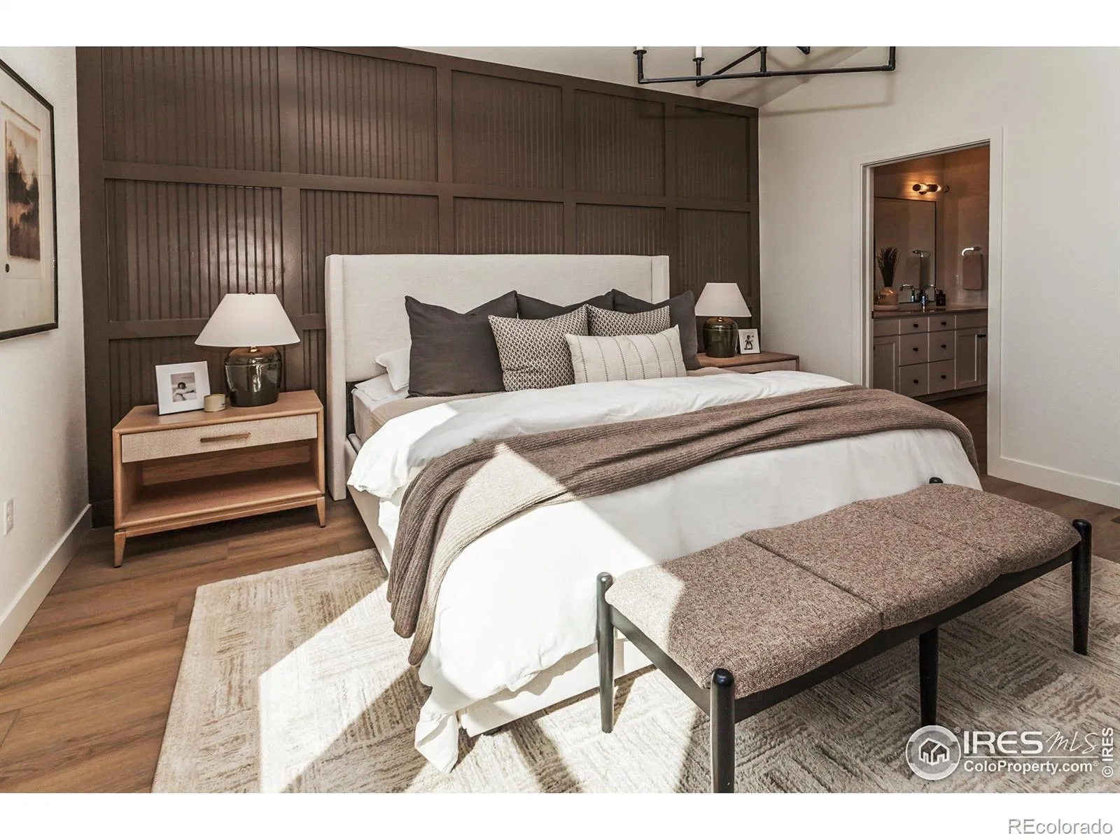 The Christie is a thoughtfully designed ranch-style home on a corner lot. It combines open-concept living with everyday convenience w/ a finished basement included. Step inside through the welcoming foyer and into a bright, spacious layout. At the heart of the home, the kitchen, dining, and living areas flow seamlessly together. Kitchen has s.s. induction electric cooktop, hood, microwave, double wall oven and eucalyptus painted maple cabinetry & quartz countertops. Vinyl plank flooring in kitchen, dining, baths, laundry, and living room. A sliding door leads to the covered patio. The private primary suite w/ vaulted ceiling that sits at the back of the home and features a large walk-in closet. At the front of the home, a secondary bedroom with an adjacent bath. Laundry room just off the 3-car garage, along with extra pantry and storage space throughout. Garage door keypad and service door. Finished basement with wet bar (mini fridge included), two additional bedrooms, a bath, and a spacious recreation room. Central a/c. Passive radon system. $125 monthly metro district o & m fee. $415 annual non potable fee to be paid to metro district. Future community plans for a pool, parks and trails. PHOTOS FROM A PREVIOUSLY BUILT HOME AND THEREFORE MAY DEPICT DIFFERENT FINISHES. ASK ABOUT CURRENT LENDER OR CASH INCENTIVES. Estimated March/April completion