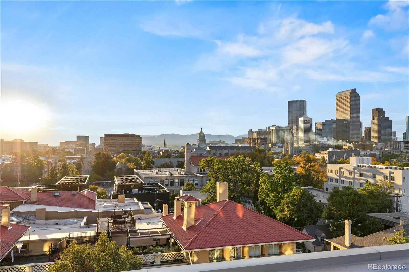Welcome to modern Capitol Hill! This spacious 2-bedroom, 2-bathroom condominium offers urban living combined with luxury, comfort, and privacy. Step inside to find beautiful light hardwood floors and an open-concept layout that seamlessly connects the kitchen, dining, and living spaces. The well-appointed kitchen, designed with ample quartz countertops, stainless steel appliances, and an induction stovetop, provides the perfect setup for everyday cooking and entertaining. A sizable dining area sits beside large glass sliding doors that lead to the private covered patio lined with elevated garden beds. Enjoy the spacious living room, filled with abundant natural light, designed for comfort and relaxation. (Smart Nest thermostat included). The primary bedroom features a generous walk-through closet and a sleek standing shower, while the secondary bedroom is ideal for a home office or guest space. A walk-in utility room offers additional storage and includes a washer and dryer. Head up to the sixth-floor rooftop to experience Denver’s most stunning views of the city skyline and the Rocky Mountains—an unbeatable place to lounge, grill, or let your four-legged friend enjoy the dog run. This home also includes a RARE reserved parking space in the secure community garage, along with a large storage unit and a pet washing station. Indulge in one of Denver’s most historic and vibrant communities, lined with restaurants, shops, and more. Just a few blocks East find Denver’s beloved Cheesman Park, while a few blocks West sits our State Capitol. Don’t miss this opportunity to experience modern, exclusive living in Denver’s first established neighborhood!