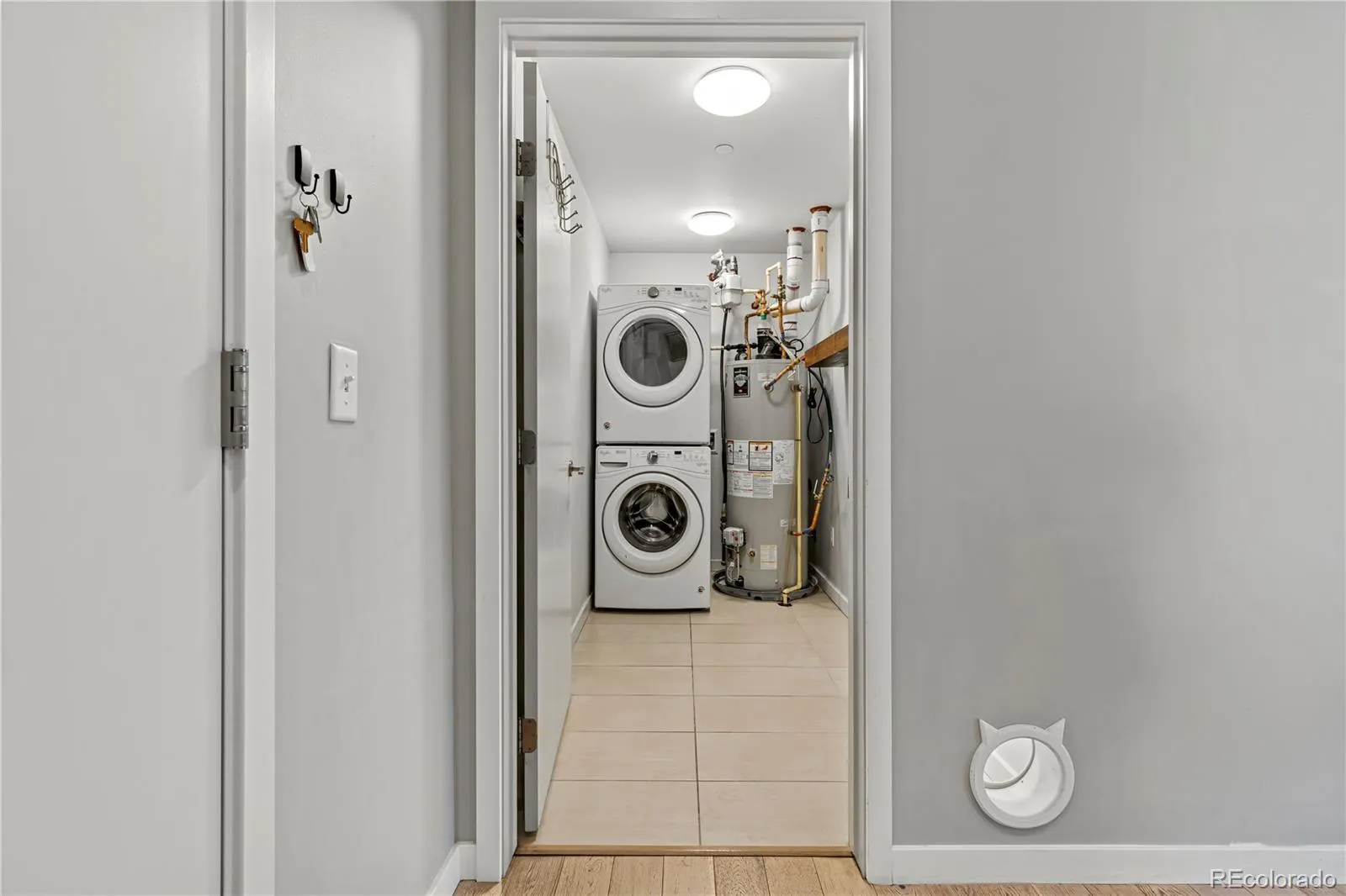 Welcome to modern Capitol Hill! This spacious 2-bedroom, 2-bathroom condominium offers urban living combined with luxury, comfort, and privacy. Step inside to find beautiful light hardwood floors and an open-concept layout that seamlessly connects the kitchen, dining, and living spaces. The well-appointed kitchen, designed with ample quartz countertops, stainless steel appliances, and an induction stovetop, provides the perfect setup for everyday cooking and entertaining. A sizable dining area sits beside large glass sliding doors that lead to the private covered patio lined with elevated garden beds. Enjoy the spacious living room, filled with abundant natural light, designed for comfort and relaxation. (Smart Nest thermostat included). The primary bedroom features a generous walk-through closet and a sleek standing shower, while the secondary bedroom is ideal for a home office or guest space. A walk-in utility room offers additional storage and includes a washer and dryer. Head up to the sixth-floor rooftop to experience Denver’s most stunning views of the city skyline and the Rocky Mountains—an unbeatable place to lounge, grill, or let your four-legged friend enjoy the dog run. This home also includes a RARE reserved parking space in the secure community garage, along with a large storage unit and a pet washing station. Indulge in one of Denver’s most historic and vibrant communities, lined with restaurants, shops, and more. Just a few blocks East find Denver’s beloved Cheesman Park, while a few blocks West sits our State Capitol. Don’t miss this opportunity to experience modern, exclusive living in Denver’s first established neighborhood!
