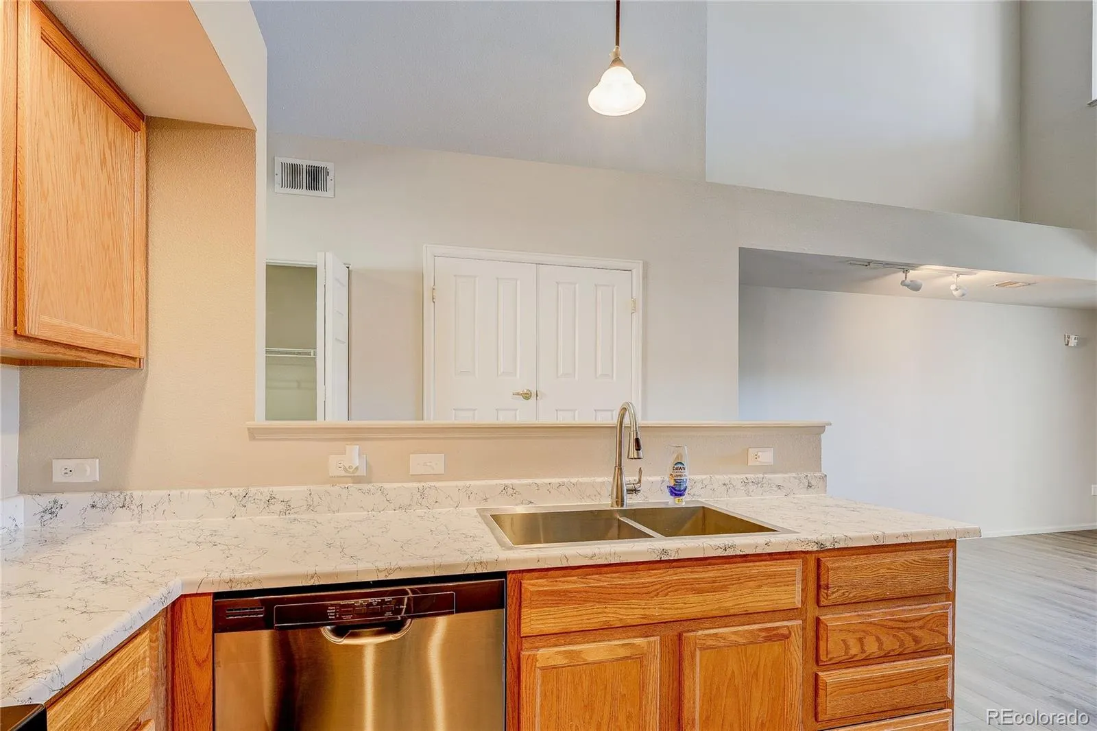 This Turn Key Ready Remodeled Condo lives like a 2 Story Townhouse! Amazing opportunity for owner occupants or rental investors! Come check out this highly sought after Rock Ridge community! Well Kept, Modern buildings with beautiful community pool and misc. open spaces! You will love to call this place home! Oversized 1 car attached garage and additional office street community parking! Small covered front porch area, gives a place similar to an individual balcony. Sit and enjoy a coffee and fresh air! Step inside to find beautiful contemporary finishes and a very inviting vibe to this home! Main floor features a large kitchen, ample living room with a cozy gas fireplace for those cold winters and a large main floor bedroom and full bath! In unit washer and dryer are included! You will absolutely love heading up to your second story area where you will find towering ceiling and a massive loft that can be used as a primary suite or additional living space, studio/office space, exercise space, the possibilities are endless! Updates include newer flooring, new appliances, new carpet, new paint and modern resurfaced kitchen and bath countertops! This home lives large and gives you an open feel with plenty of natural light coming in! This Aurora location is easily accessible to parks, trails, shopping, dinning, E-470, 225, I-70, 6th, Aurora Mall and Town center! Buckley, Fitzsimmons, Children’s, VA Hospital, New Colfax developments! The list goes on and on! Don’t wait to come check this fantastic home and beautiful community!