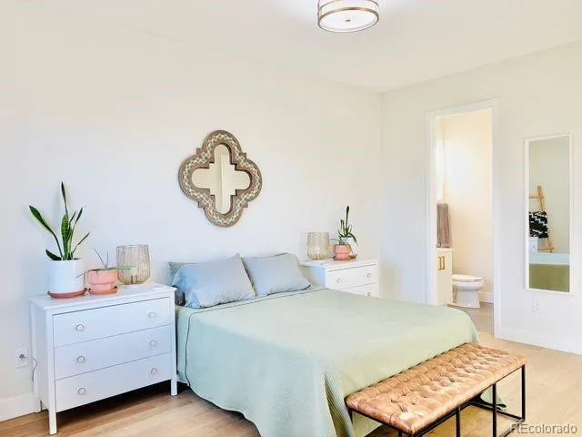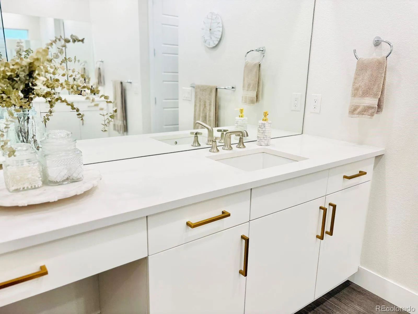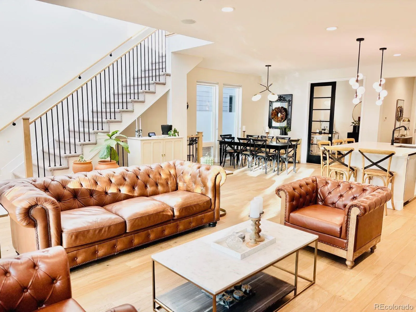 This stunning Infinity home has incredible mountain and city rooftop patio views. It features four different outdoor areas to enjoy the beautiful Colorado weather. Inside you will find vaulted ceilings with an open floor plan. The kitchen has quartz countertops, white modern cabinetry and high-end Bosch appliances. A spacious office and powder bath round out the main floor. The back patio is a perfect place to dine el fresco and grill up your favorite meals. The second floor features an amazing primary suite with its own private patio. This private oasis features two closets, an oversized shower, sauna and separate vanities with plenty of cabinetry for storage. There are two spacious additional bedrooms that each have their own private bath. The second floor also features a large laundry room and an exercise or tv nook. The rooftop features a pergola, privacy screens and amazing views. It’s a great place to host fourth of July fireworks. You will have a front seat to the best show in Denver. The basement is unfinished waiting for you to put your finishing touches on it. This home’s interior has brand new white oak floors and carpet on the stairs. It has also has been freshly painted white throughout. The home’s exterior features xeriscaping with planters for a maintenance free lifestyle.