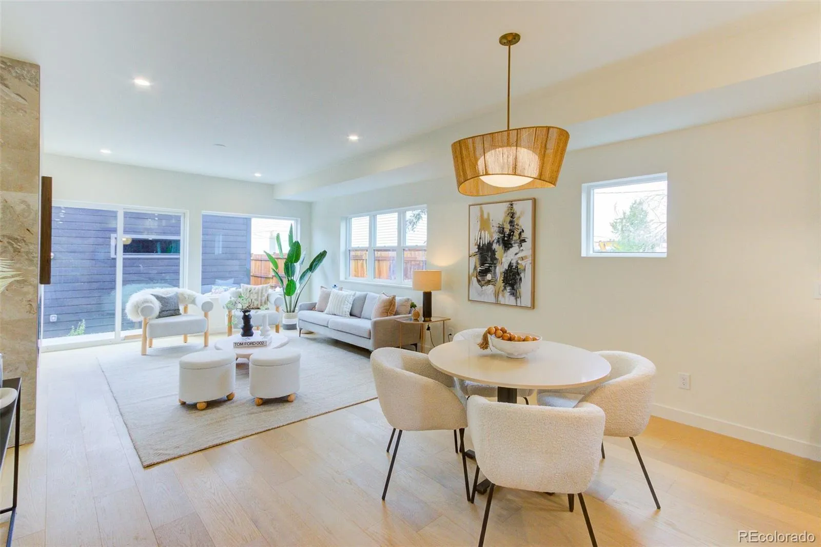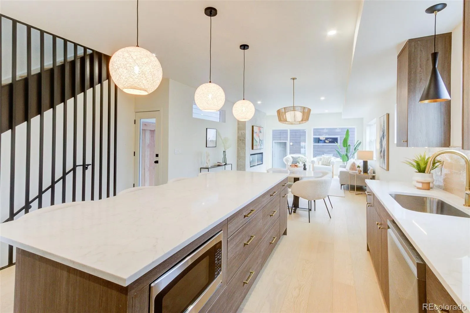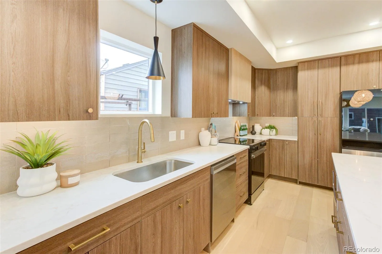 Discover the coolest townhome in SoBo! This brand new, modern build is unlike any other in the neighborhood. Situated on a quiet fully landscaped corner lot, it offers unobstructed mountain views from the expansive roof-top deck! It is designed to live like a single family with only a partial shared wall in the front of the house while the back is completely separate from the neighboring unit. Soaring nine foot ceilings on both the main and basement floors and a spacious open floor plan greet you as you walk in to the formal entry. The chef’s kitchen features Gorgeous upgraded custom cabinetry, new appliance suite, stunning pendant light fixtures, quartz countertops and a huge island with breakfast bar make it ideal for entertaining. Wide plank engineered hardwood flooring, designer touches thruout and striking black steel railing make this property a sleek standout! The second floor master suite has a spacious walk-in closet and stunning five piece spa-inspired designer bath with large soaking tub and upgraded fixtures. There is a second ensuite bedroom and full bath perfect for visiting guests. The third floor can be a bedroom or party room which steps out on to the massive deck with unobstructed views of the front range! The lovely full bath has radiant floor heating and luxury finishes. The large basement has a huge party room with wet bar and custom shelving along with new luxurious carpeting. The fourth bedroom is spacious with egress window and another designer full bath. Energy efficiency is ensured with a 2 zone HVAC system and dedicated mini-split for the third floor. The oversized two car garage comes with an EV charging station. Enjoy worry free living with low maintenace landscaping and full sprinkler system! Walk to all your favorite clubs, pubs and restaurants on Broadway. Just minutes to downtown and close to the mountains!