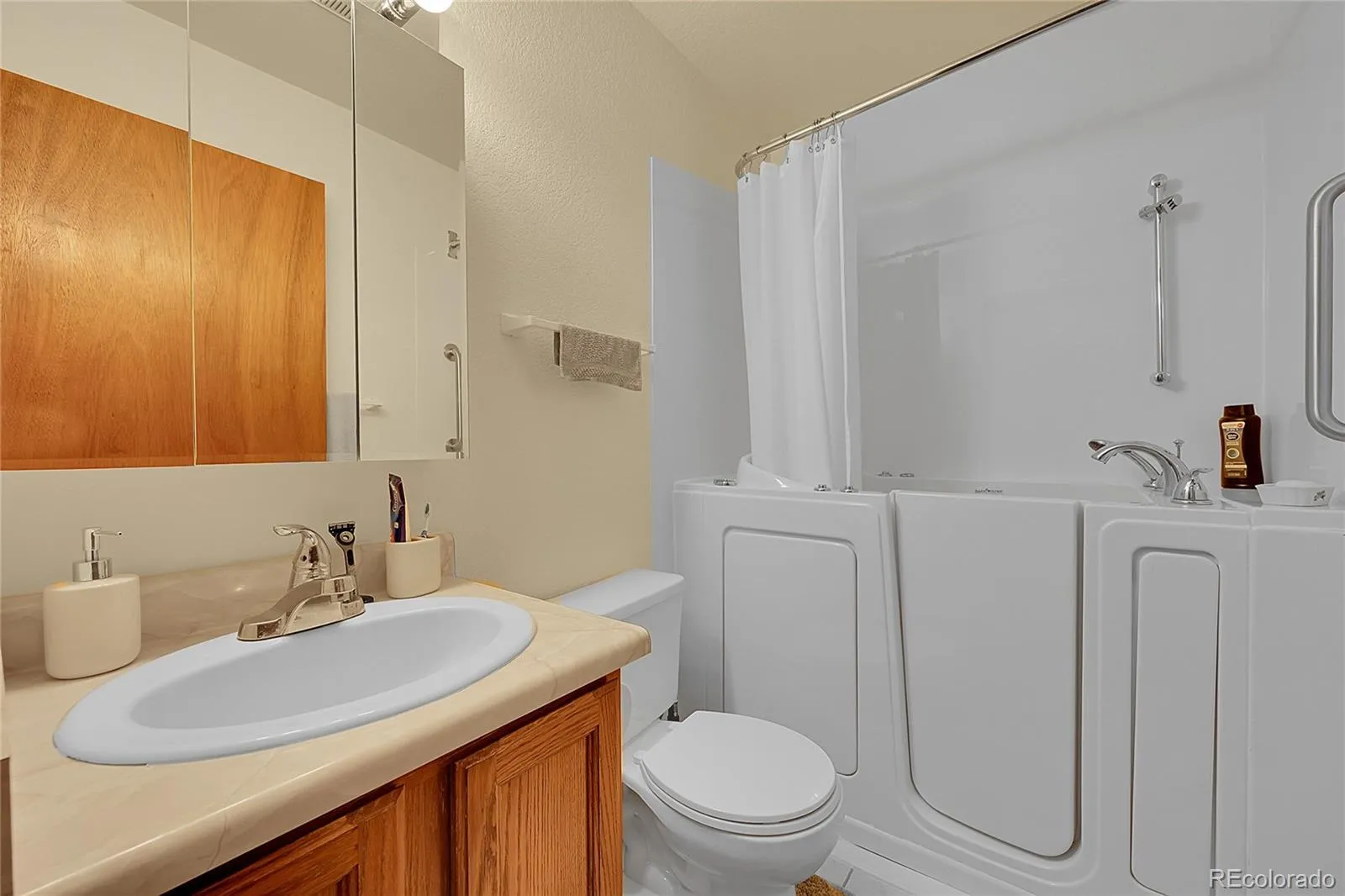 Two comfortable bedrooms and a full bath on the main level and also a half bath for guests.