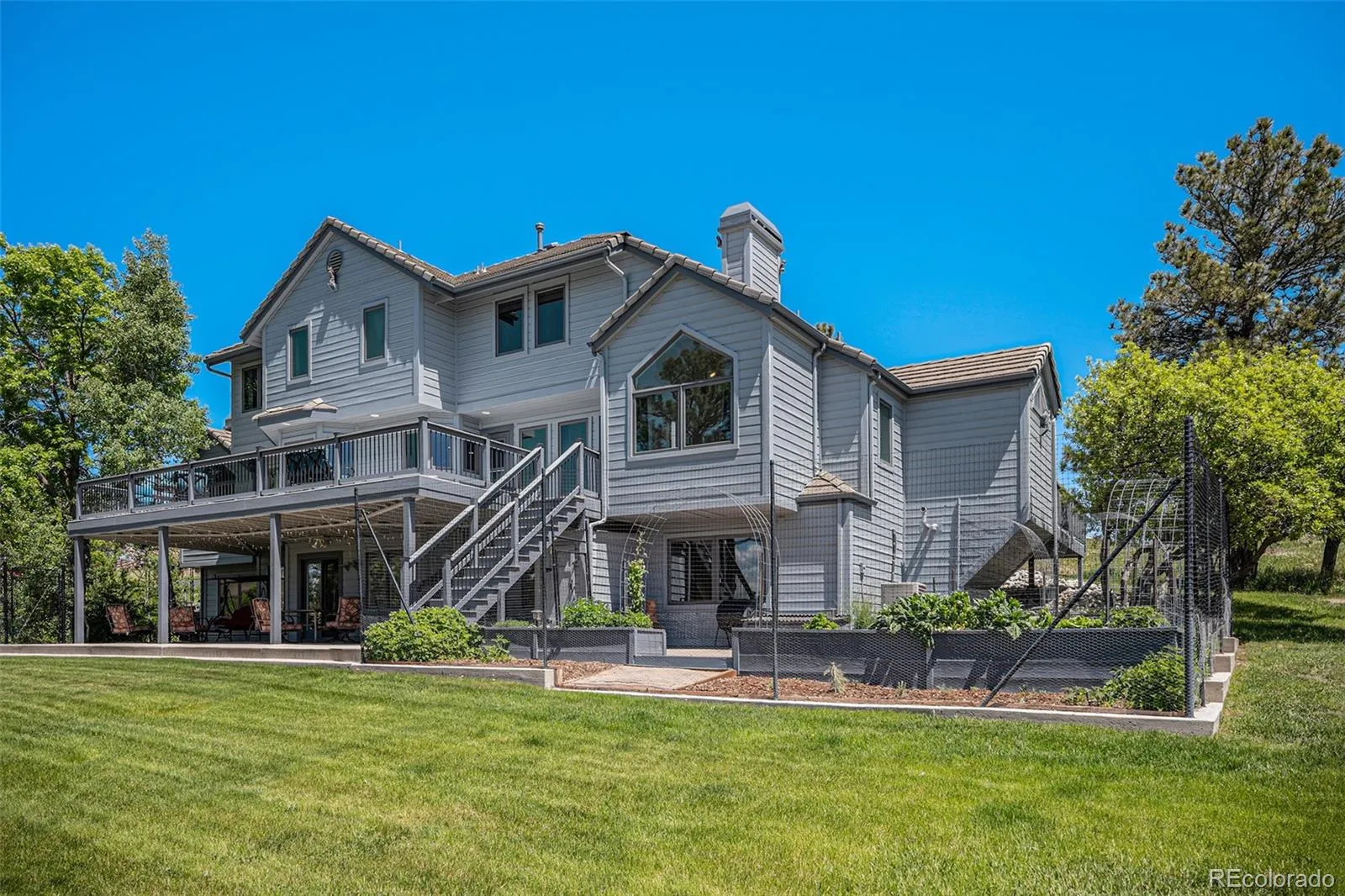 Over $350K in upgrades to this absolutely stunning 2.3 acre, meticulously maintained 5.592 sq.ft., custom 2 story home with spectacular mountain views in the highly acclaimed Misty Pines subdivision of Parker, Colorado. Here you will find a private collection of 62 custom homes in peaceful seclusion with large lots, scenic views, and surrounded by The Pinery community that is known for it’s 27 hole professional golf course and perfectly nestled in the towering pine tress and natural landscape of this spectacular area. Wind your way up the extended paved private drive and arrive at the elegant courtyard style entry and you will begin to appreciate all that this property has to offer. Once inside, you will love the exposed wood beams, extended refinished hardwood floors, dramatic architectural features, and large windows that flood the home with natural light and perfectly frame the outdoor splendor and majestic mountain views. As you explore the spacious main floor you will find the beautifully remodeled kitchen with beautiful Quartz counters, custom tile backsplash, and appliances. Continue and find the picture perfect formal living and dining rooms with vaulted ceiling, gas fireplace and a dramatic second story overlook. The family room offers a brick faced gas fireplace and can be easily converted to a second dining space. Don’t miss the private study and laundry room. Indulge in peaceful relaxation in the luxurious main floor primary suite with a completely remodeled, sparkling white spa-like en suite, gas fireplace, huge closets, and private deck access. The impressive second story is equally amazing with 3 large bedrooms, including a full guest suite, and a second full bathroom. The professionally finished walk-out basement is an entertainer’s dream with a large rec room, wet bar, workout room, full bathroom, and storage room. Too much to list…Brand new roof, huge 3.5 car garage w/ epoxy coated floors and storage, reconstructed decks, protected garden & more!