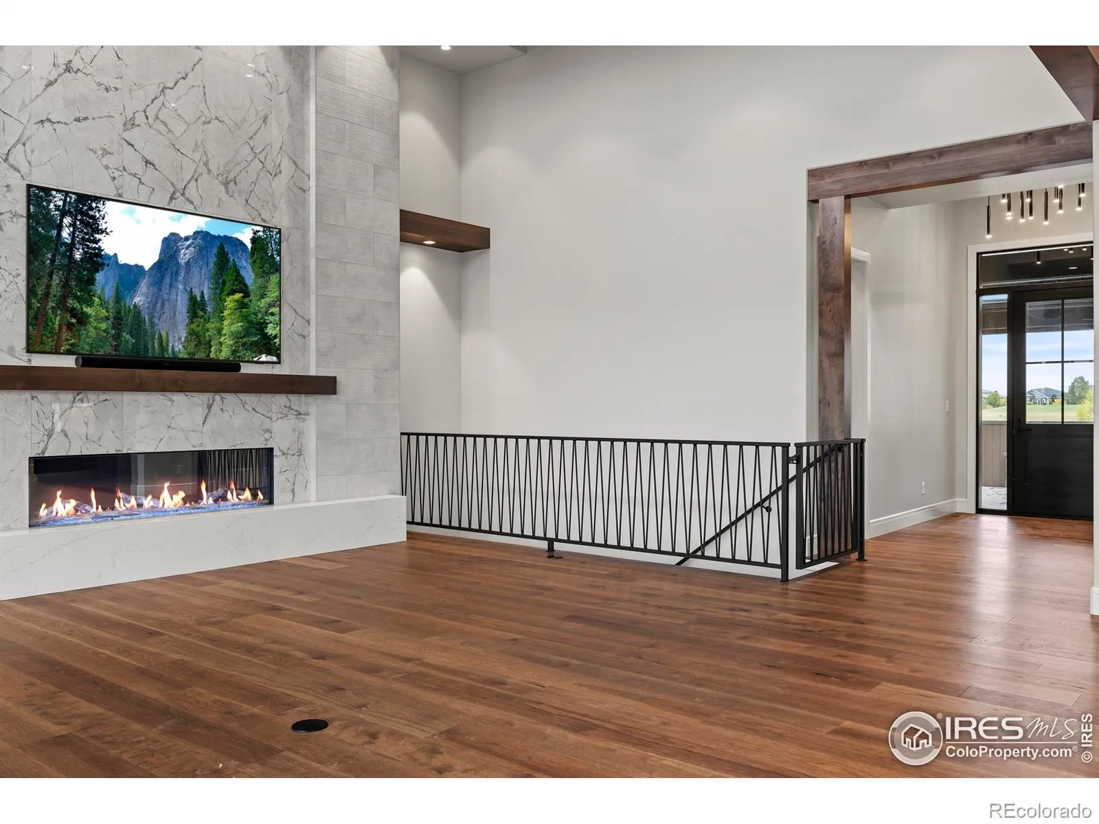 Private saltwater pool! Nestled in sought-after Harmony Golf Club, this exquisite 4 bed/6 bath home crafted by Luxury Homes of N.CO embodies elegance at every turn with meticulous attention to detail. Designer-grade finishes that elevate the aesthetic throughout, including custom cabinetry and striking accent walls highlighted by custom accent lighting for the perfect ambience. Open layout and magnificent great room with soaring 14-ft beamed ceilings and striking 24-ft fireplace. Entertainment is seamless with TV and beautifully appointed gourmet kitchen plus a scullery, complete with spacious island, quartz countertops, JennAir induction top with dual ovens below, paneled fridge, beverage fridge, ice maker; all enveloped in exquisite Milarc cabinetry. Retreat to a luxurious primary suite where a spa like escape allows you to indulge in a glass-enclosed steam shower. Walk in closet with custom cabinetry, accent lighting and natural light. Elegantly finished basement includes wet bar with beverage fridge, dishwasher, TV; while the main area offers ample room for seating and game tables and a stunning TV/fireplace. Versatile flex space with sliding glass doors that open to a private patio bathed in sunlight – ideal for gym or office. Step outside to discover a beautifully landscaped backyard oasis featuring salt water pool/hot tub, gas firepit, built-in BBQ; perfect for relaxing and entertaining under the expansive covered patio. Additional spaces include oversized 3-car garage with cabinets, convenient mudroom, pool bath and laundry room equipped with W/D. Beyond the luxurious interiors, this dream home is a true haven of extraordinary comfort and functionality.