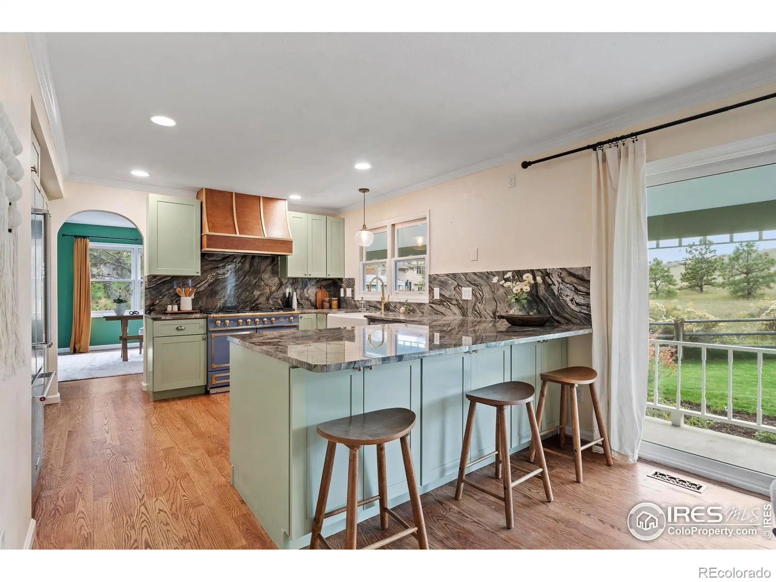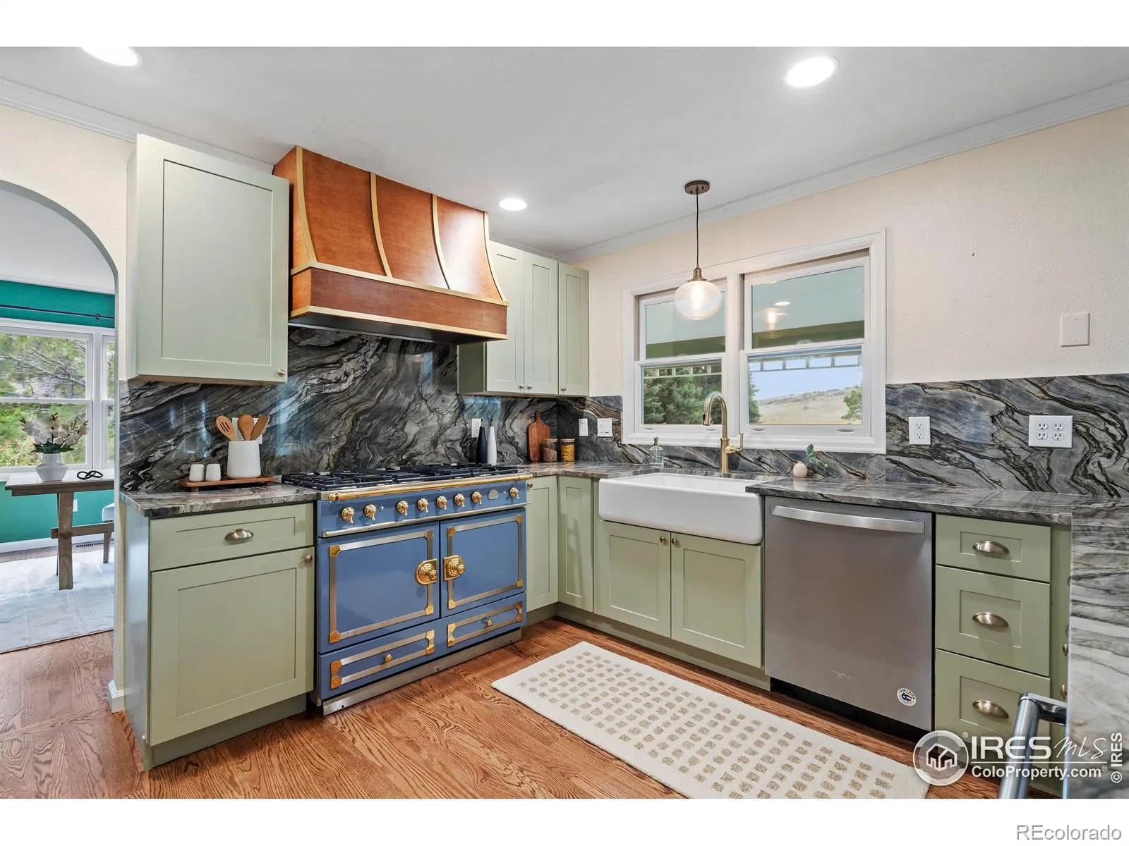 A Neo-Victorian dream home built for a truly custom lifestyle! Situated in Burns Ranch at Quail Hollow, this 5-bed (1 non-conforming), 4-bath property delivers on every front. Inside, beautiful Victorian designs flow seamlessly across the main level, which includes a dedicated office and large dining space. The custom kitchen is a chef’s delight, centered around a spectacular La Cornue gas range from France and featuring ample custom storage and stunning quartz counters/backsplash. The Luxury Primary Suite is a lavish retreat with a custom floor-to-ceiling tiled bath, large soaker tub, and his-and-her closets. The fun continues in the finished basement, home to a wet bar, painted concrete floors, and a 20-seat, cinematic movie theater. Step outside to the covered back porch (running the length of the house) to enjoy vibrant, established gardens filled with roses, peonies, and lavender. This home also features a deluxe chicken coop and an enclosed side porch/catio. Plus, enjoy immediate access to Pineridge Natural Area and Dixon Reservoir right out your back door, where you’ll frequently spot elk, eagles, and deer. Welcome home.