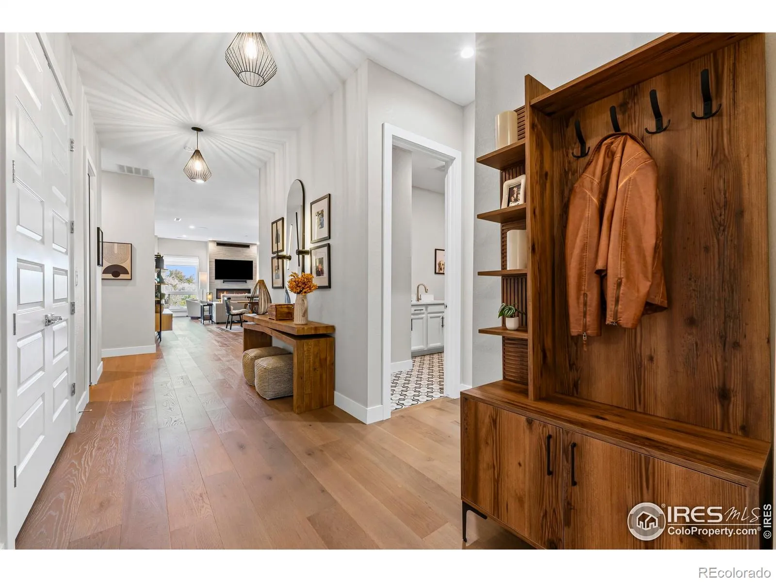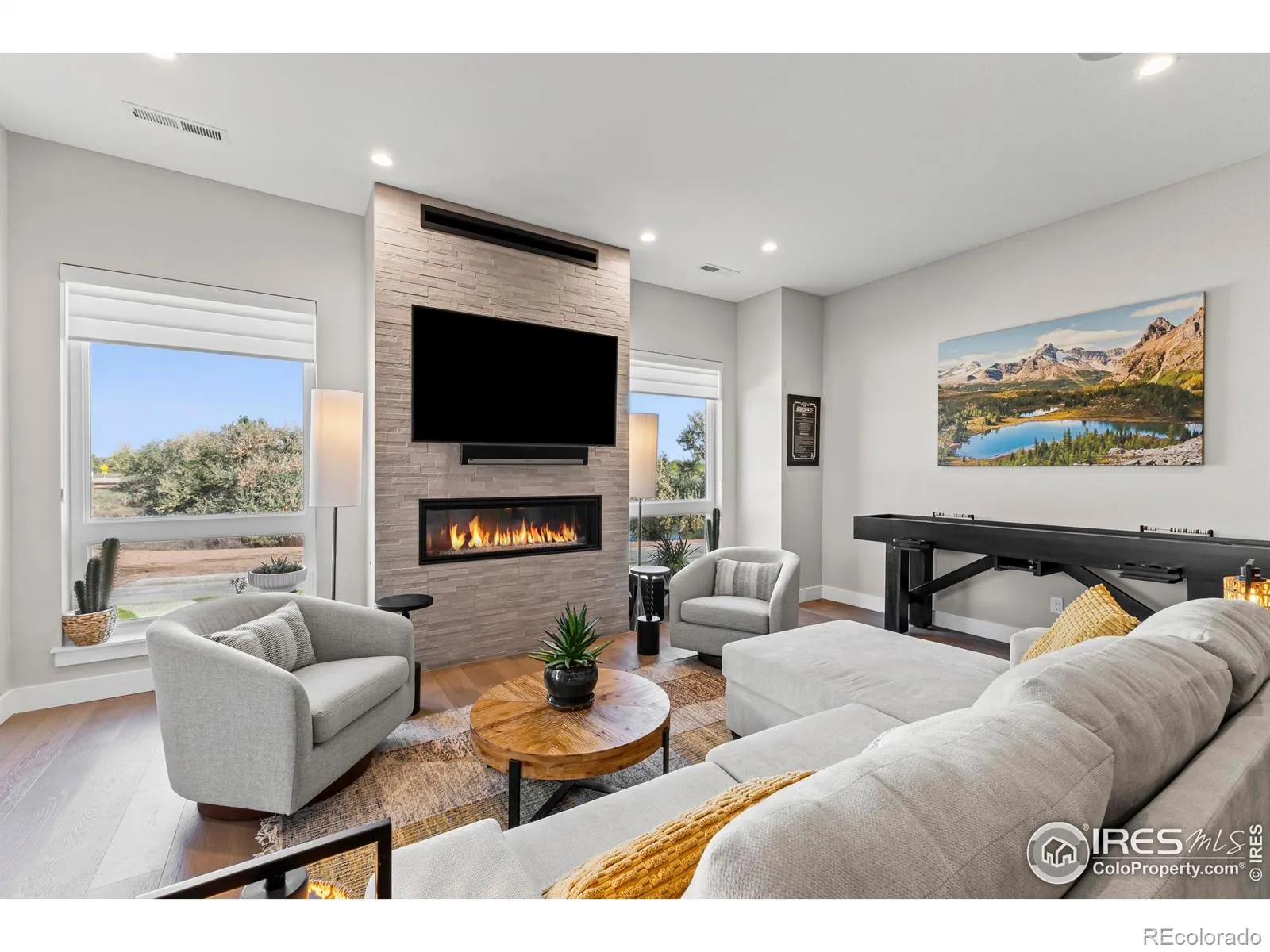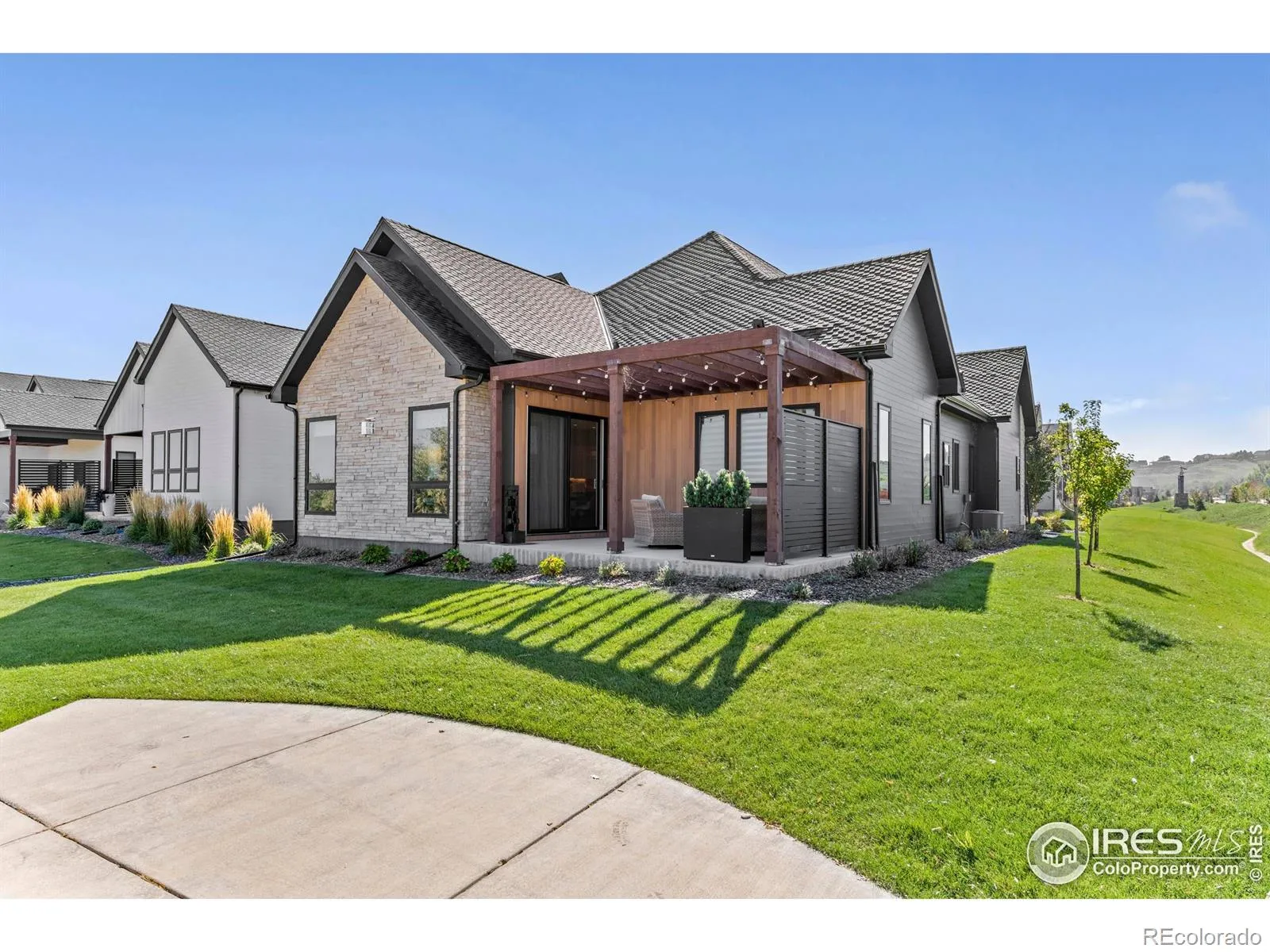 Waterfront ranch patio home in Pelican Shores at Water Valley! This south-facing, 3 bedroom, 3 bath single-story patio home offers 2,154 square feet of beautifully designed living space with an open floor plan, 10-foot ceilings, and engineered hardwood flooring throughout the main living areas. Oversized windows in the great room provide stunning views of the cove at Lake Water Valley, creating the perfect setting for kayaking, paddleboarding, or simply enjoying the peaceful surroundings. The gourmet kitchen features white cabinetry, light quartz countertops, stainless steel appliances, a center prep island, and matte black fixtures. The kitchen flows seamlessly into the dining area and great room, complete with a modern gas fireplace, Sonos speakers and a mounted ArtTV-ideal for entertaining or relaxing. The spacious primary suite includes a luxurious bathroom with dual sinks, an oversized steam shower with dual shower heads, and a walk-in closet. Two additional bedrooms are located near the front of the home, a full bath AND a powder bath that was added as an upgrade. The laundry room includes a washer, dryer, and laundry sink. Additional features include LVP flooring in the entry, kitchen, living and dining room, carpet in all bedrooms, a tankless water heater, and an insulated steel garage door. Pelican Shores is part of the prestigious Pelican Lakes Resort & Golf community, offering a 27-hole semi-private golf course, tennis courts, a state-of-the-art gym, private clubhouse, and trails along the Poudre River. This golf cart-friendly neighborhood provides maintenance-free landscaping and resort-style amenities. Optional membership to WaterDance expands access to additional amenities in nearby Raindance, including Hoedown Hill and more! Perfect for full-time living or a lock-and-leave lifestyle, this home combines luxury, comfort, and convenience in one of Northern Colorado’s most desirable communities.