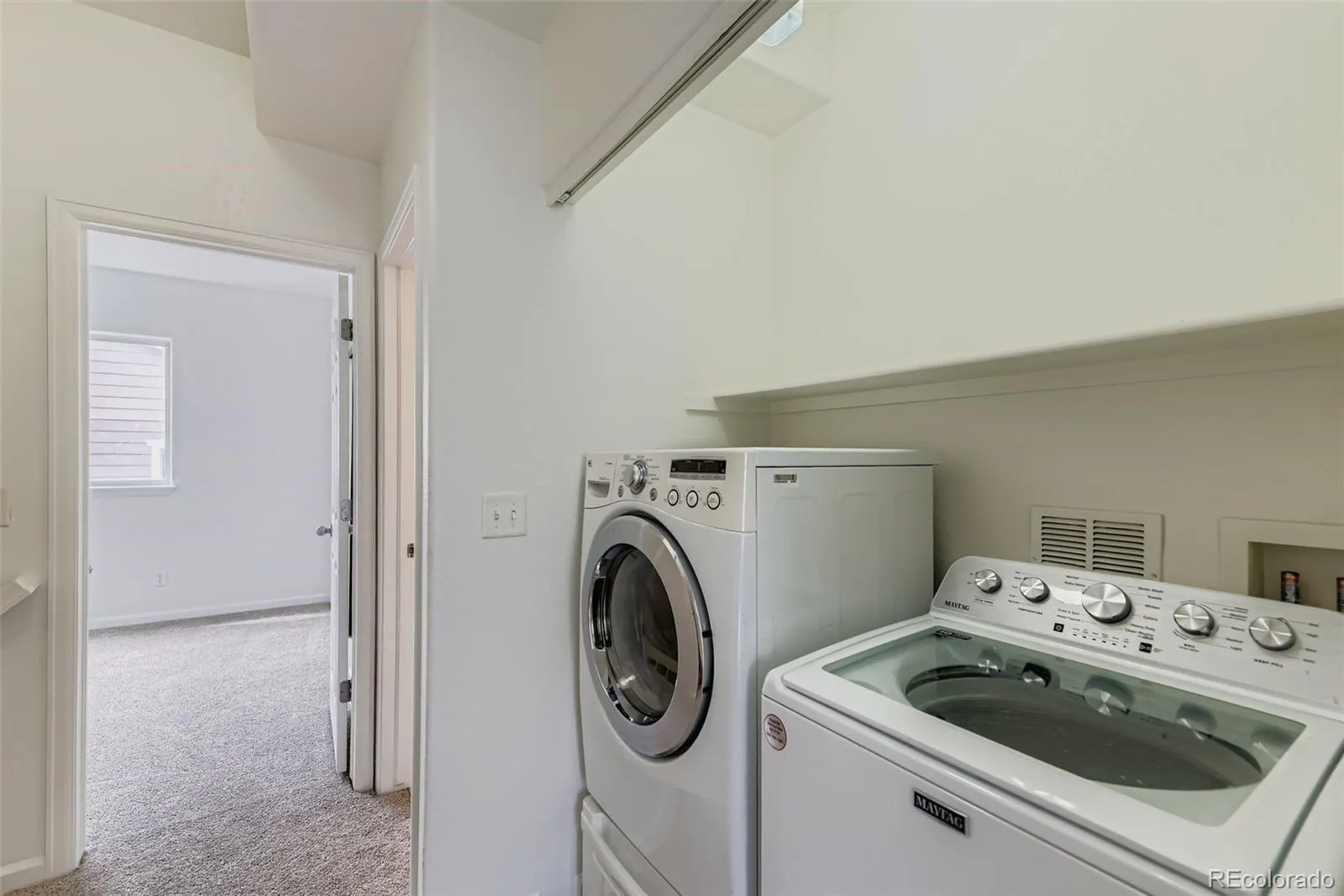 Townhome-style condo in POOL COMMUNITY with quick highway access with NEW CARPET AND INTERIOR PAINT. Home features an open main level living room with cozy gas fireplace, flex space, kitchen and dining area with an abundance of light. Upstairs, the primary suite provides a peaceful retreat with a walk-in closet, 5-piece master bath, and a private balcony—ideal for unwinding on tranquil nights. A second bedroom and full bath complete the second level, along with a convenient laundry area equipped with a washer and dryer that stay with the home. 3rd Floor Loft is great for family room space, movie room or office. Lower level features a mudroom and access to 2-car attached garage. Make memories in the summer at the community pool and playground one block away. HOA includes Water/Sewer, Trash, Exterior Maintenance, Snow Removal, Lawn Care & Pool. Twenty minutes to DIA & downtown Denver. Listing agent is providing *1 Year HOME WARRANTY* for Buyer.