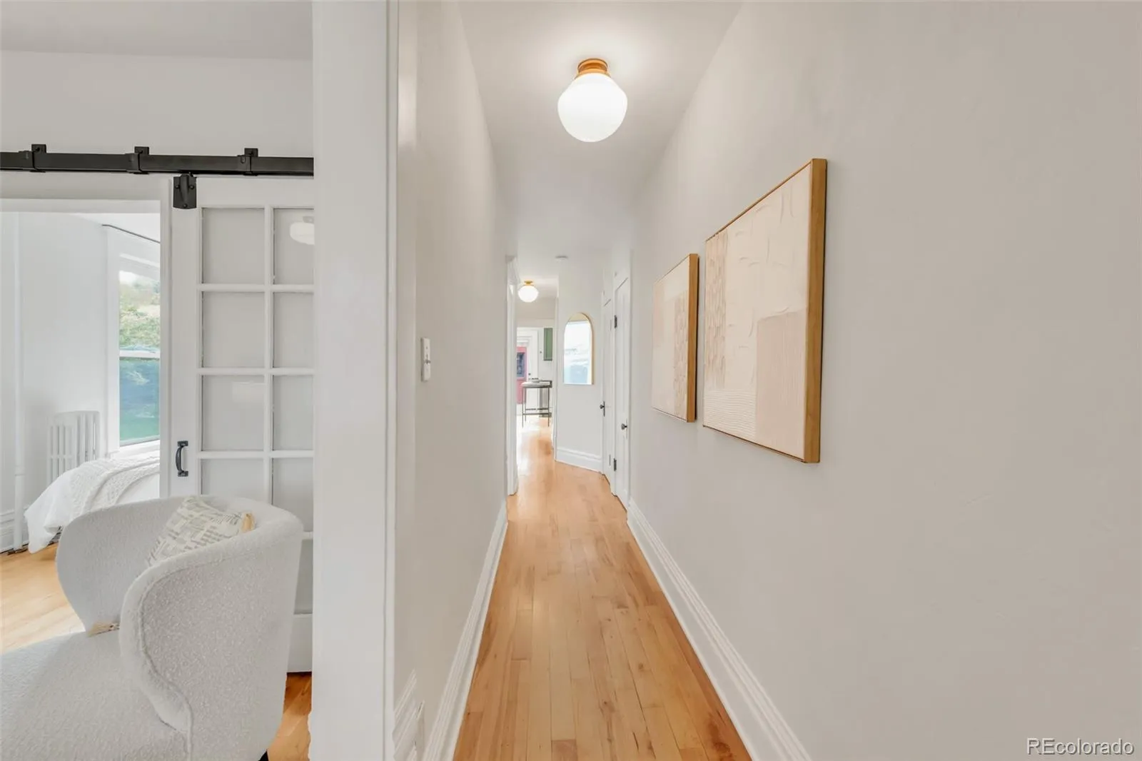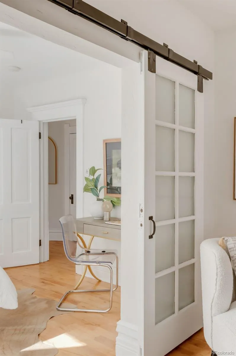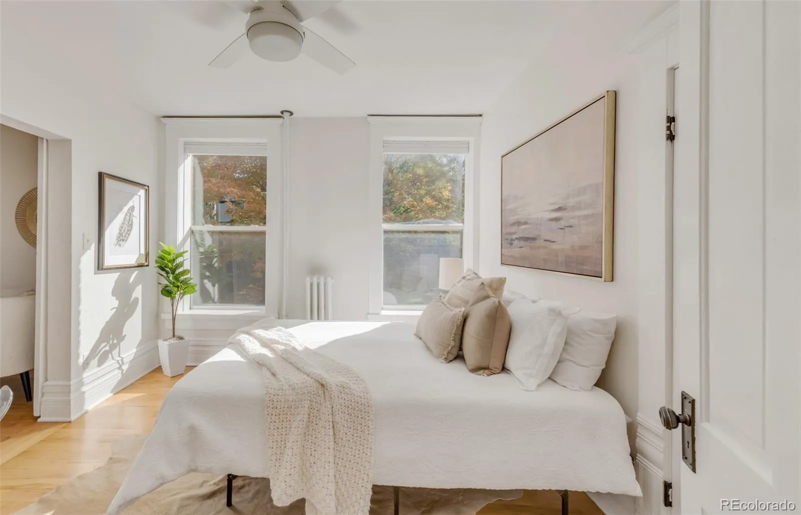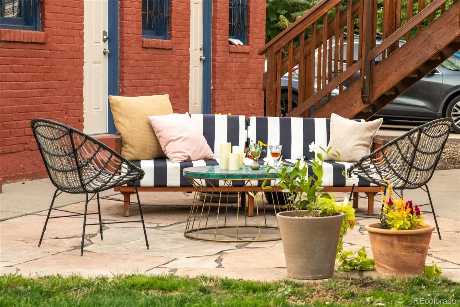 Beaming with classic charm and modern sophistication, this Potter Highlands residence offers turn-key living in a historic Denver location. Thoughtfully updated throughout, the interior blends timeless character with contemporary comfort — original floors and trim details pair beautifully with soothing modern paint and elegant finishes. The updated kitchen shines with stainless steel appliances and a sunny dining nook, while the living room’s beautifully preserved, original fireplace (non-functioning) adds a touch of historic allure. Modern French barn doors reveal one versatile, sunlit bedroom adjacent to the living room – perfect for guests or a home office, complemented by a second private, primary bedroom. Enjoy main-floor living with a stylishly updated bath, built-out closets, in-unit laundry and a private patio ideal for quiet mornings or evening relaxation. A one-car detached garage and a basement storage locker provide additional storage. Nestled on the bright south side of a c. 1908 boutique four-unit building, this residence offers seamless access to the best of Potter Highlands and is walkable to local favorites Locavore, Wooden Spoon, Duo, Patzcuaros, Tony P’s and many more. The Potter Highlands neighborhood is beloved for its healthy, walkable, and dog friendly lifestyle, and with miles of bike trails leading into and around the city of Denver, accessibility is right at your front door.
