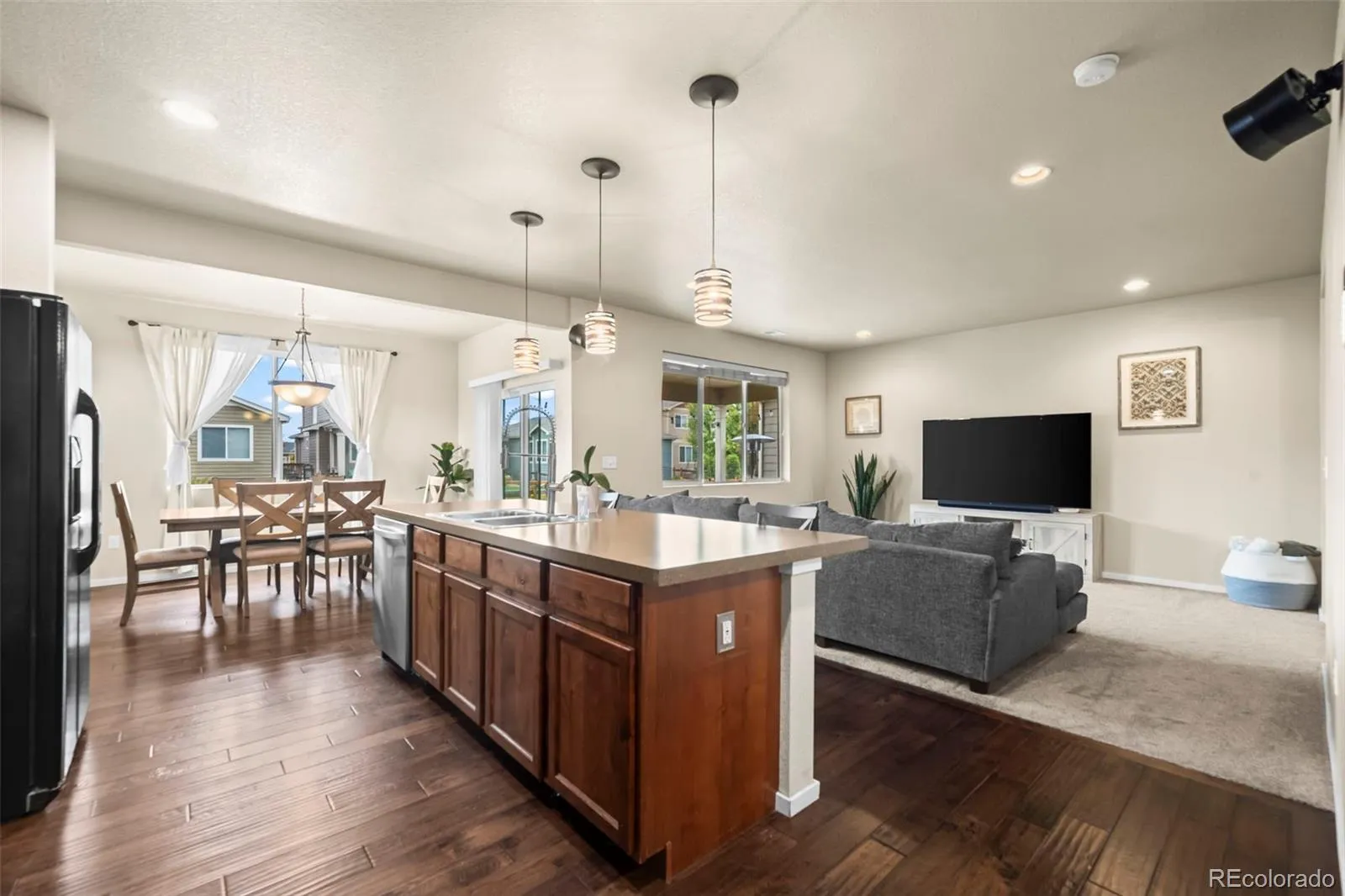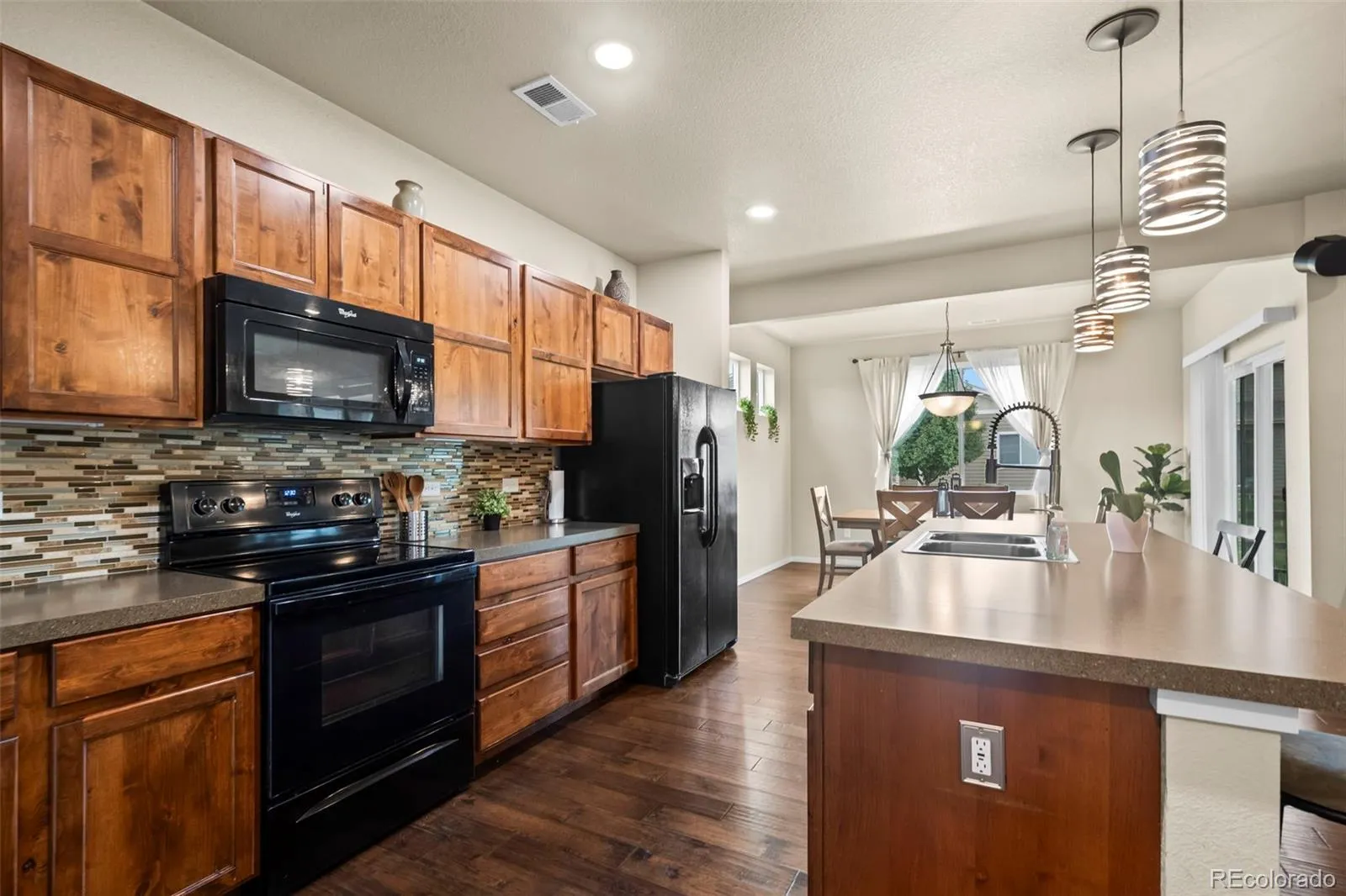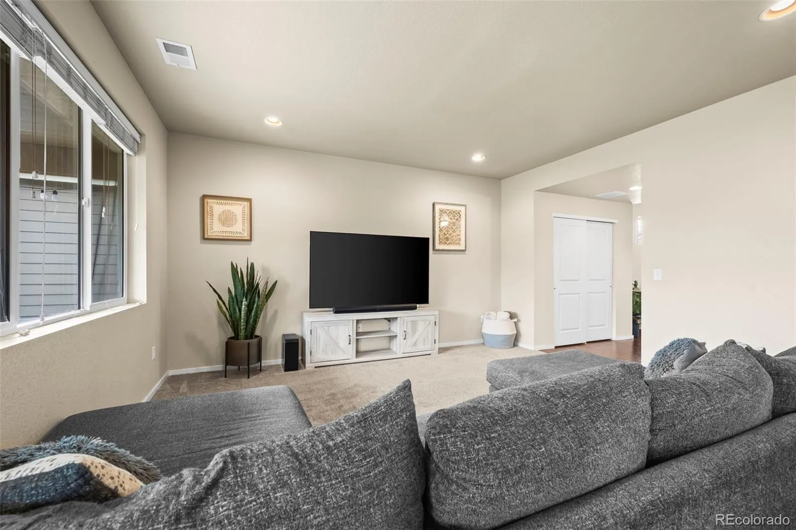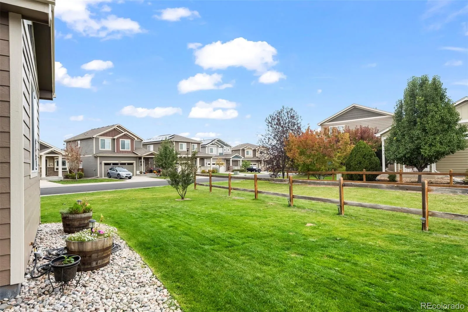 Spacious 4-bedroom plus office home located on a corner lot and backs a greenbelt. Inside, enjoy an open main level with an office, updated half bath, spacious family room, kitchen, and dining area. The eat-in kitchen offers a large center island, pendant lighting, black appliances, a pantry, dining area and convenient access to the backyard. Upstairs, you’ll find a spacious primary suite featuring a bath with dual sinks, a walk-in shower, and a walk-in closet. Three additional bedrooms and a full bathroom provide plenty of space to suit your needs. The laundry room is conveniently located on the upper level, alongside a large linen closet for additional storage. The unfinished basement offers potential for future customization or extra storage. The outside provides a great entertainment space, featuring a covered patio off the kitchen and a grassy area overlooking a greenbelt. The neighborhood is situated amongst walking paths & trails, open space, lakes, and schools. Easy access to downtown Loveland, HWY 287, restaurants, and shopping.